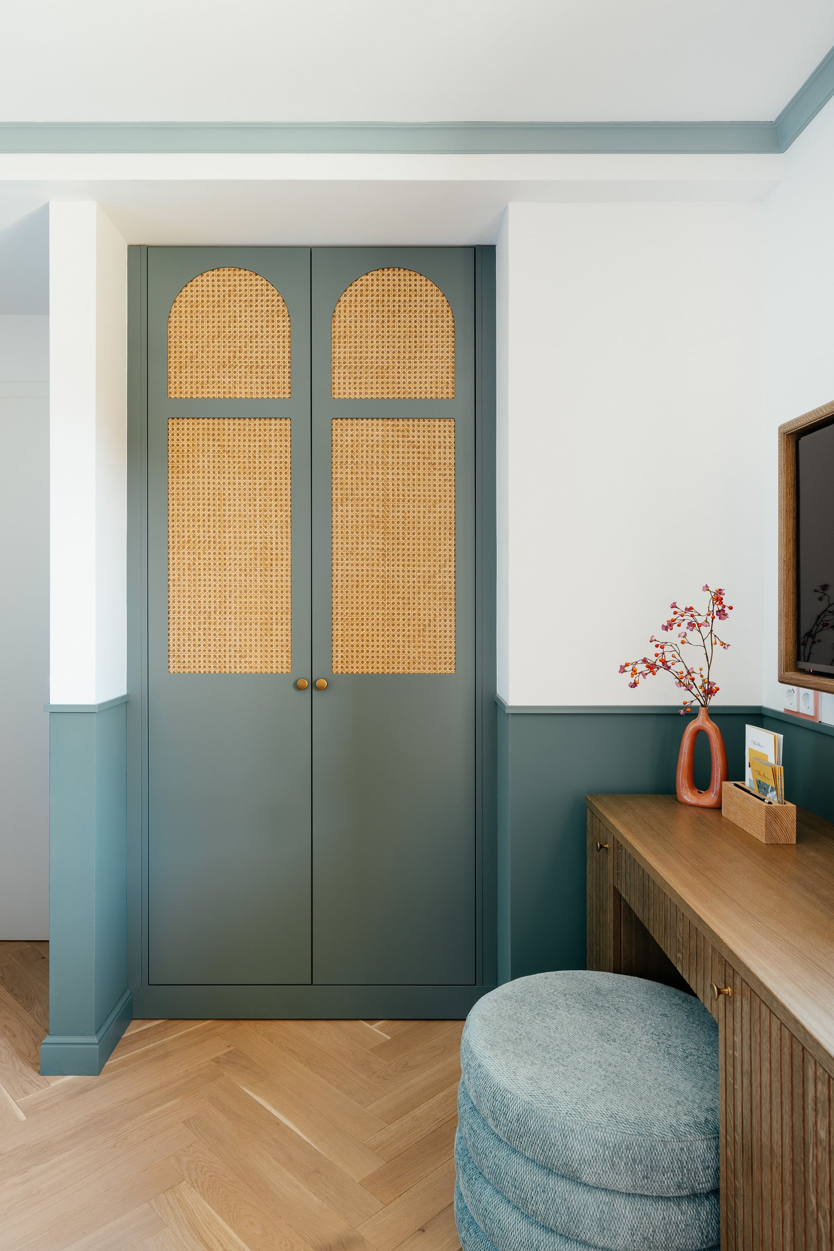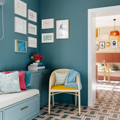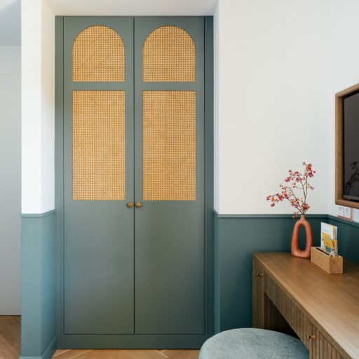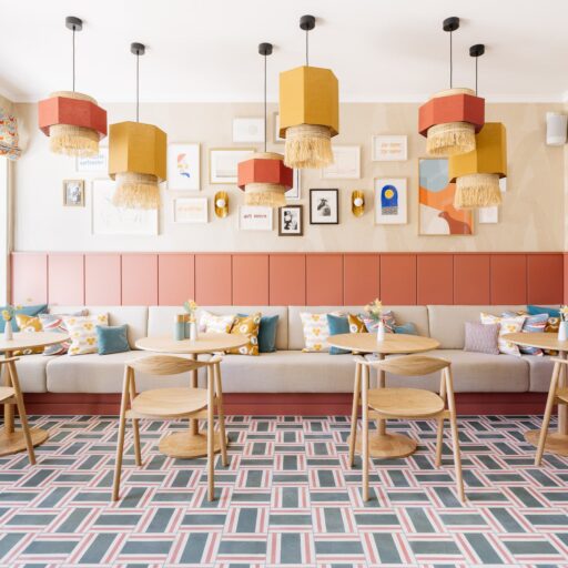 • The curved, soft and flowing patterns and the pastel tones of the interior