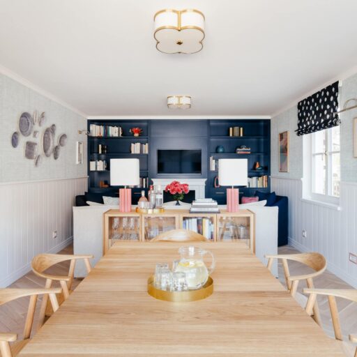 Langer Esstisch im Gastraum in der Villa Alma