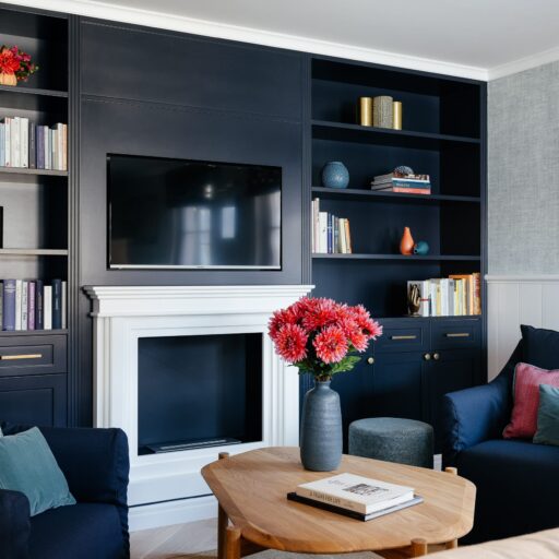 Lounge mit Kamin und Bibliothek