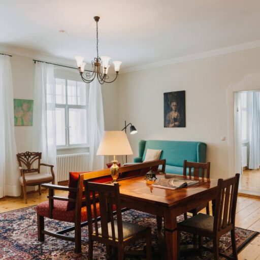 - There are art studios, seminar rooms, and party space - the beautifully remodeled coachman's house (with excellent acoustics) can accommodate up to 25 people, in the main house there is also a seminar room (50 sqm), a studio (40 sqm) and a salon (30 sqm). State-of-the-art stage and seminar technology can also be booked.