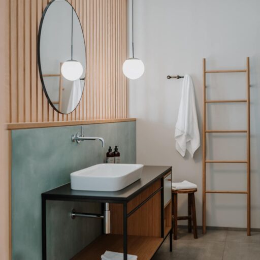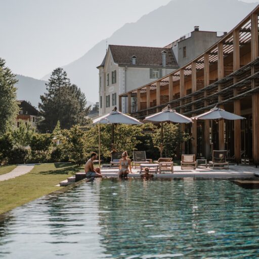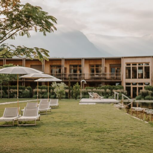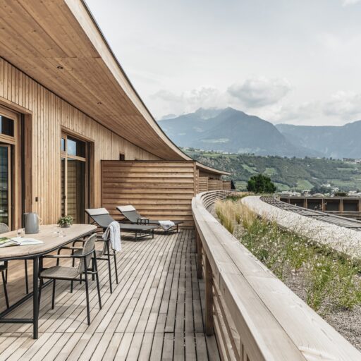 Design hotel or vacation apartment? Table-laying in a restaurant or stirring the pots yourself? Well, why not a mixture of everything? That’s what Heidi and her daughters Judith and Paula thought, and so created the completely relaxed and yet elegant and enchanting VillaVerde near Merano. A place for freedom-loving aesthetes—those who are more than happy to enjoy the amenities of a 4-star hotel (fortunately, without all the glitz and glamour), but who sometimes just feel like having a homemade cheese sandwich on the balcony. VillaVerde has 35 apartments and rooms, spread over two buildings: A 100-year-old villa which was getting on a bit, but has now regained its old grandeur thanks to a lot of passionate dedication inside and out. Actually, it’s much more beautiful than it used to be with its pale green shutters and conservatory, where a café is now housed. Excellent coffee and cakes are served here, and the view of the mountains is second to none. The historic villa has also been joined by a new neighbor—a modern, semicircular wooden building with outdoor pool, natural bathing pond and spa area. In the apartments, nostalgia is beautifully married with modernity: Handmade furniture and design classics combine with specially selected vintage pieces from antique stores and flea markets, giving each room that certain personal and charming touch. VillaVerde conveys a real feeling of home and is a wonderful new addition to the ranks of South Tyrolean design hotels.