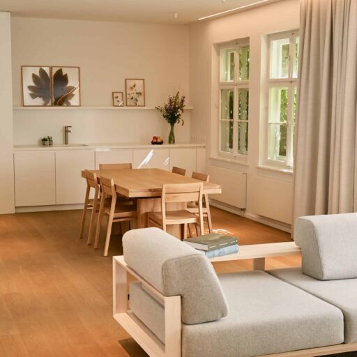 - The modern apartments in the adjoining building are between 80 and 246 square meters in size, all have large balconies overlooking the Wilmina garden, a well-equipped kitchen and high-quality care products from Frama