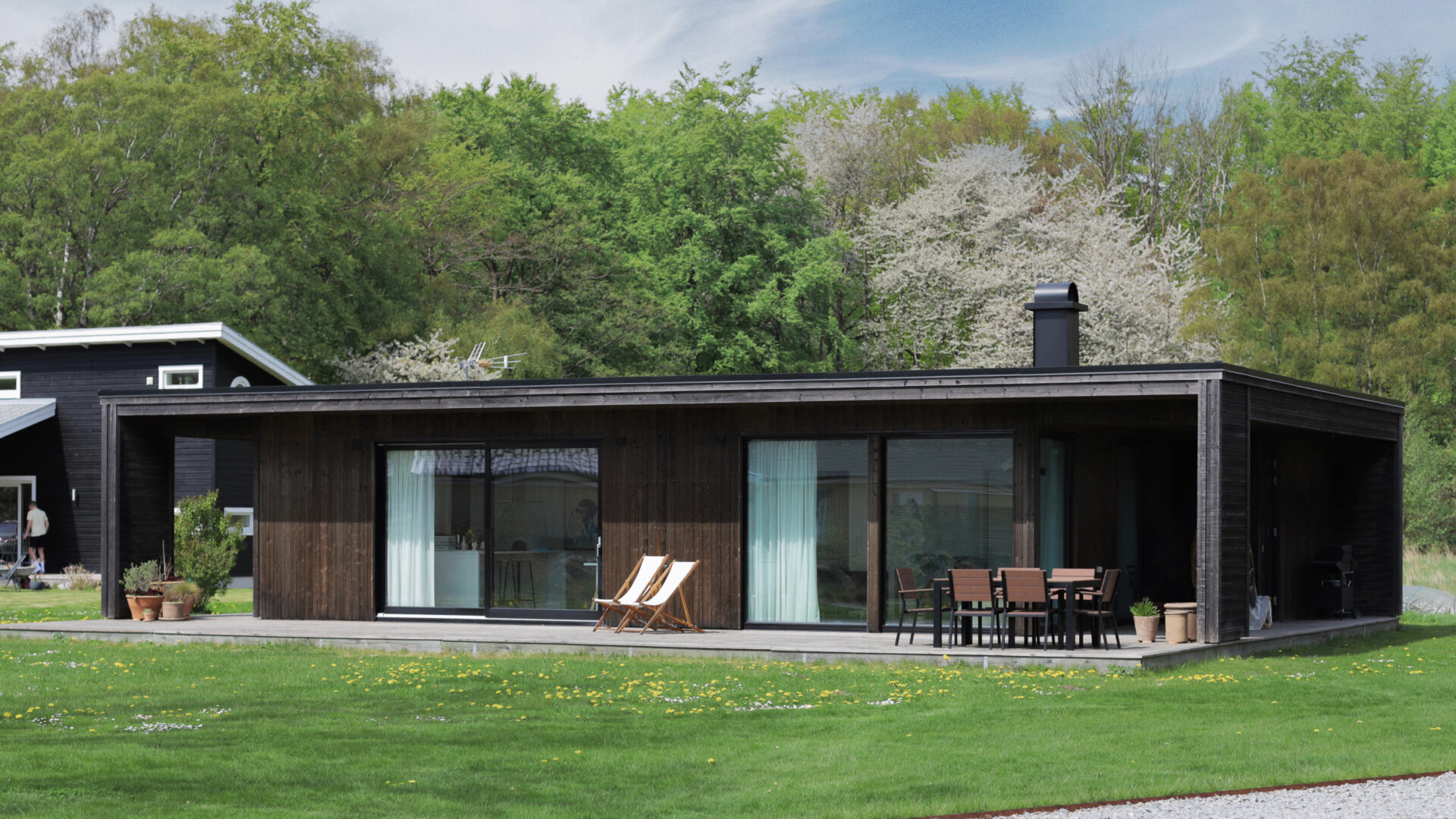 „Ein kleines Stück Schweden“ – das klingt verheißungsvoll und ist der Name eines Architektenhauses an der südschwedischen Küste Blekinge in der Region Schonen. 2013 wurde das Haus von einer englisch-schwedischen Familie gebaut, die seit einigen Jahren ihr Domizil im nicht allzu fernen Kopenhagen hat. Seitdem ist es nicht nur ihr „Happy Place“ an Wochenenden und in den Ferien – denn zum Glück teilen sie ihr kleines Stück Schweden auch mit anderen Fans des skandinavischen Lifestyle. Blumenwiesen, Bäume und Meer umgeben das moderne Holzhaus, das eine moderne Version des klassisch dänischen Sommerhauses darstellt – klar und reduziert in der Form und mit enger Verbindung zur Natur. Große Fenster holen das Licht und die wechselnden Stimmungen des Tages ins Innere, die Terrasse öffnet den Blick ins Grüne und bis hinunter zum Wasser. Die Einrichtung ist typisch skandinavisch: Naturmaterialien, gedeckte Farben und bewusst minimalistisch. Schwarz-, Weiß- und Grautöne dominieren, ergänzt durch Holz und feine textile Akzente. Der Tag folgt hier keinem Plan: morgens Kaffee auf der Terrasse, später ein Sprung ins Meer, Beeren sammeln am Wegesrand, Blumen pflücken, wieder zurückkommen und aufs Wasser schauen. And repeat. Wenn sich dann die Ferientage ihrem Ende zuneigen, möchte man am liebsten jeden Sonnenstrahl und jedes Meeresglitzern einfangen, um sie wie kleine Lichtreserven für trübe Wintertage mit nach Hause zu nehmen.