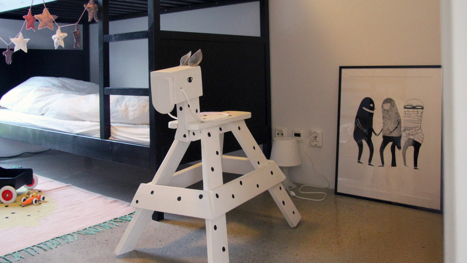 - die zurückhaltende skandinavische Einrichtung in Schwarz-, Weiß- und Grautönen
