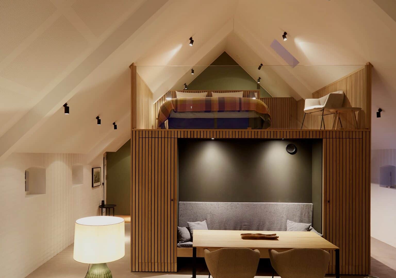 • das Herzstück der ehemaligen Scheune des Haylofts ist die „Magic box“: sie umfasst die Küche, Essplatz und Ankleidezimmer, auf der Box befindet sich das Galerie-Bett
