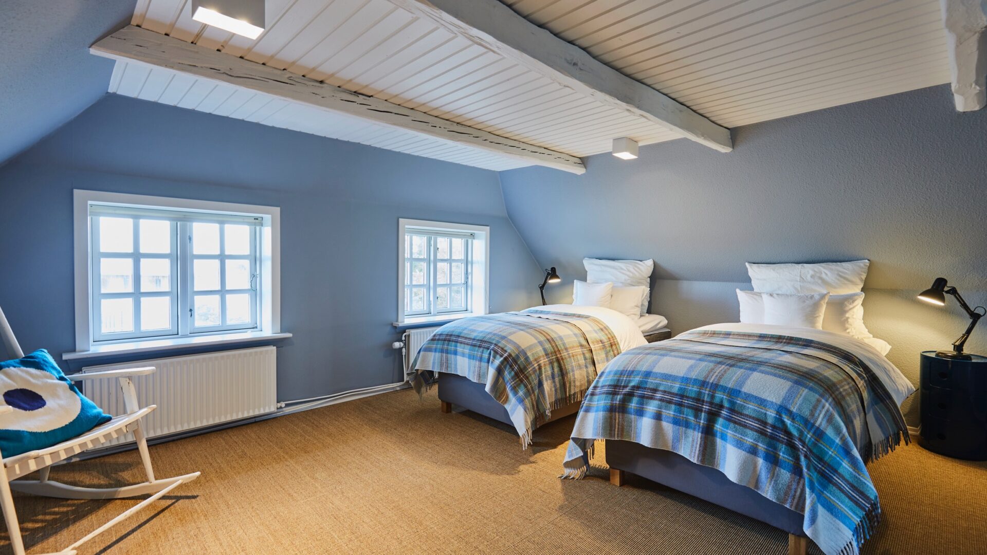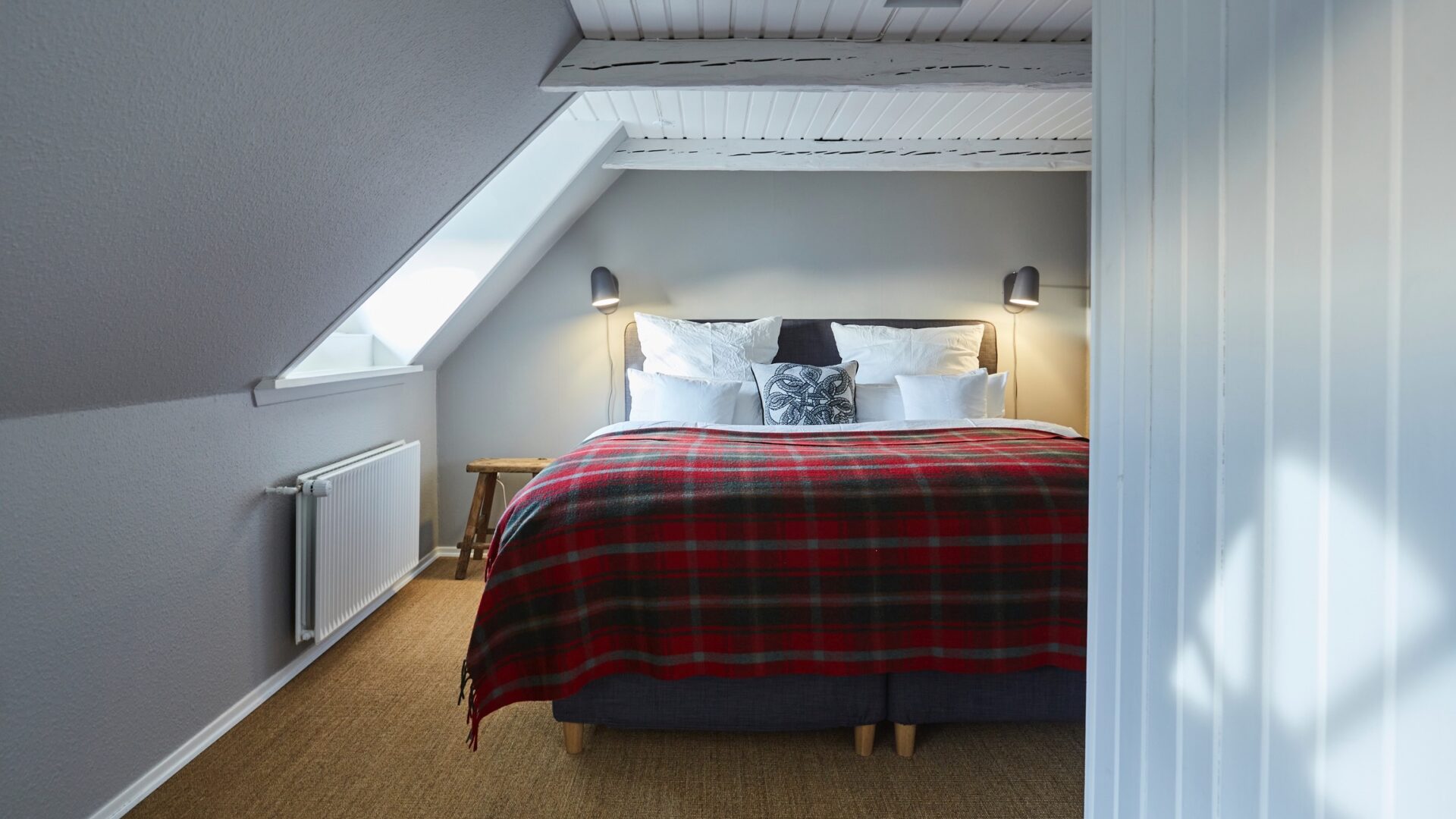 • die Gastgeber Katrein und Gregor haben alles mit Bedacht gewählt und dabei viel Wert auf nachhaltige und ökologische Marken gelegt: Die Wandfarben auf Wasserbasis stammen von Little Greene, die Bio-Bettwäsche von Hess-Natur und die Plaids aus Recycling-Wolle kommen von „The Tartan Company“