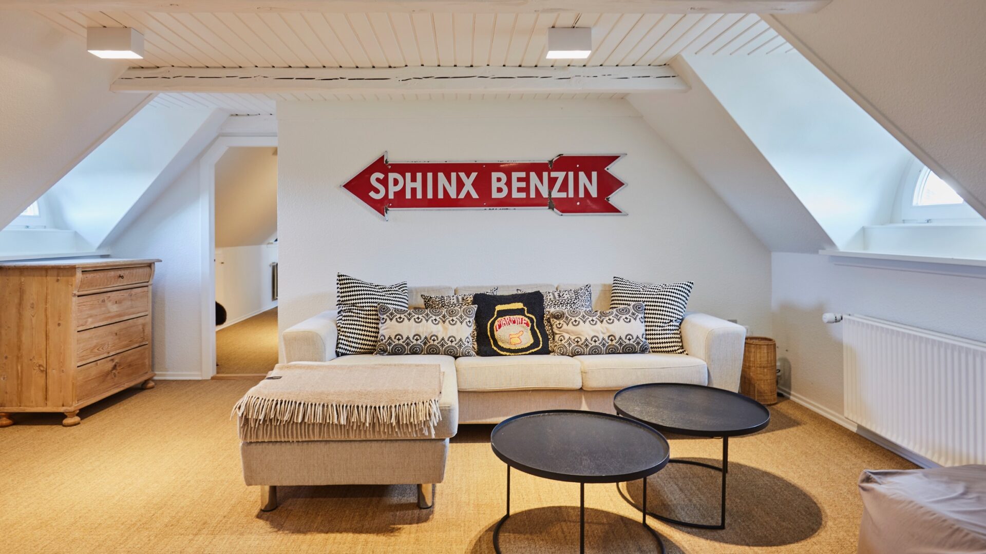 • hier genießt man Wohnambiente sondergleichen: das helle, lichtdurchflutete Main House ist mit neuen Eichenholz-Dielenboden und dänischen Designermöbeln von Bolia ausgestattet, an den Wänden hängen ausgewählte Werke von Peter Büchler oder Ai Weiwei – fast wie in einem Museum für zeitgenössische Kunst und modernes Design