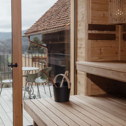 - wer jemals im Leben eine private Panoramasauna hatte, will nie wieder eine andere besuchen. Rosa, Franzl und Sepp haben jeder eine eigene, sehr luxuriöse Sauna mit Panoramaverglasung – einfach nur WOW!