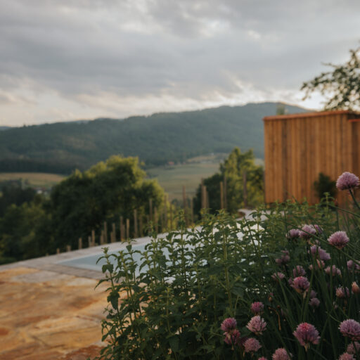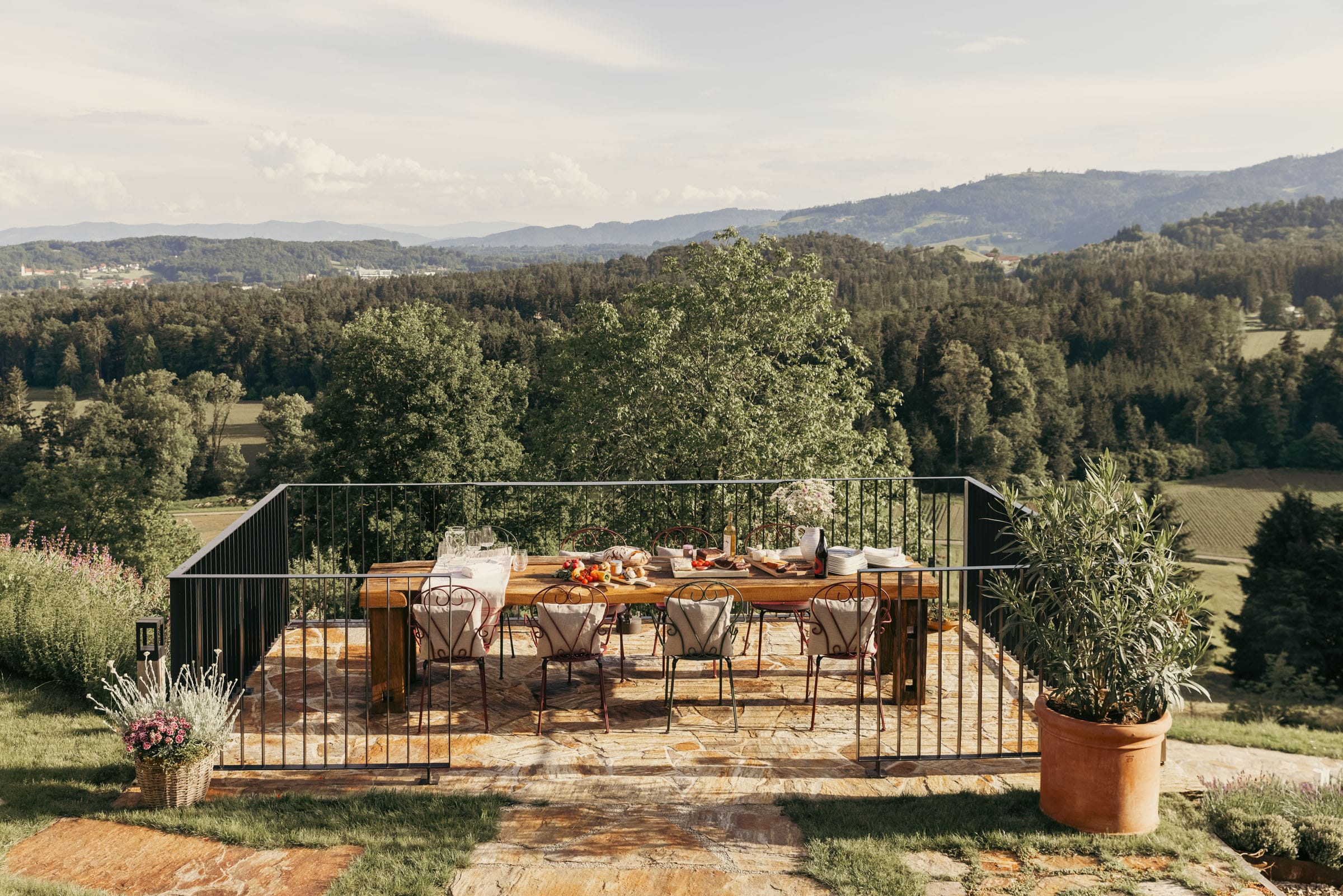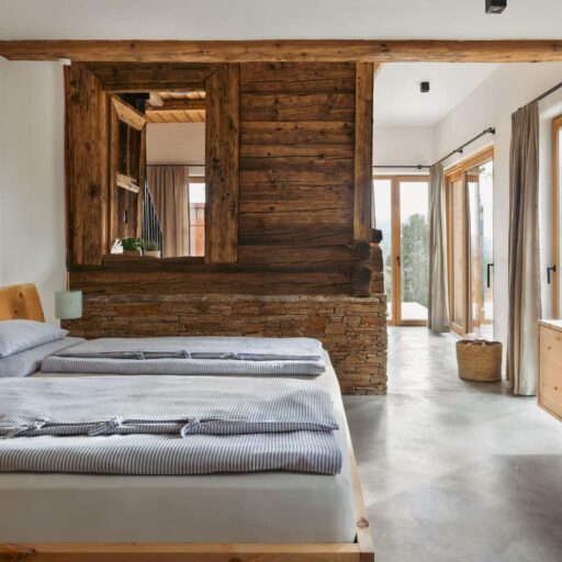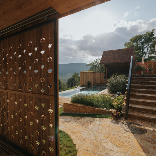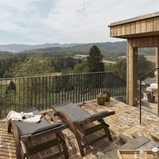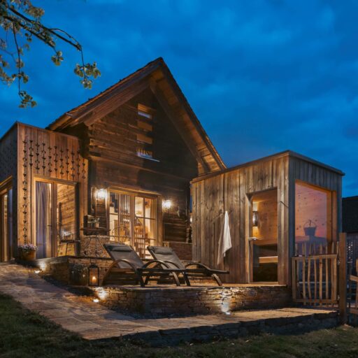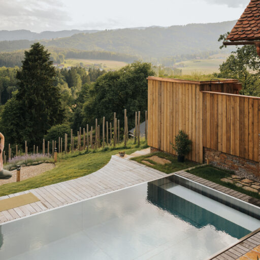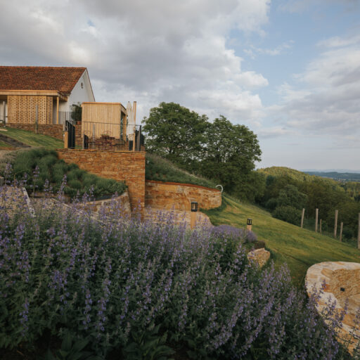Auf halbem Weg zwischen Graz und Slowenien schmiegen sich Sepp, Franzl und Rosa an einen grünen Hang. Die drei sind weder Kinder noch Hunde oder Schafe – es sind drei kleine, luxuriöse und gemütliche Ferienhäuser mit dem „Nachnamen“ Wildbachberg, vorrangig für Paare, die sich erholen wollen und dabei die Ruhe in der Natur schätzen. „Fernab des Schnellen langsam sein“ lautet das Credo der Gastgeber Johanna und Günter Krainer, die sich in das alte Anwesen, das die Vorbesitzerin 100 Jahre lang glücklich bewohnt hatte, Hals über Kopf verliebten und es mit viel Hingabe und Aufwand saniert haben. Die drei hübschen Häuser gruppieren sich um einen kleinen, eleganten Infinity-Pool. Jedes hat eine eigene Zirbenholz-Sauna mit Panoramaverglasung erhalten, uneinsehbar für andere Gäste, dafür mit fesselndem Blick auf die weite Natur des Schilcherlandes. Die top ausgestatteten Refugien versprühen den Charme traditioneller, steirischer Bauernhäuser und punkten in ihrem Inneren mit modernen Details, selbstgefertigter Glaskunst, Eichenparkett, Fußbodenheizung, Panorama-Gaskaminofen, breiten Doppelbetten, voll ausgestatteter Küche und schickem Badezimmer. Rosa, die Sanfte, beherbergte ehemals zartrosa Borstentiere, Sepp hat sein erstes Leben als Troadkostn gelebt, in ihm wurde das Getreide aufbewahrt. Franzl hat zwei Etagen: oben befinden sich Schlafzimmer mit freistehender Badewanne und ein Kinderzimmer, unten ist die Küche mit Essbereich, Kamin und Sofa. Rosa, Franzl und Sepp lassen sich einzeln oder gemeinsam als exklusives Urlaubsrefugium buchen. Nach dem morgendlichen Yoga in den Liegestuhl legen und die weite Natur der Weststeiermark bewundern? Zur Erfrischung in den Pool springen? Oder lieber loswandern und die hügelige Weinregion zu Fuß oder auch per Radl entdecken? Erholung bedeutet für jeden etwas anderes – rundum wohl fühlen sich hier aber ganz bestimmt alle!