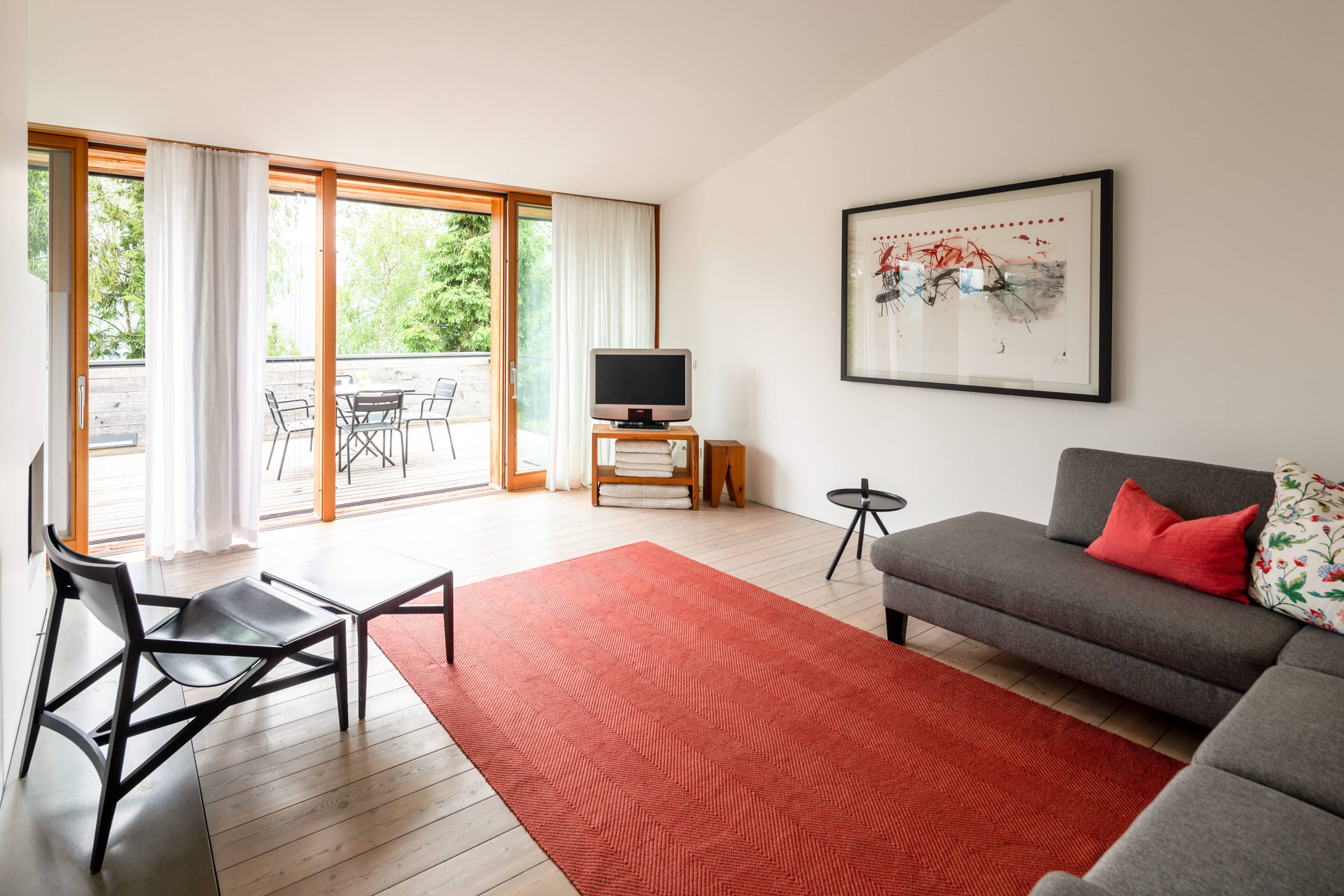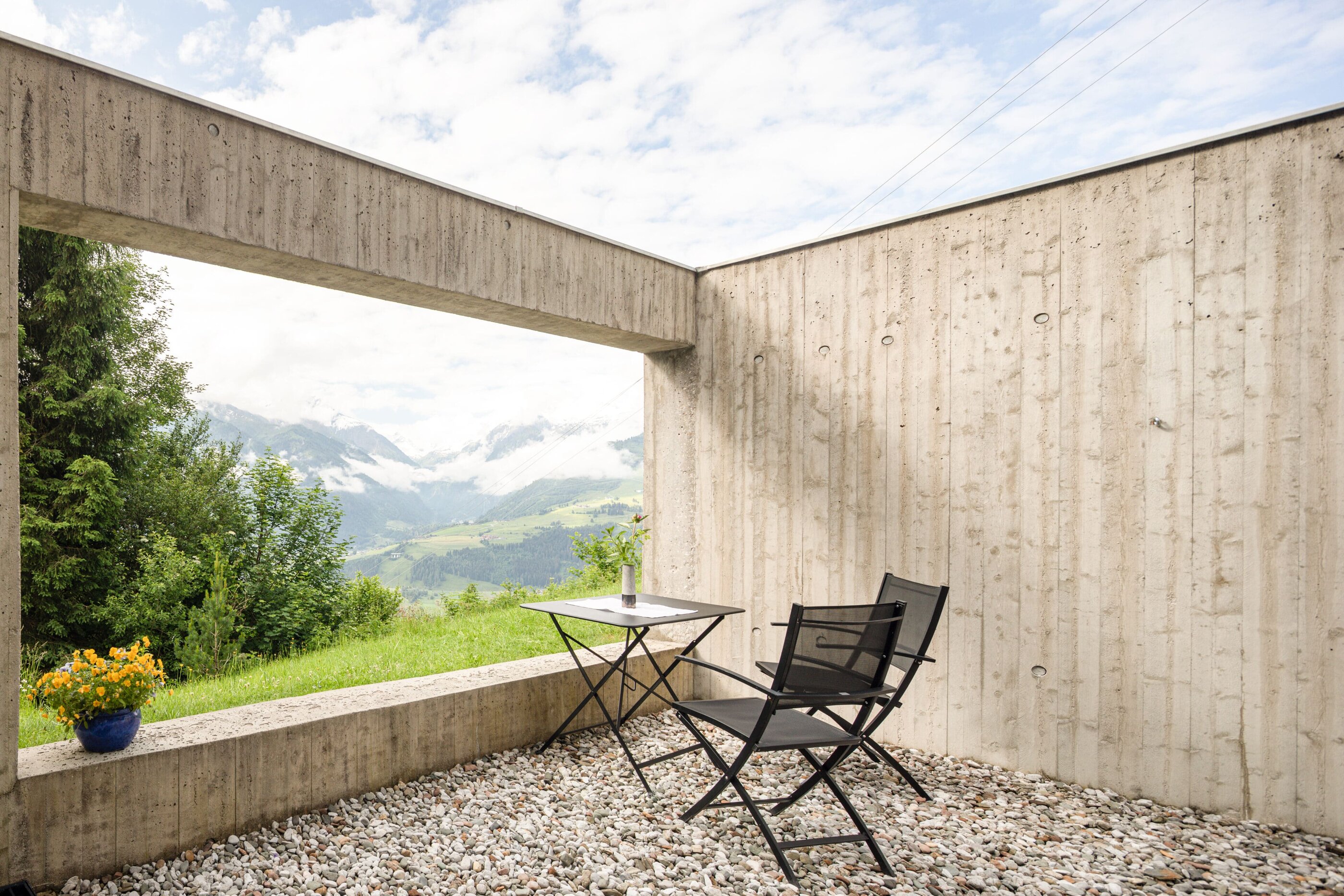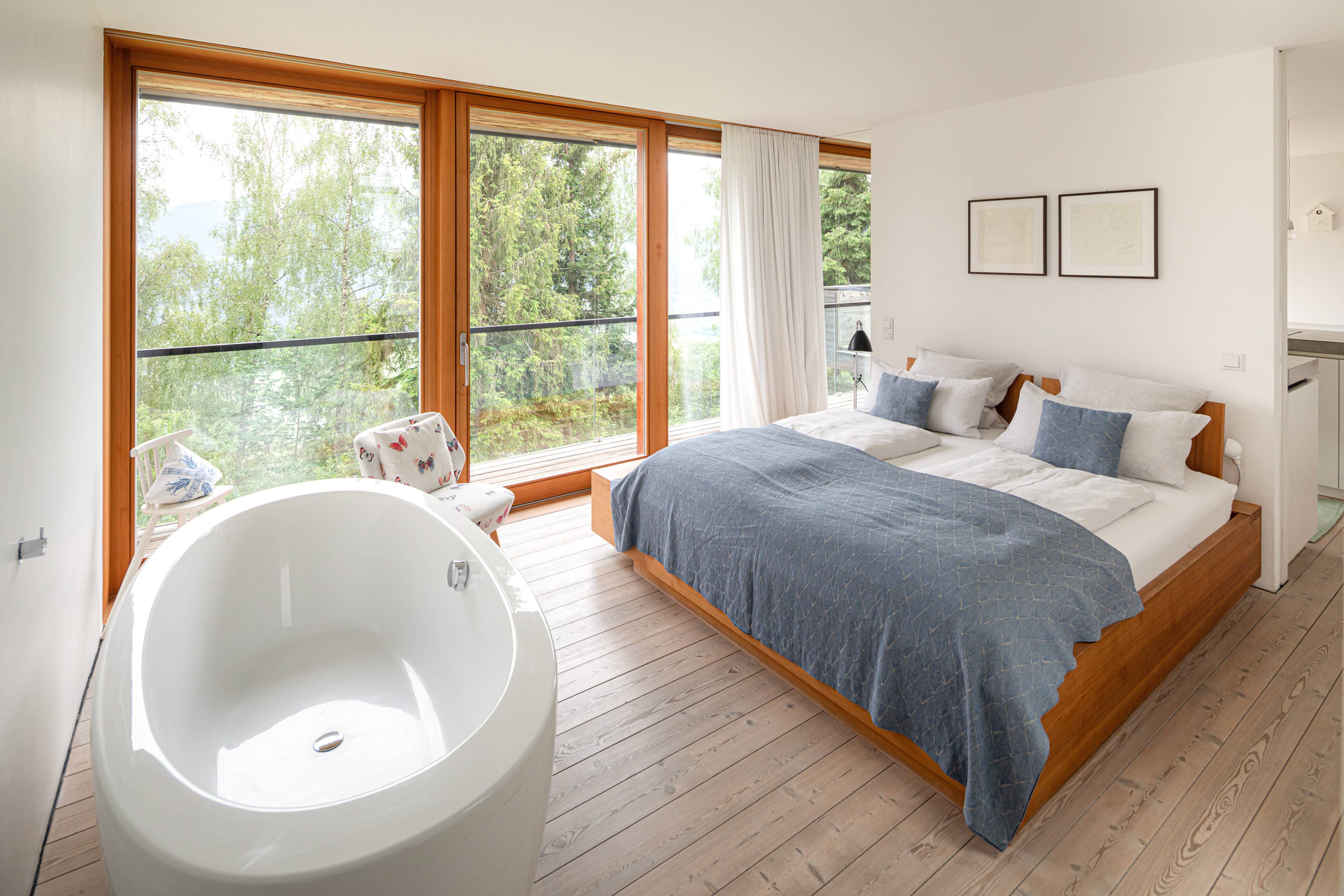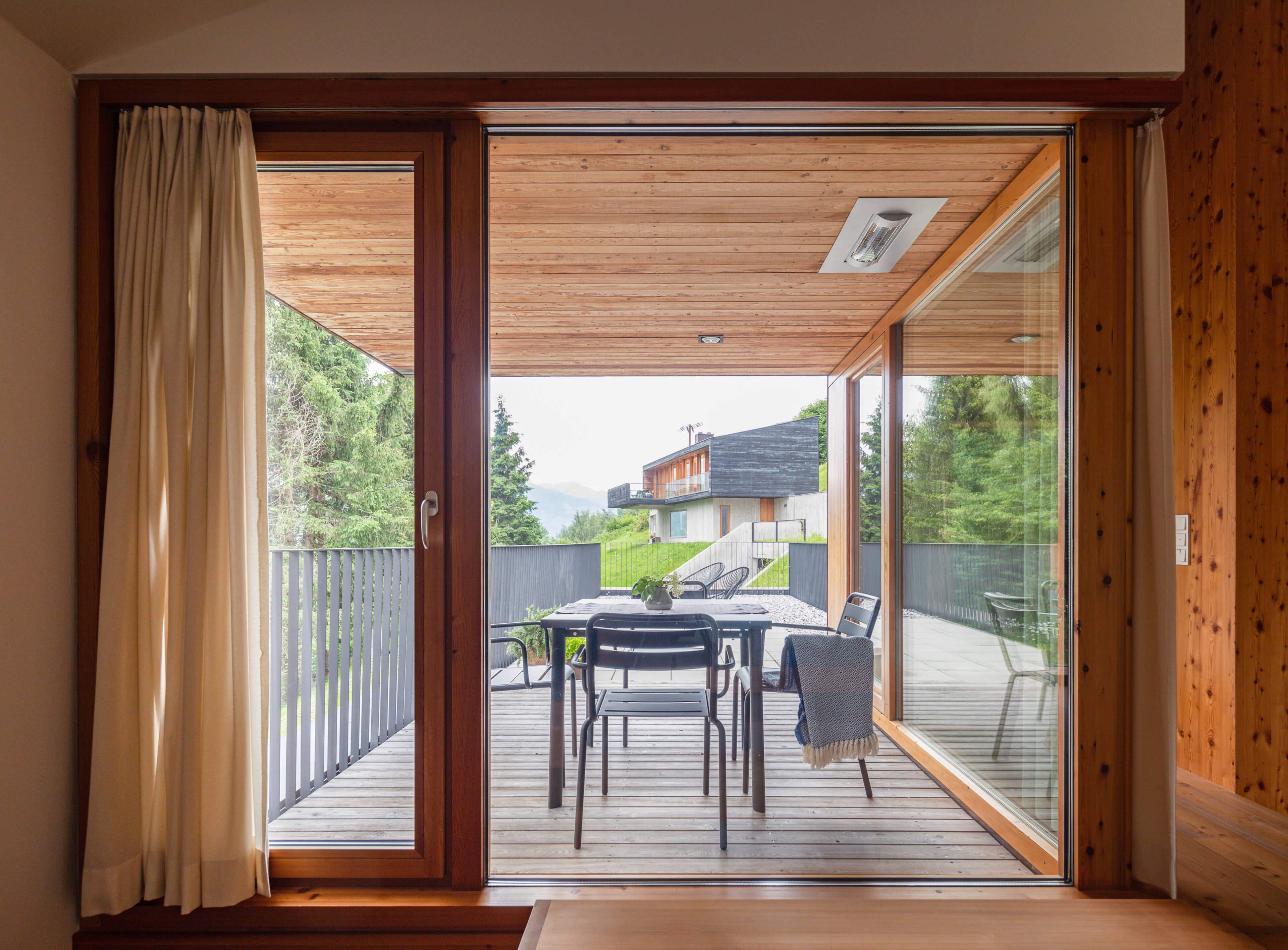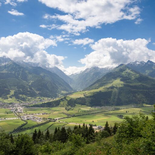 In Architekturhighlights wohnen: Die beiden Ferienhäuser Aufberg 1110 und 1113 wurden als kühnes und geradliniges Statement mitten in einen Hang der Hohen Tauern hineingeplant und bereits für mehrere Architekturpreise nominiert und ausgezeichnet. Zwei Inseln der Ruhe mitten in den Bergen, auf 1110 Meter Höhe und 1113 Meter Höhe über dem Meeresspiegel. Die perfekt geplanten Sichtachsen in den vier außergewöhnlichen Wohnungen beglücken Freunde von ausgewogener Symmetrie, die natürlichen Materialien aus naturbelassenem Holz, Stahlbeton und hellgrauen Stein erfreuen das design- und architekturaffine Herz. Durch die riesengroßen Fenster fühlt man sich inmitten der Natur und ist doch gleichzeitig gut beschützt. Im Aufberg 1113 sieht man vom Apartment Schwalbennest durch die Fensterrahmen auf die Gletscher wie auf ein Bild an der Wand. Absolutes Highlight ist die in luftiger Höhe schwebende Terrasse. Diese ist mittlerweile tatsächlich legendär, denn sie ziert zahlreiche Cover von Reise- und Architekturmagazinen. Die zweite Wohnung, das Spatzennest, bezaubert mit einem fantastischen Rundumblick von Ost nach West. Die beiden Wohnungen im kleineren Haus Aufberg 1110, Freisitz und Ansitz, haben ganze Wände und Einbauten aus Holz, mit unterschiedlichen Raumhöhen und Galerien und begeistern ebenfalls mit großen Panoramafenstern. Sie verbreiten die Wärme und Behaglichkeit einer klassischen Berghütte, samt Kamin und knisterndem Holzfeuer. Auf dem Berg im Aufberg zu wohnen, ist eine ganz besondere Erfahrung.