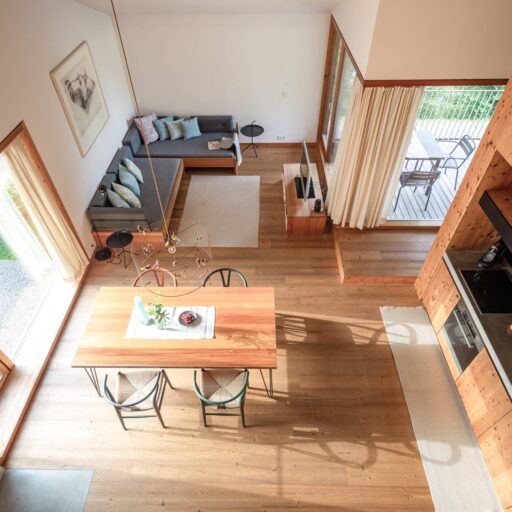 • die beiden Häuser (nach einem Entwurf des renommierten Münchner Architekten Prof. Andreas Meck) auf 1110 und 1113 Meter über dem Meeresspiegel sind architektonisch ein Ensemble, dennoch hat jedes Haus seinen ganz eigenen, außergewöhnlichen Charme