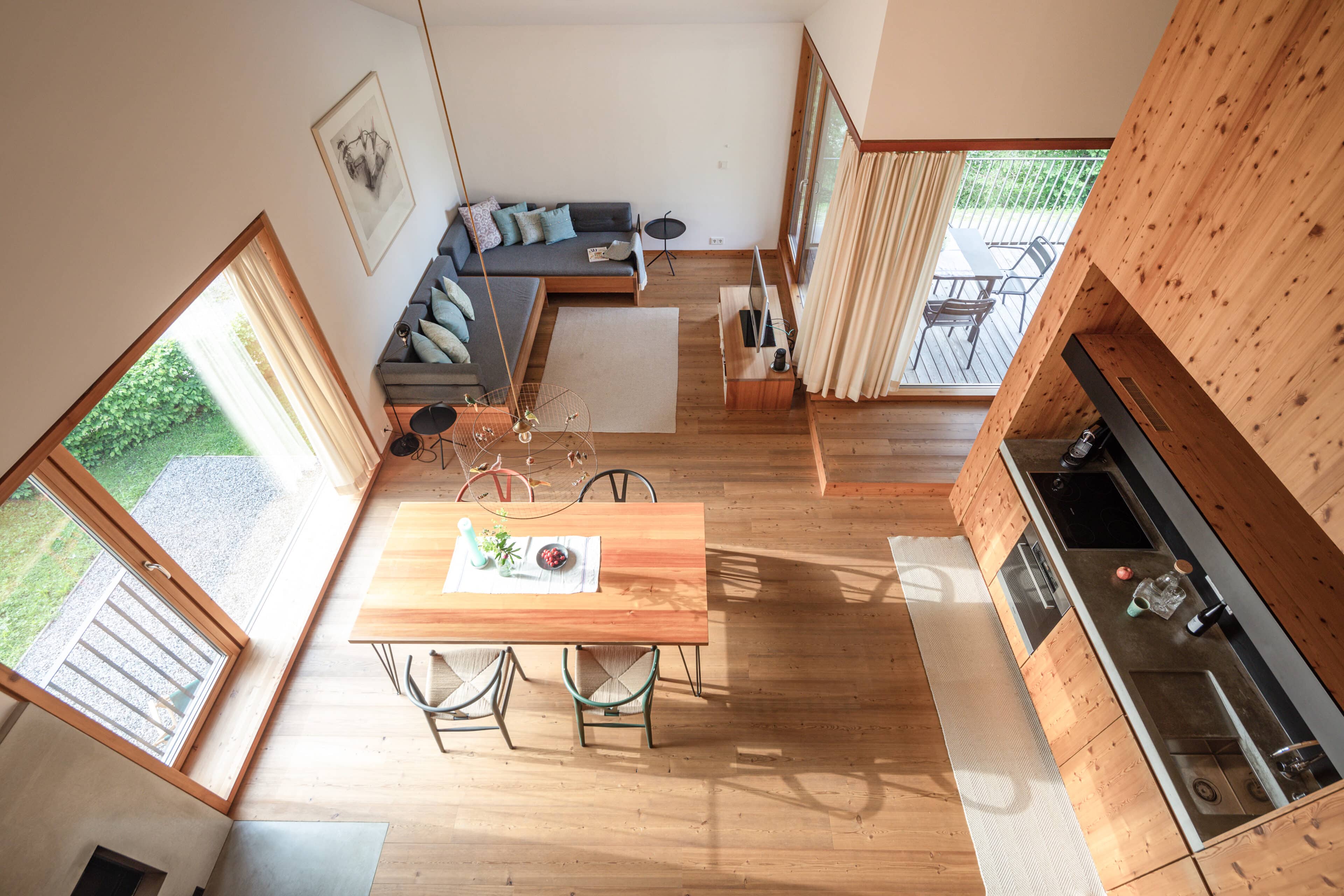 • die unbeschreiblich tolle Terrasse im Schwalbennest und auch den Kamin, der als Raumteiler von zwei Seiten zu bewundern ist