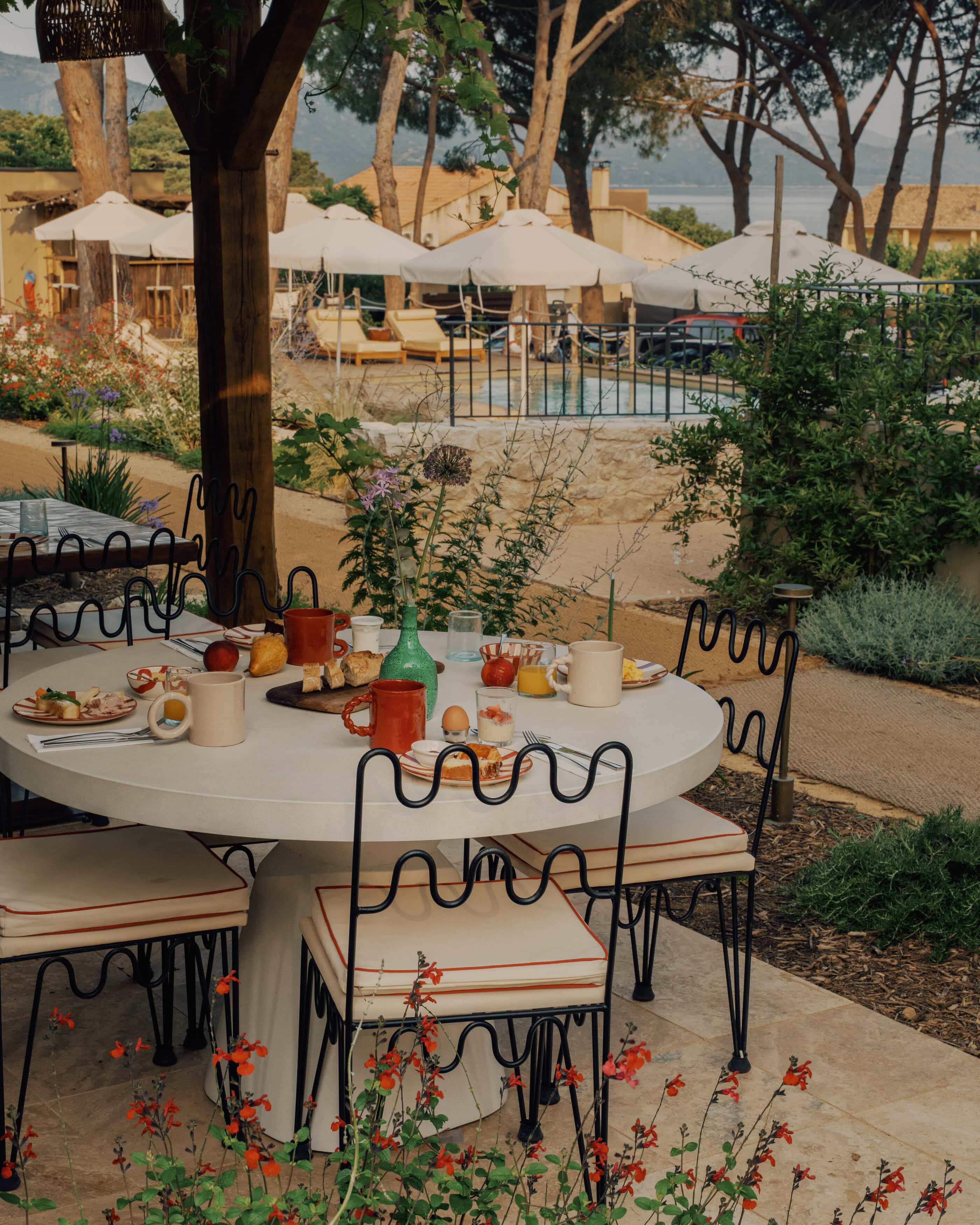 Um seine Zuneigung zu zeigen, sagt man auf Korsika „Basgi basgi“ (ausgesprochen „Baji Baji“). Es ist ein Ausdruck der Freundschaft, verbunden mit dem Versprechen auf ein Wiedersehen. Für die Gastgeber Coline und Matthieu hätte es keinen passenderen Namen für ihr Boutique-Hotel in Saint-Florent im Norden der Insel geben können, denn genau dieses Gefühl möchten sie ihren Gästen vermitteln: sich hier wie langjährige Freunde willkommen zu fühlen. Das sandfarbene Kalksteingebäude mit Fensterläden in Salbeigrün war ursprünglich der erste Weinkeller der Region Nebbiu. Seit 2025 verteilen sich hier 28 Gästezimmer auf zwei Gebäude – von einigen schaut man aufs Meer, andere öffnen sich zum Garten. Die dezente Einrichtung kombiniert mediterranen Stil mit Art-Déco-Elementen und grafischen Akzenten, die an das Memphis-Design der 80er Jahre erinnern. Viel Licht, warme Farben, natürliche Materialien und harmonische Formen. Draußen warten Pool und hohe Pinien: Liegestuhl zurechtrücken, ein Buch aufschlagen, ab und zu ins Wasser gleiten. Und sich freuen, dass zum Hotel auch das Restaurant „La Table“ gehört, in dem gehobene Bistro-Küche mit korsischen und mediterranen Aromen serviert wird. Das könnte zum Beispiel so klingen: Kalbs-Cromesquis mit Pastinaken und Topinambur, Blaukrabbe auf einem Salat aus Gurke und gerösteten Erdnüssen und zum Abschluss eine Kombination aus Haselnusskeks und Nektarinenkompott. Dazu eine Auswahl an hundert korsischen Weinen. All das macht es einem sehr leicht, sich erstmal nicht vom Fleck zu bewegen – und mit der Entdeckungstour über diese herrliche Insel erst morgen zu beginnen.