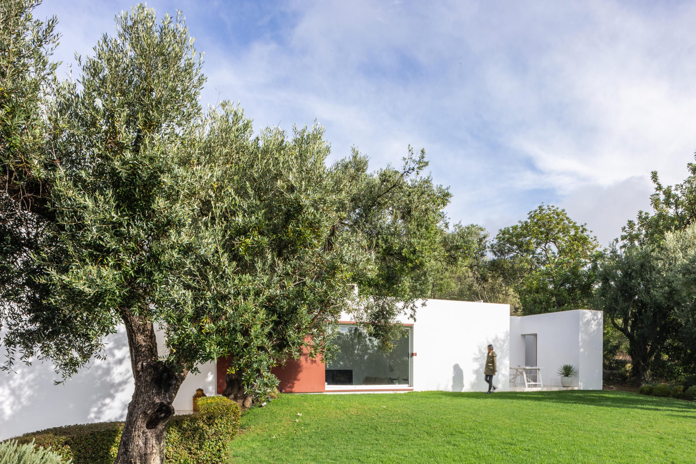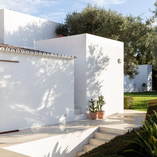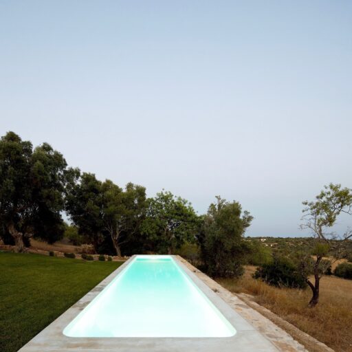 Im hügeligen Hinterland der Algarve liegt die Casa Agostos. Einstmals ein kleines, verfallenes Haus, heute ein interessanter und einladender Platz für Design- und Architekturliebhaber. Kristoff Van der Vekenshat hat den besonderen Charme dieses Ortes erkannt und daraus zusammen mit dem vielfach ausgezeichneten portugiesischen Architekten Pedro Domingos ein modernes Ferienhaus entwickelt. Das ursprüngliche Gebäude, in dem heute die drei Schlafräume liegen, wurde durch einen Eingangsbereich und einen Flügelanbau erweitert, in dem sich nun ein Wohnzimmer und die Küche befinden. Alles ist minimalistisch-elegant eingerichtet und überzeugt durch seine klaren Linienführungen. Große Fenster verbinden die Räume mit der direkten Umgebung und geben den Blick frei auf die wunderschöne Natur – gleichzeitig lassen sie viel von dem Sonnenlicht ins Haus und zaubern wunderbare Licht- und Schattenstimmungen in die Räume. Ein besonderer optischer Reiz entsteht durch den Kontrast zwischen der kargen Landschaft mit knorrigen Mandel- und Olivenbäumen und den klaren geometrischen Formen des Hauses. Ländliche Ruhe und urbanes Lebensgefühl at its best! Und das bei durchschnittlich 300 Sonnentagen im Jahr – was will man mehr?