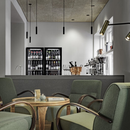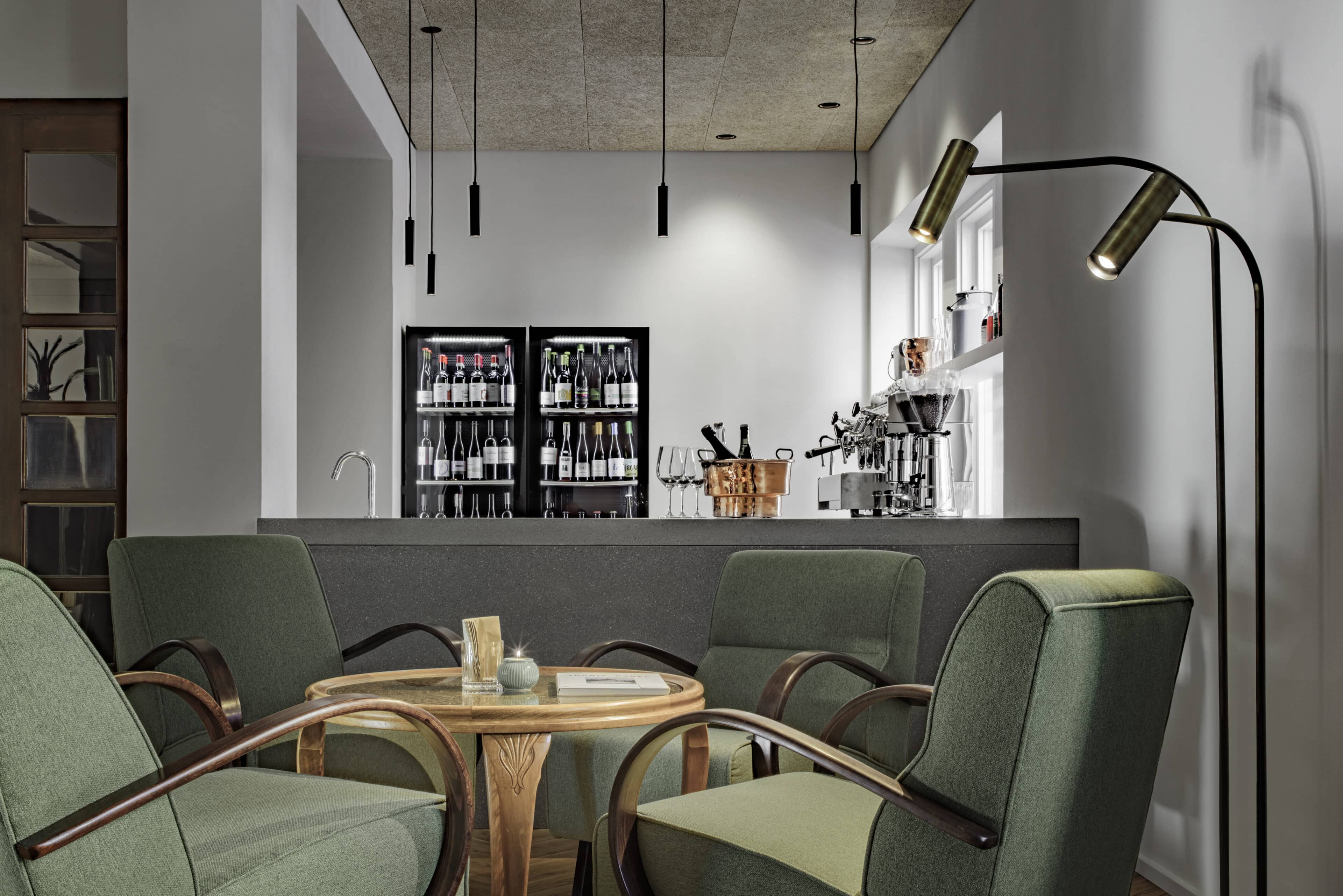 • die Hausbar mit den Cocktailsesseln aus alten Zeiten. Ein prima Ort, um die Seele baumeln zu lassen, Drinks und Häppchen wie Bauerntoast oder Sardellen aus dem Kantabrischen Meer mit Bauernbutter und frischem Brot zu genießen