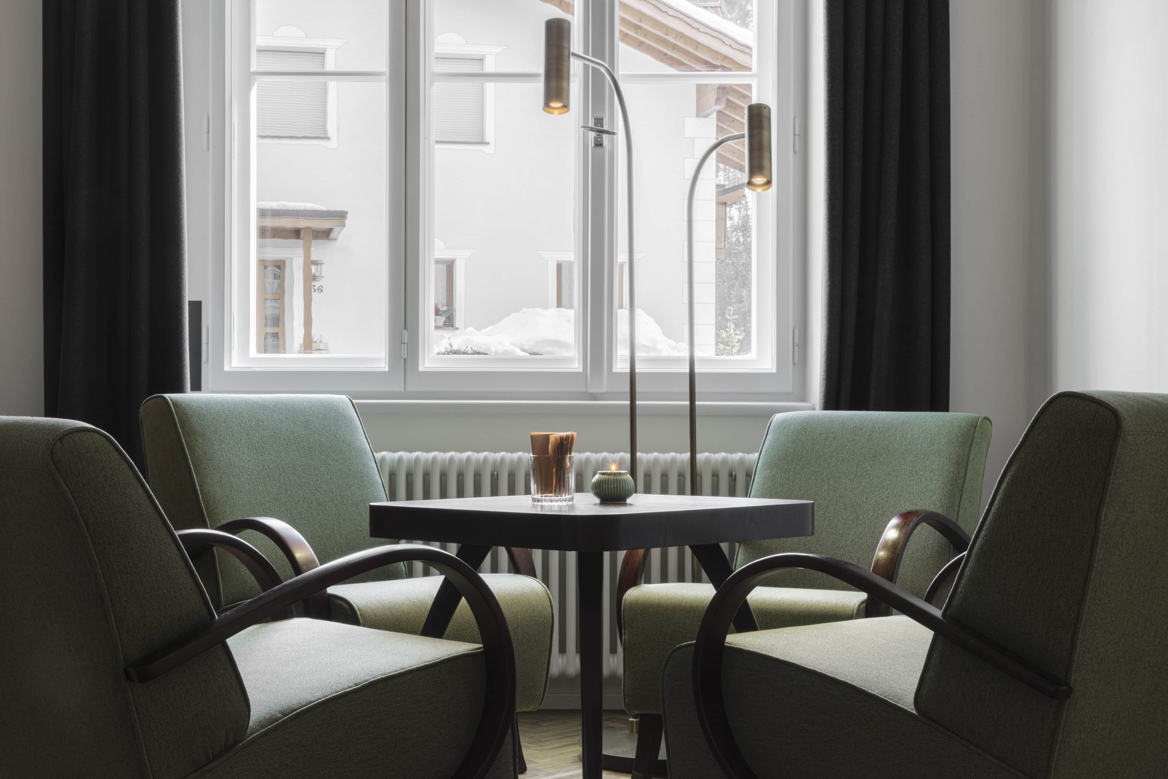 • die besonderen Hingucker wie der glattpolierte Beton in den Bädern, die originalen Böden, die schweren Lodenvorhänge und die Einzelstücke im Retro-Stil