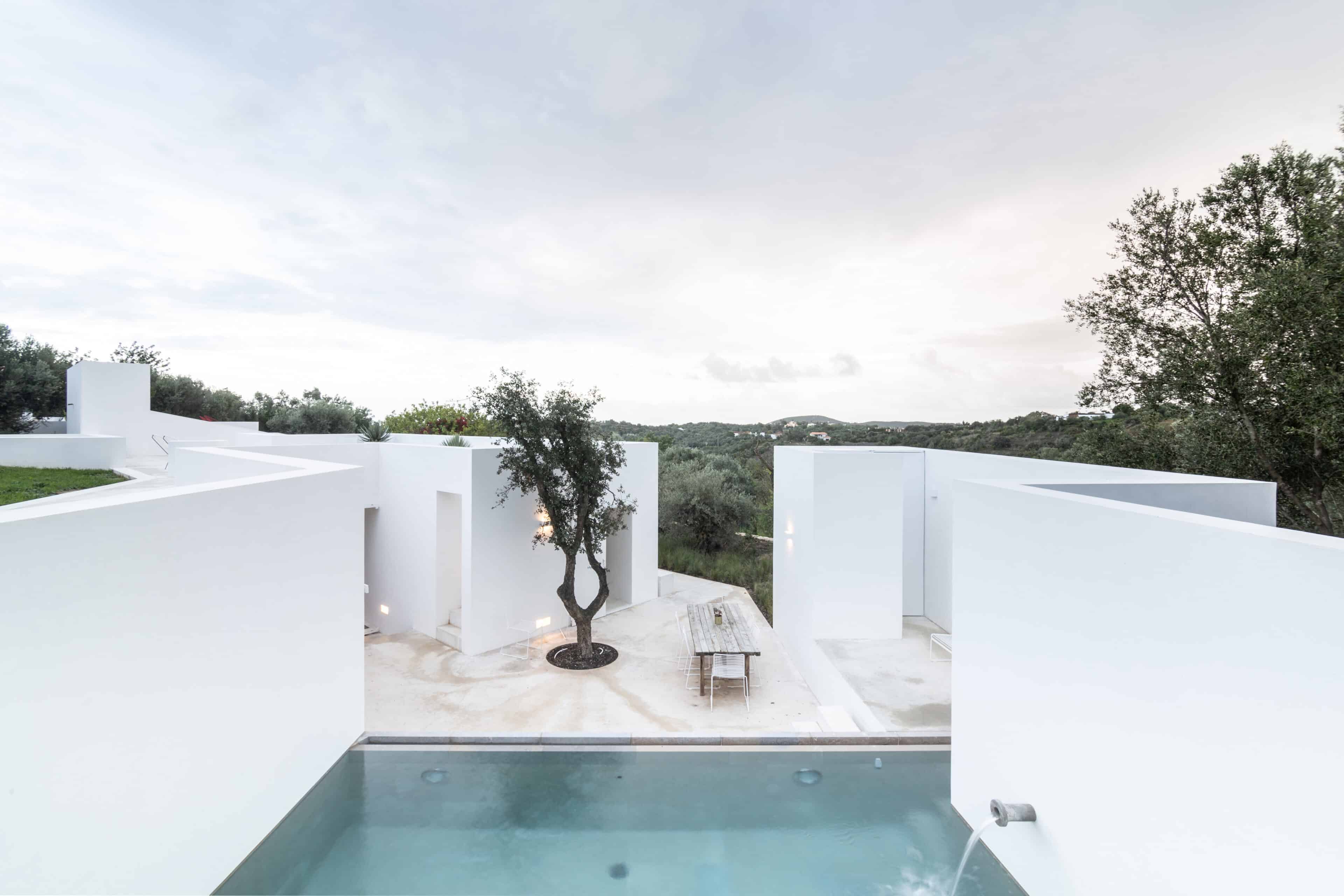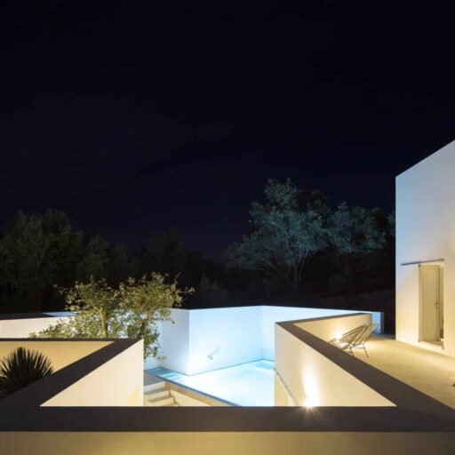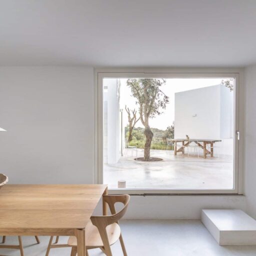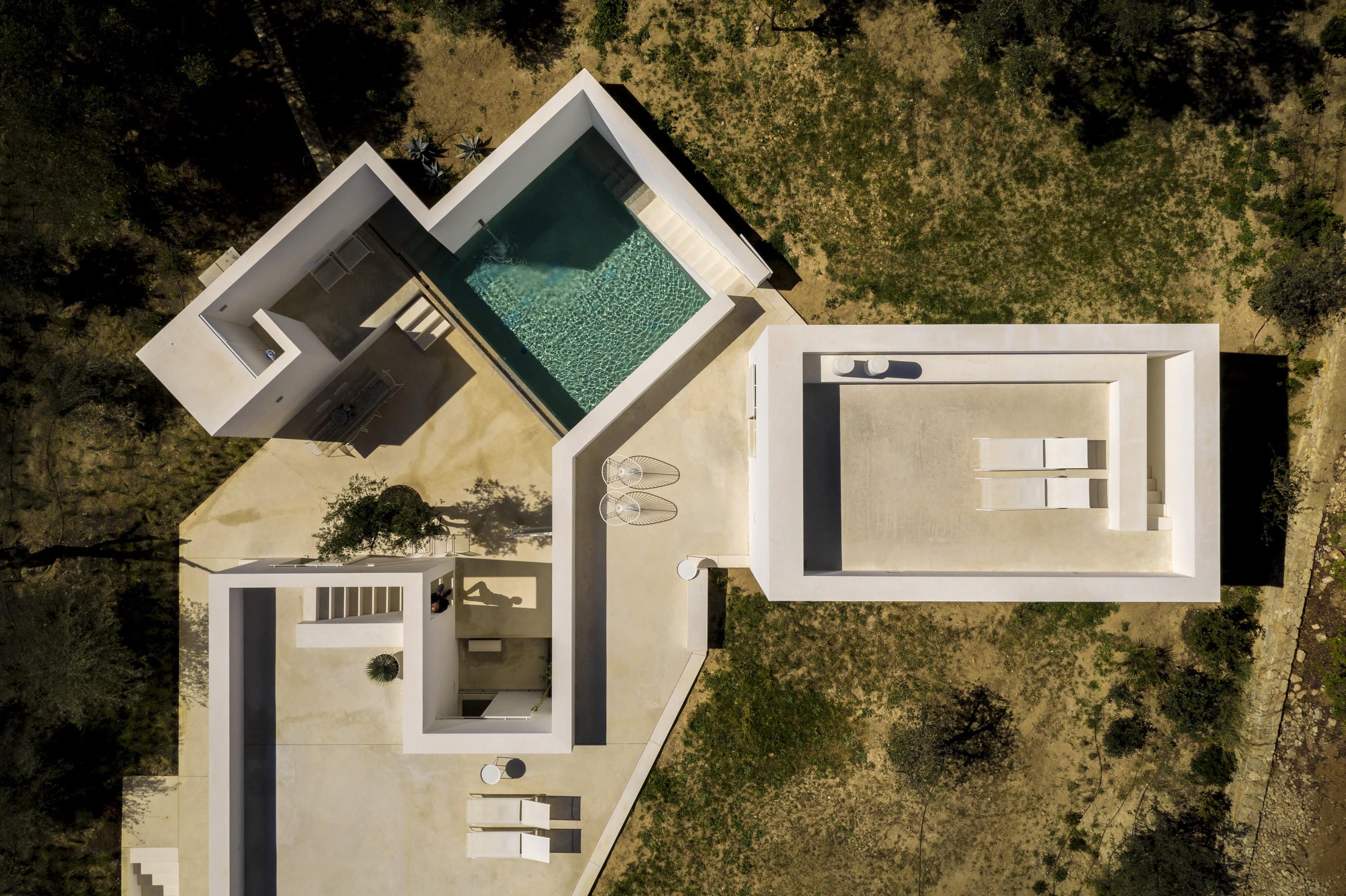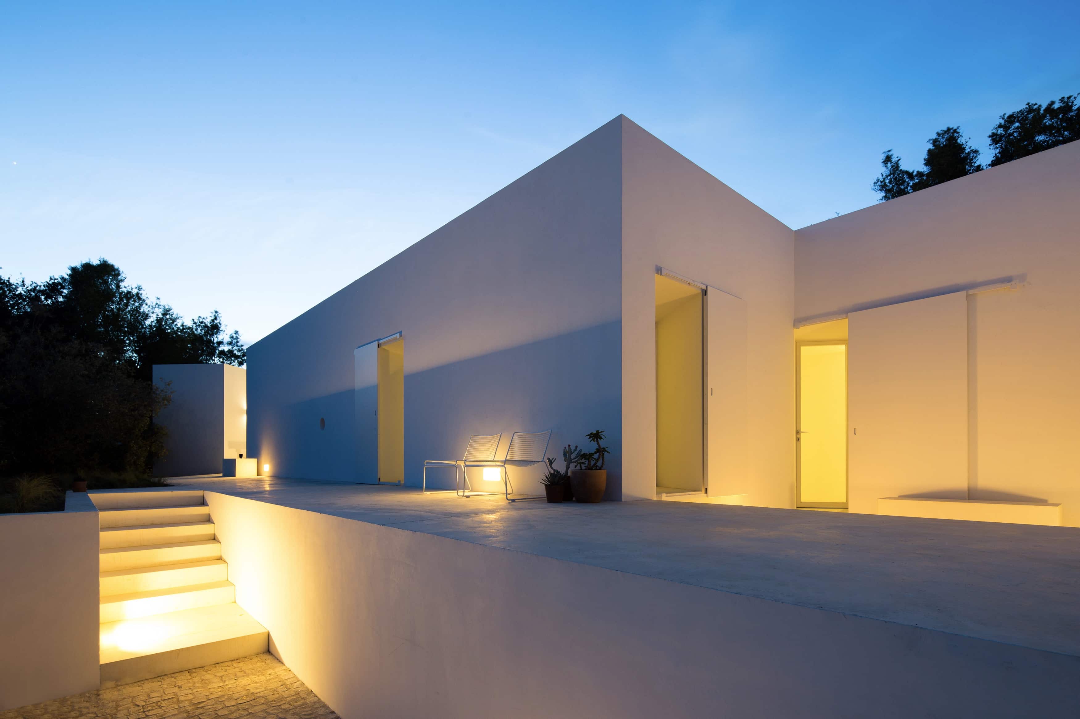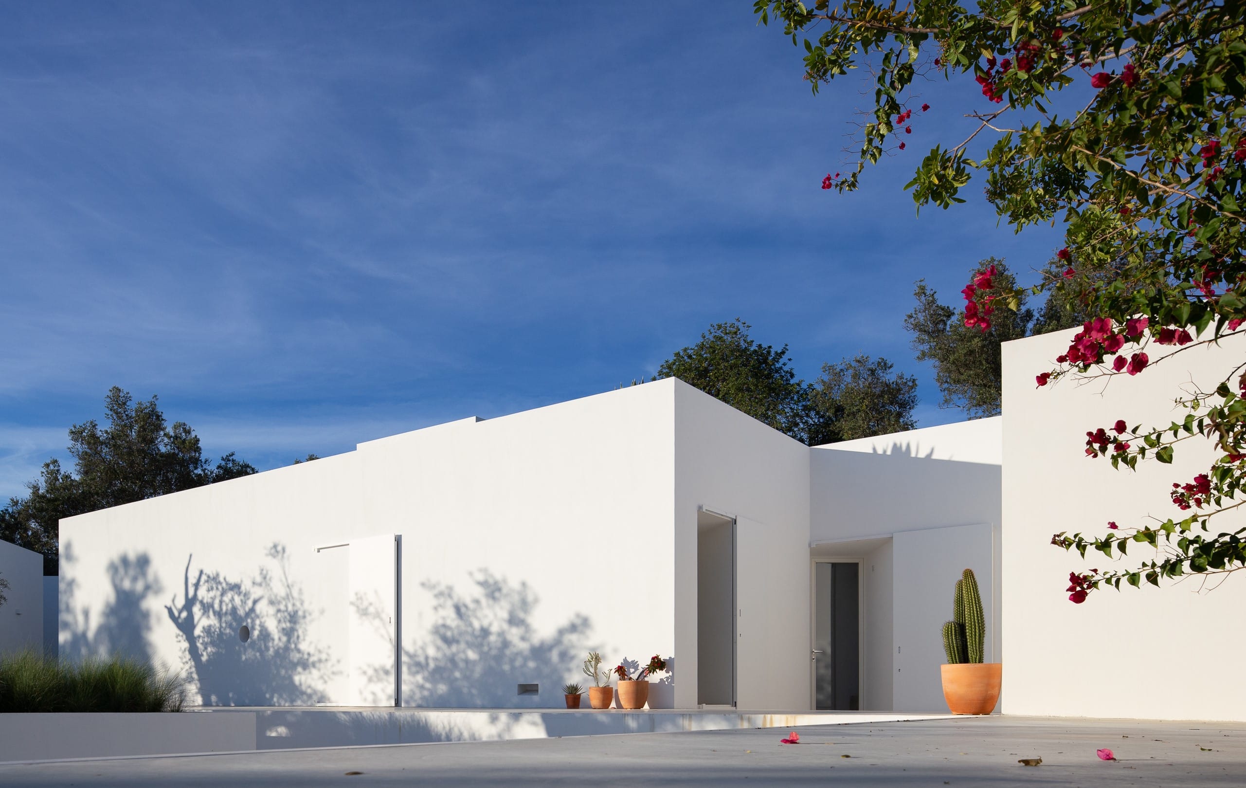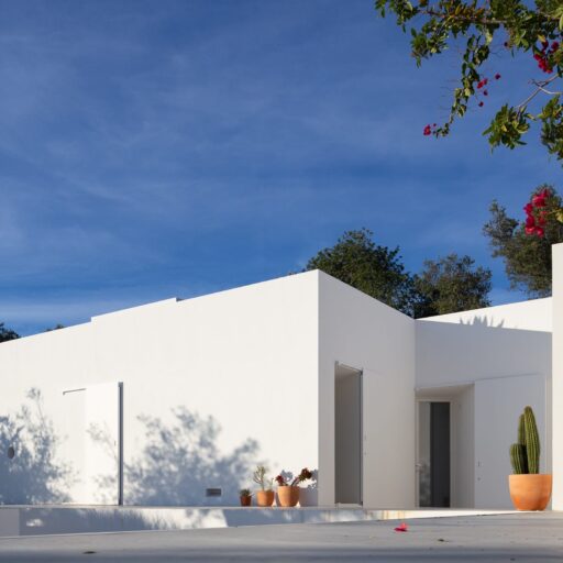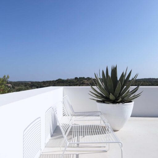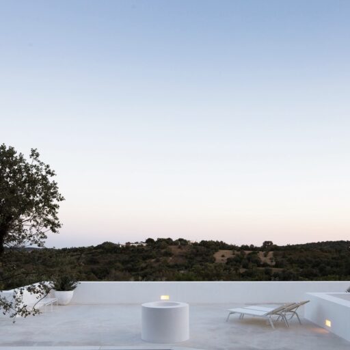 Wenn es eine Kombination von Farbtönen gibt, die in uns direkt Urlaubsgefühle wecken, dann finden wir sie in dieser Architektenvilla an der Algarve. Weißgetünchte Wände umrahmen den halboffenen Pool mit türkisfarbenem Nass, drumherum nichts als endloser blauer Himmel und das Grün von Oliven-, Mandel- und Korkbäumen. Gut möglich, dass die Gäste hier so schnell im Ferien-Flow ankommen, dass sie erstmal vergessen, überhaupt den Koffer auszupacken. Ein äußerst gutes Zeichen, denn Abschalten und Entschleunigen geht an diesem Ort tatsächlich wie von selbst. Wo einst nur eine Ruine am Ende eines Feldwegs stand, schufen die mit vielen Architekturpreisen ausgezeichneten Architekten Pedro Domingos Arquitectos aus Lissabon, die auch das benachbarte Schwesterobjekt Casa Agostos gestaltet haben, hier ein außergewöhnliches, sehr modernes Haus mit mit verwebten Strukturen. Das sich über zwei Stockwerke erstreckende geometrische Gebäude zeichnet sich durch eine klare Linienführung, minimalistische Gestaltung mit weißen Wänden und Betonböden aus. Die Casa Luum mit ihren vier Schlafzimmern ist vollständig von der Natur umgeben und so konzipiert, dass sie sich in alle Richtungen und auf allen Ebenen dorthin öffnet: durch große Fenster und Türen, mehrere Terrassen und einen Innenhof. Die Zimmer sind geräumig und minimalistisch eingerichtet, das Interior in erdigen Farben gehalten, Holz und Textilien aus Naturmaterialien sorgen für eine warme Atmosphäre. Von allen Räumen bietet sich ein herrlicher Panoramablick auf das Naturschutzgebiet. Und wer frisch aus jenen Gefilden anreist, in denen es gerade eher grau und regnerisch zugeht, der wird ein paar Tage brauchen, um beim Wachwerden zu realisieren, dass er nicht einfach nur richtig schön träumt.