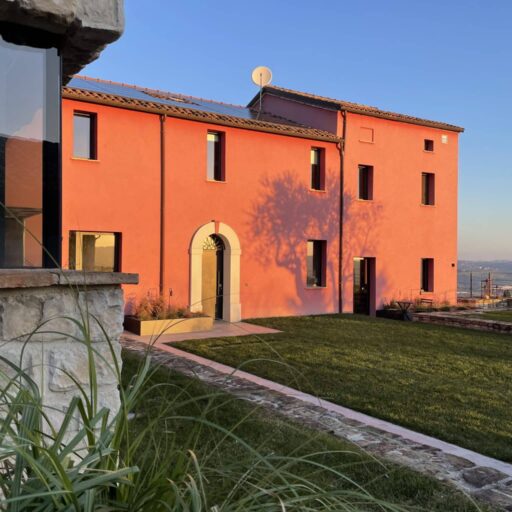 Was für ein Naturschauspiel, wenn die Sonne über dem Esina-Tal aufgeht und die sanfte Hügellandschaft mit ihren wogenden Weinbergen, zarten Zypressen und knorrigen Olivenbäumen in ihr warmes Licht taucht. Allein das Beobachten der vorbeiziehenden Wolken ist ein Erlebnis, und ein toller Start in den Tag! Das Bed & Breakfast Casa rossa 4A liegt auf einer kleinen Anhöhe in den ostitalienischen Marken, die mit ihrer unberührten Natur noch als Geheimtipp gelten. Vis à vis das malerische Dorf Castelbellino mit Blick bis hin zur strahlend blauen Adria. 2007 haben die deutsch-italienischen Gastgeber das Anwesen entdeckt und das ursprüngliche Landhaus aus dem 18. Jahrhundert mit viel Liebe und Respekt vor der traditionellen Architektur renoviert. Das Ergebnis: eine moderne Residenz mit puristisch angehauchten Designelementen, die alte Strukturen wie Natursteinmauern und Holzbalken noch mal besonders betonen und ein beeindruckend neues Raumgefühl erzeugen. Die Gastgeberfamilie lebt selbst das ganze Jahr über hier und schätzt den persönlichen Austausch, z. B. bei einem gemeinsamen Glas Verdicchio am Abend. Doppelzimmer, Studio und Suite sind stilvoll und aufs Wesentliche konzentriert eingerichtet, alle mit eigner Terrasse. Wer will, verpflegt sich selbst. Das frisch zubereitete Frühstück sollte jedoch niemand verpassen! Im Salzwasserpool hinterm Haus kann man anschließend ein paar Bahnen ziehen, oder in der angrenzenden Relax-Lounge einfach mal die Seele baumeln lassen. Zu entdecken gibt es natürlich auch jede Menge: Kleine, typisch italienische Orte, den Nationalpark Monte Conero, herrlich weite Strände und wirklich unzählige kulinarische Köstlichkeiten. La Dolce Vita eben!
