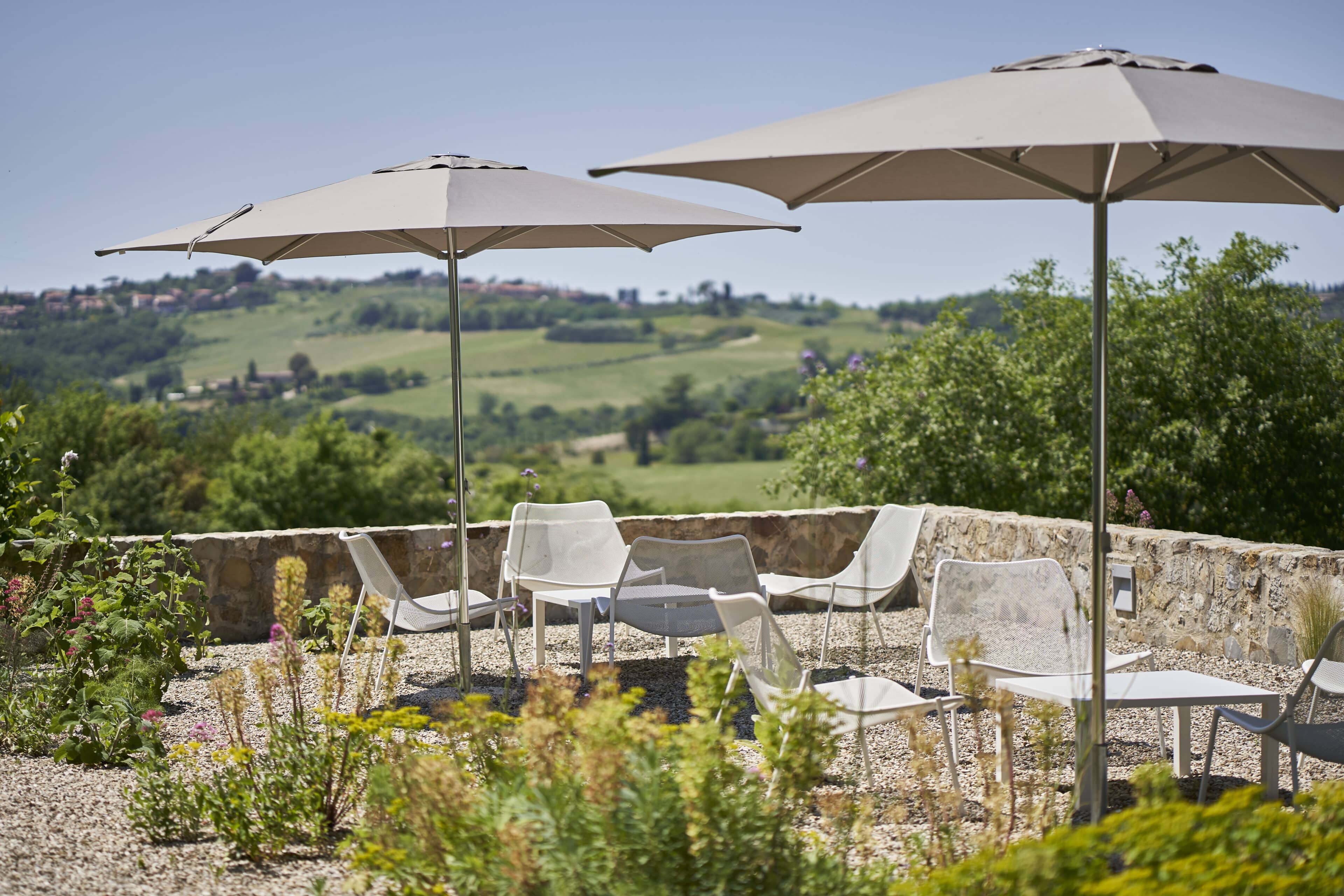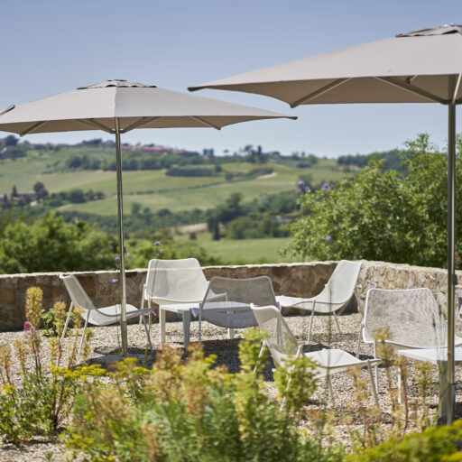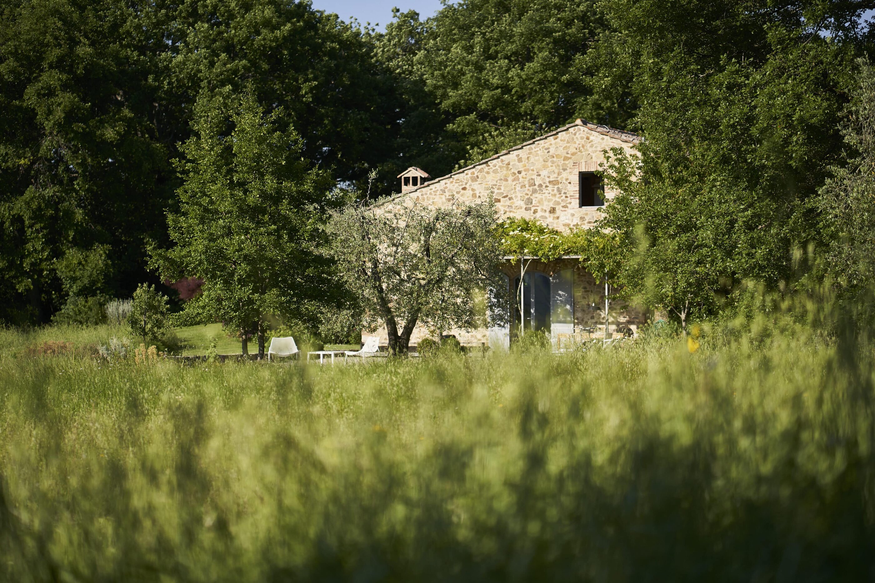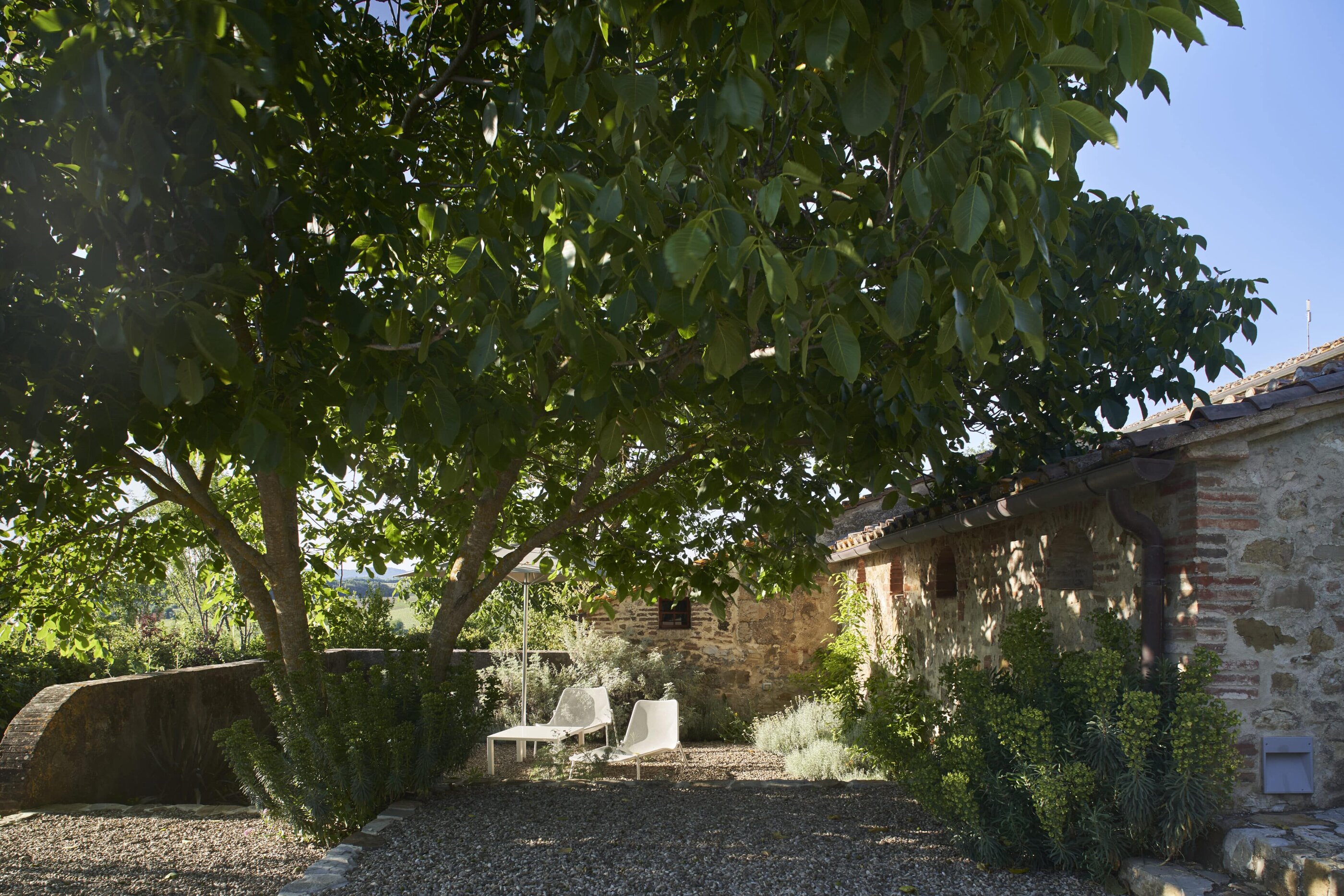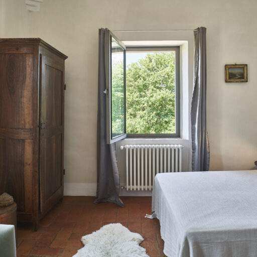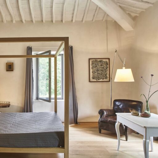 Wenn man nur das Wort „Toskana“ hört, meint man, den Duft von Zypressen, Pinien und wildem Fenchel in der Nase zu haben. Man denkt an Sonnenuntergänge, die alles in ein warmes Licht tauchen, an sanfte Hügel und geduckte Natursteinmauern, in denen sich Geckos verstecken, an würzig-herben Rotwein, Panzanella und knusprig-süße Cantuccini mit Mandeln. Außerdem an historisch und kunstgeschichtlich bedeutsame Städte, an bunte Wäsche vor der Fenstern und enge Gassen. Wenn das Italienweh mal wieder brennt, dann ist es Zeit, den Koffer zu packen und das Casale di Cellole anzusteuern, das sich unweit von Siena zwischen den Weinbergen, Wäldern und Feldern der Chianti-Region versteckt. Den verfallenen Bauernhof aus dem 18. Jahrhundert haben die Geschwister Elisa und Angelo Sampieri von ihrem Vater geerbt. Heute befinden sich auf dem liebevoll restaurierten Anwesen fünf individuelle Unterkünfte: zwei zu Ferienhäusern umgebaute Scheunen mit rohem Naturstein und offenem Raumkonzept sowie drei Wohnungen im Haupthaus, in dem auch Eigentümerin Elisa mit ihrer Familie lebt. Dass hier Menschen mit einer großen Leidenschaft für das Schöne am Werk sind (Angelo ist Architekt, Elisa Garten-Designerin) ist nicht zu übersehen. Es ist ihnen gelungen, die historische Substanz nicht nur zu bewahren, sondern sie ganz neu in Szene zu setzen.Traditionelle Terrakotta-Fliesen und grober Zementboden werden mit Vintageteilen und modernen Designelementen kombiniert, weiß getünchte Deckenbalken mit bunten Farbakzenten. Draußen empfängt uns ein wilder Blumen- und Kräutergarten mit Terrassen und Bänken im Schatten, von denen wir dem entspannenden Zirpen und Summen lauschen und den Blick auf die umliegenden Weinberge genießen. Zugegeben: Die Sehnsucht nach Dolce Vita wird an einem Ort wie diesem mehr als erfüllt, aber nach dem Abschied natürlich noch viel größer werden. Gut also, dass die Türen hier immer offen stehen!