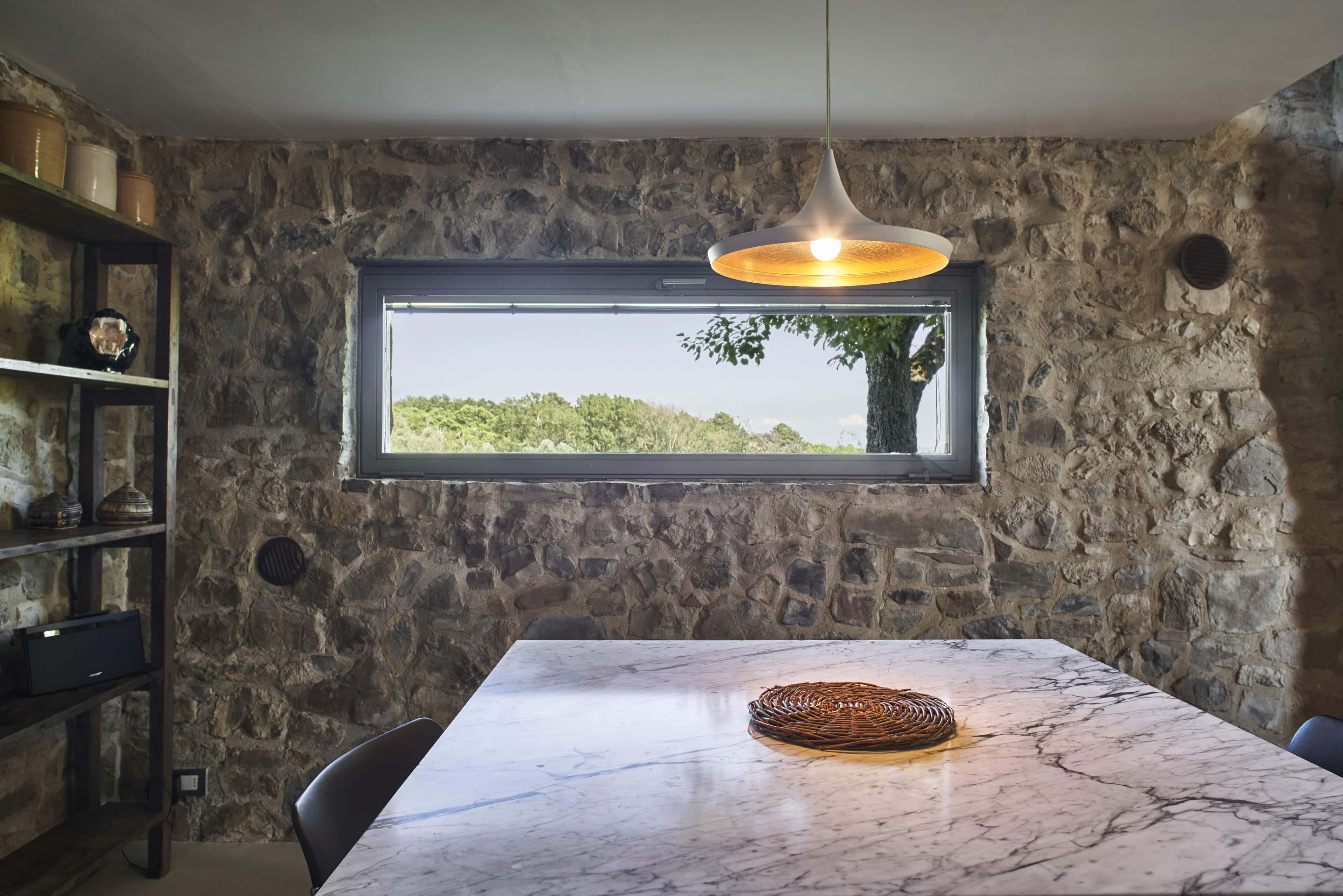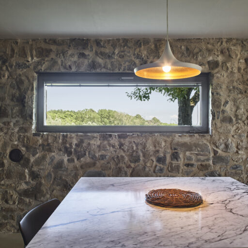 - die gelungenen Kontraste: mal cool, mal gemütlich, heller Sichtstein und dunkler Stahl, die Designerstühle zum antiken Tisch – so schön!