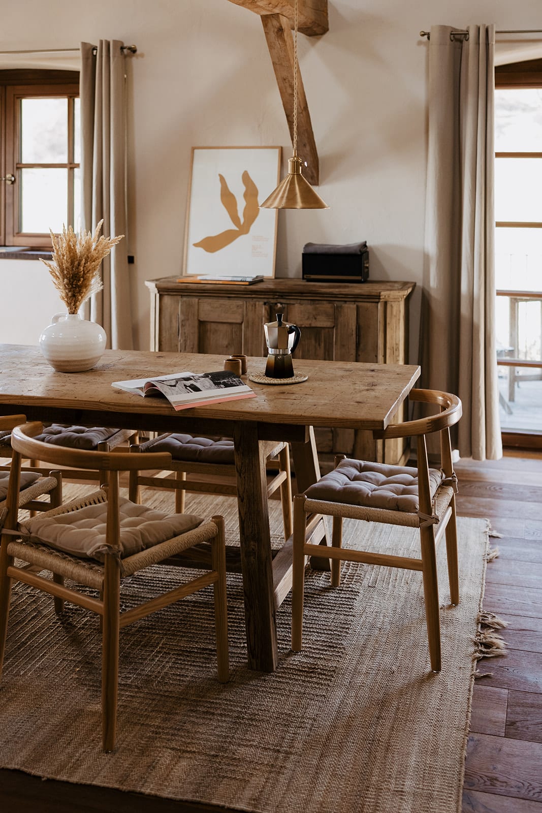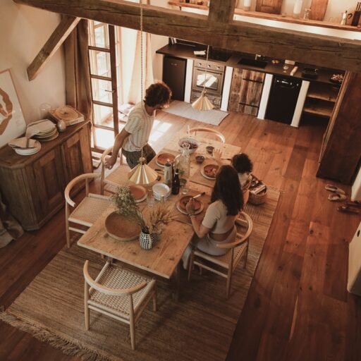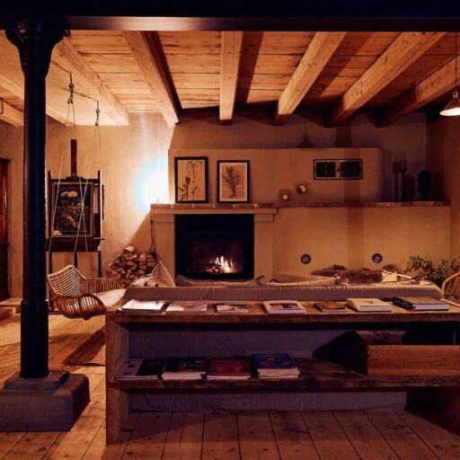 - das wunderschöne „Atelier der langen Weile“: ein Raum für alle, mit Küche, langem Holztisch, Büchern, Musik und Schaukel (logo) und einem großem Kamin für prasselndes Feuer
