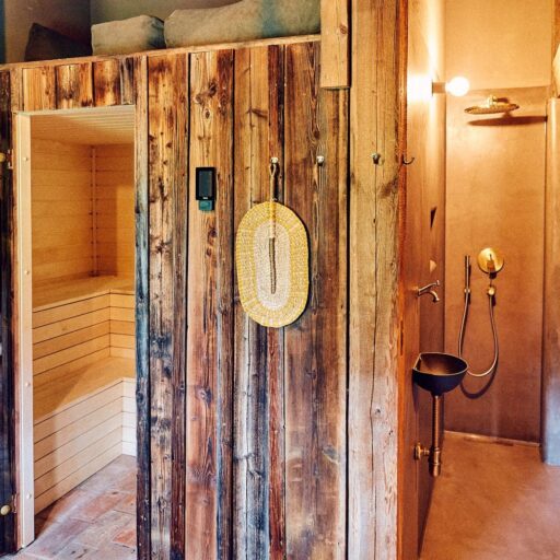 - es gibt auch eine Sauna: aus Altholz gebaut, mit Zirbelkieferaufguss