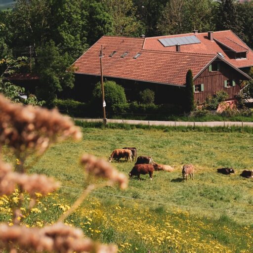 - der Hof liegt inmitten des Allgäus und doch abseits der Pfade des Ouvertourism. Zu entdecken gibt es dennoch Einiges, z.B. die unentdeckten Wälder der Adelegg, die sanften Hügel von Eschach oder die Flussschleife im Naturparadies der Iller, Alpen und Bodensee sind in Sichtweite