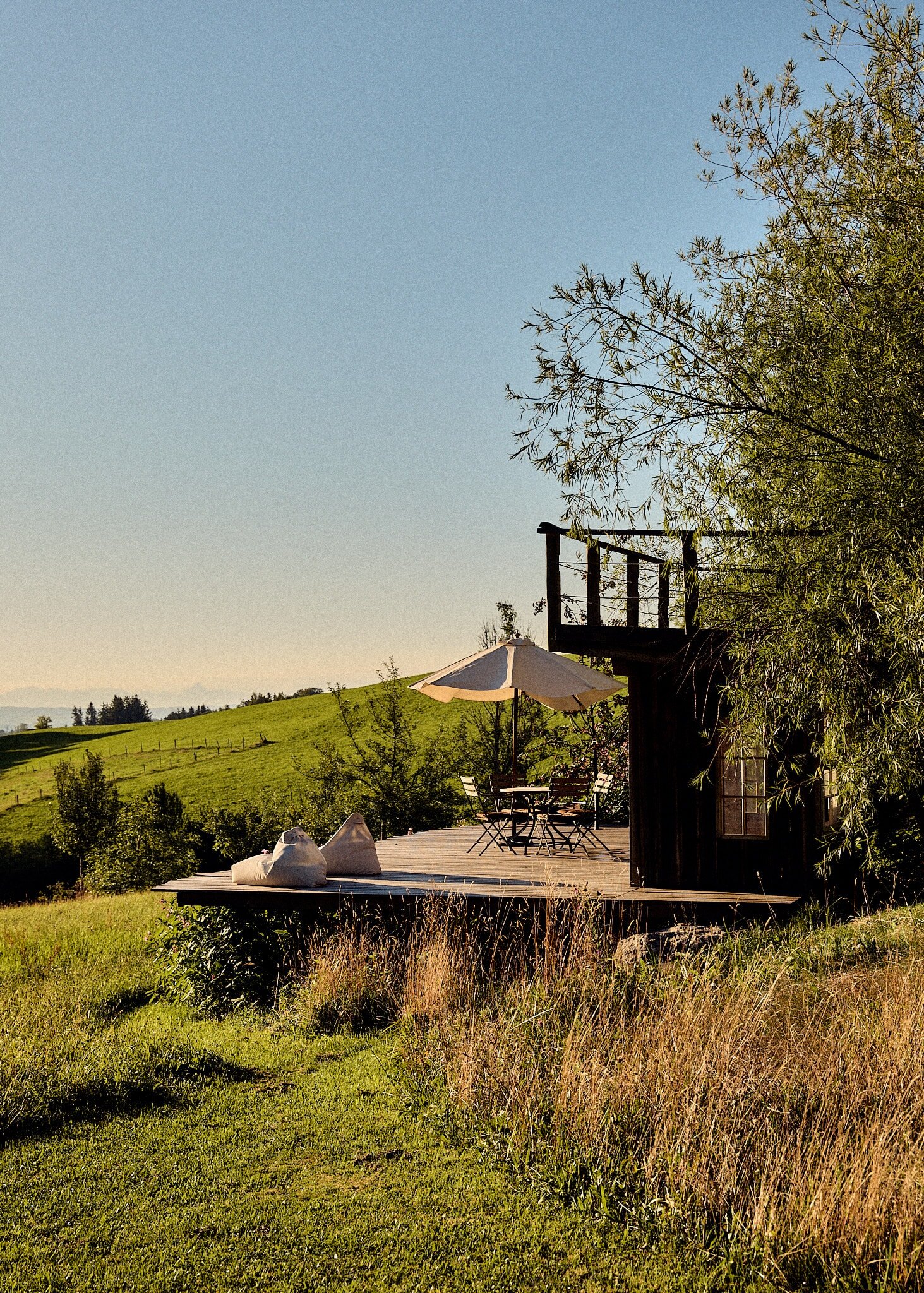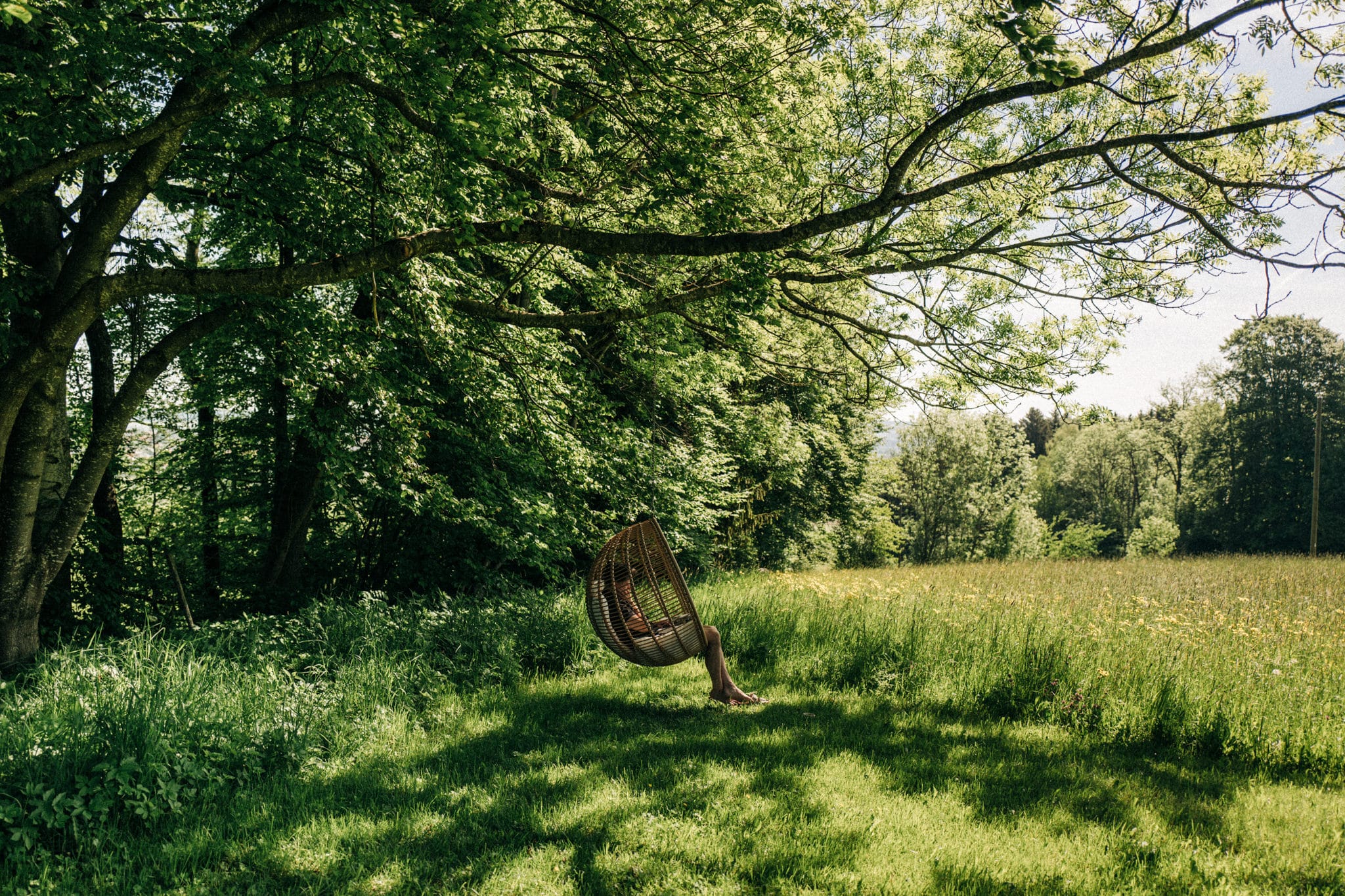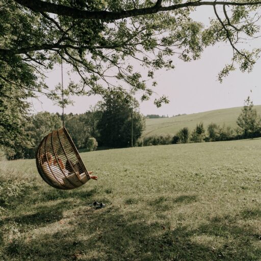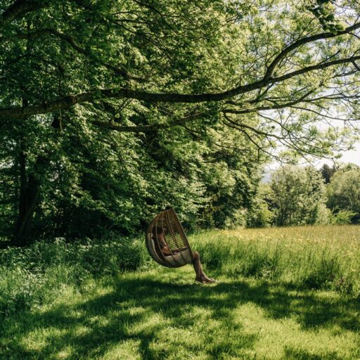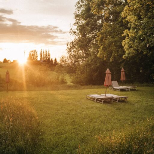 - die Liegewiese mit Sonnenliegen und natürlich Schaukeln, außerdem Aussicht auf die Alpen