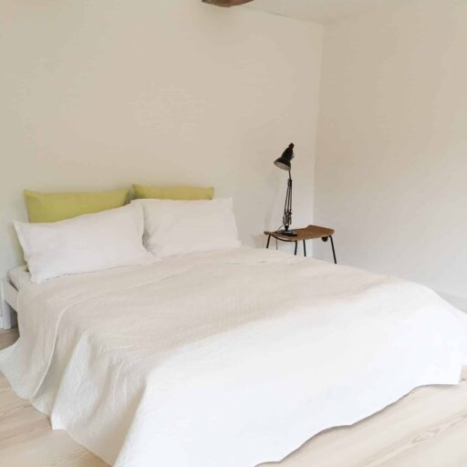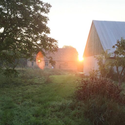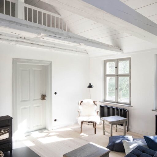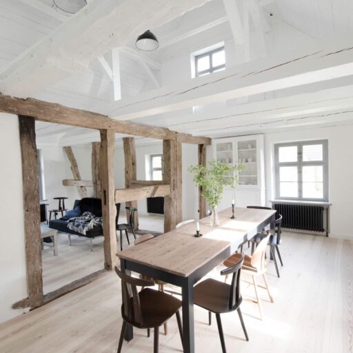 Sternhagen – ein kleines, zauberhaftes Dörfchen in der Uckermark, bestehend aus einer mittelalterlichen Kirche, alten Höfen und viel verwunschener Natur drumherum. Inmitten des Dorfes liegt das 200 Jahre alte Sternhagener Haus. Äußerlich ein typisches Brandenburger Bauernhaus: schlicht, fast ein bisschen streng, und dennoch einladend mit seinen roten Ziegeln, den Biberschwanzschindeln auf dem Dach und den original erhaltenen Fenstern und Türen. Betritt man es, reibt man sich kurz mal die Augen angesichts so viel unvermuteter Helligkeit und Weite. Denn innen wurde modernisiert, wurden Wände entfernt, Räume bis zum Dach hin geöffnet, alte Balken freigelegt. Weiß und Hellgrau geben den Ton an und bringen alles zum Strahlen und Leuchten, schwarze Heizkörper und Lampen bilden einen edlen Kontrast dazu. Im 40 qm großen, offenen Raum sitzt, klönt und entspannt es sich ganz wunderbar. Man erfreut sich an der schönen Einrichtung im skandinavischen Stil oder schaut durchs Fenster raus in den Garten. Ach ja, der Garten: wild und verwunschen und riesengroß, mit duftenden Holunder- und Fliederbüschen, knorrigen alten Obstbäumen und grünen Wiesen. Man kann sich glücklich schätzen, wenn man hier mit nackten Füßen durch das morgentaufrische Gras laufen, mit einem Buch auf der Wiese liegen, den vorbeiziehenden Wolken nachschauen und dem Quaken der Frösche lauschen darf. Natürlich haben auch die anderen Jahreszeiten an diesem Ort ihren Reiz: buntes Herbstlaub, kühler Morgennebel, schneebedeckte Landschaft oder heimelige Stunden am Kaminfeuer. Glücklichmacher gibt es hier das ganze Jahr über.