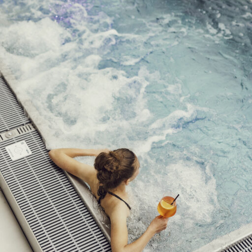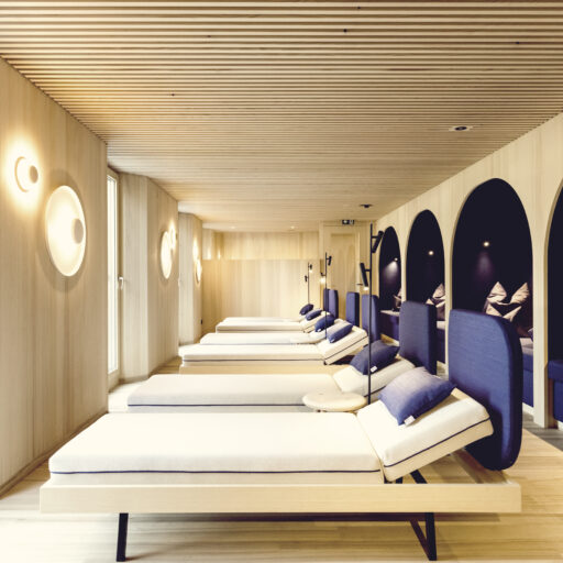 - den im Jahr 2021 komplett renovierten Wellnessbereich des Hotels. In der finnischen Sauna, der Bio-Sauna oder der Infrarot-Kabine lässt sich herrlich entspannen, auf den Liegenischen mit den gemütlichen Rundbögen aus Weißtanne im Ruheraum ausdampfen oder im Außenpool-Whirlpool den Blick auf die Berge genießen