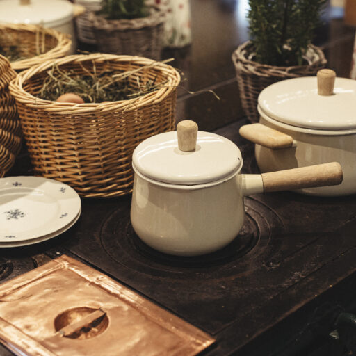 Eine mit Holzschindeln verkleidete Fassade, bordeauxfarbene Fensterläden, Petunien in den Blumenkästen, im Hintergrund Alpenpanorama und vielleicht sogar noch Kuhglockengeläut im Ohr – so einladend, wie sich das Hotel im Bregenzerwald von außen zeigt, ist es auch im Inneren – mindestens! In der 150 Jahre alten Bauernstube, wo sich einst Fuhrmänner trafen und Käsepreise verhandelt wurden, kommt man bis heute zusammen. Und kann sich kaum entscheiden, was nun eigentlich der größere Genuss ist: die traditionelle Wirtshausküche aus heimischen Produkten zu probieren oder die historische Kassettendecke aus Holz in Kombi mit dem glänzenden Fischgrätparkett zu bestaunen. Die 10 Suiten und 11 Zimmer spiegeln das Thema Holz in modernem Design wider: Böden aus Esche, maßgefertigte Einbaumöbel aus geöltem Ulmenholz, dazu Naturtöne, Kalkputz an den Wänden und schöne Bäder mit Natursteinboden und handgefertigten Metrofliesen. Noch mehr frischer Wind weht durch das Ende Dezember 2022 eröffnete Apartmenthaus mit dem Tagescafé s’Frie, etwa hundert Meter vom Stammhaus entfernt. Die fünf Apartments mit wohlklingenden Namen wie „Free Spirit“ oder „Forever Young“ wurden von Handwerkern aus der Region erbaut – lichtdurchflutet und mit hochwertigen Materialien. Wem das alles so gut gefällt, dass er direkt unvergessliche Momente schaffen will, der könnte über einen Anlass nachdenken, groß zu feiern. In der Villa Maund findet man eine unschlagbar schöne Location dafür: Inmitten einer Waldlichtung mit Blick auf die Bergwelt liegt das 1890 erbaute Jagdschlössle des englischen Bankiers und Alpinisten Sir John Oakley Maund, das ebenfalls zum Adler-Ensemble gehört. Ob mit oder ohne großes Fest: die Wahrscheinlichkeit, hier Stammgast zu werden, ist an diesem besonderen Ort natürlich unvergleichlich hoch.