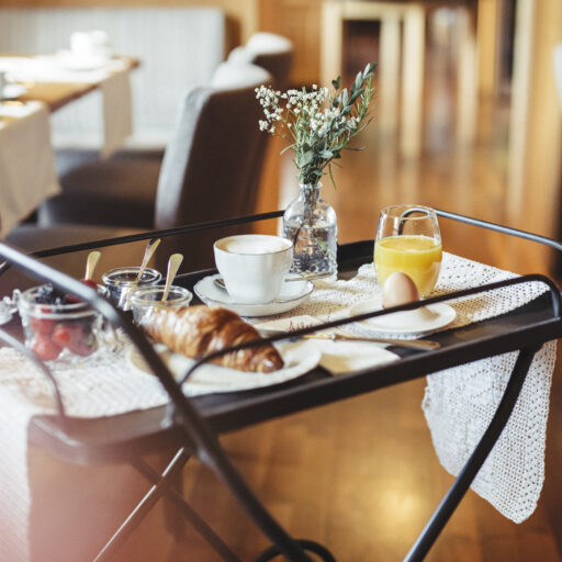 - die saisonal-regionale Küche. Der Morgen startet mit einem bunten Frühstücksbuffet mit frischen Waffeln, Pancakes und Eierspeisen. In der Bauernstube des Hotels gibt es eine kleine, täglich wechselnde Speisekarte