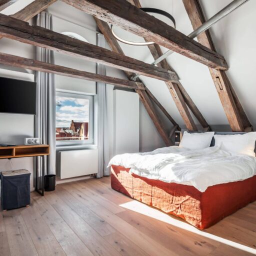 Das stattliche Haus in der Straße Große Altefähre in Lübeck kann eine lange Geschichte erzählen. Sie reicht zurück bis ins Jahr 1790, denn da wurde der Grundstein gelegt für das heutige Hotel mit dem Namen „Die Reederin“. Von 1868 bis 2016 gehörte das Gebäude zum Besitz der Reederei F.H. Bertling. 2017 erwarb Nina Dietze das leerstehende Kulturdenkmal und dachte sich: Perfekt! Perfekt für ein kleines Hotel. Und schon wurde sie, die längst Erfahrung in den Bereichen Gastronomie, Hotellerie und Veranstaltungsorganisation gesammelt hatte, zum Kopf der Reederin. Sie ließ sich in Schweden und Dänemark vom Skandi-Design inspirieren und suchte dort gezielt nach Einrichtungsschätzen, die das Hotel zu dem machen sollte, was es nun geworden ist: ein gemütlicher, heller Ort zum Wohlfühlen. Die Kombination aus modernem und altem Interieur, das sich durchweg am Vorbild der skandinavischen Wohnkultur orientiert, verleiht den Räumlichkeiten ein außergewöhnliches Flair. Das „Flitzihaus“, wie Nina Dietzes Tochter das Hotel taufte (weil man im leeren Rohbau so gut flitzen konnte), bietet Gästen sieben Zimmer auf drei Etagen. Sie heißen Dorothea, Helene, Catharine, Hilde, Ursula, Paula und Anni – wie die sieben Schiffe, die einst für die Reederei F.H. Bertling fuhren. Um der Geschichte des Hauses gebührenden Respekt zu zollen, wurden in den Badezimmern echte Seecontainer verbaut und aus ehemaligen Aktenschränken die Kopfteile der Betten gestaltet. Wer hanseatisches Lebensgefühl und Skandi-Stil mag, ist hier bestens aufgehoben und sollte in einem der Zimmer der „Reederin“ in See stechen – immer in Richtung behagliches Urlaubsgefühl.