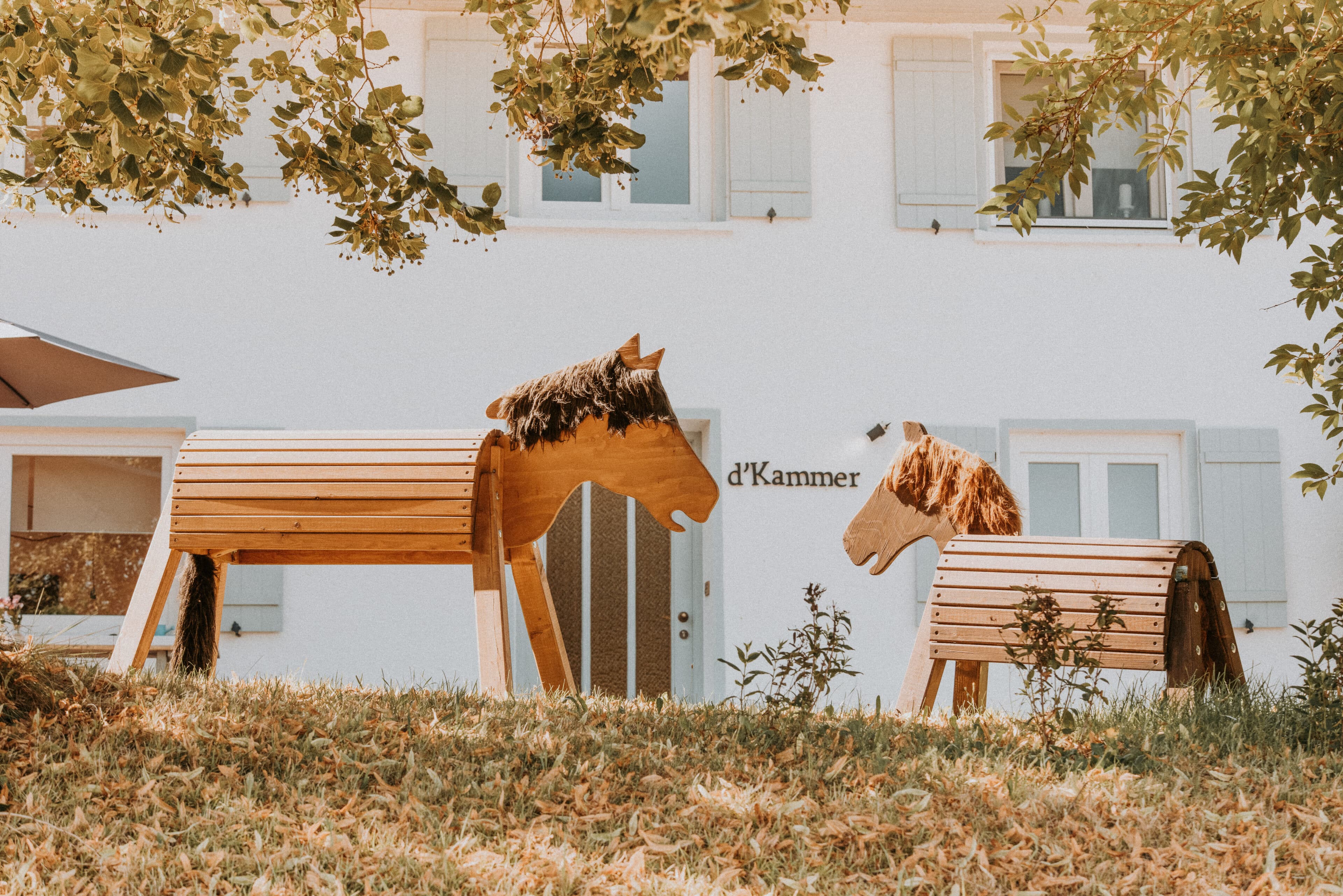 • Kids welcome! Von Zustellbettchen, Hochstühlen, Brettspielen und Büchern, Bastelschuppen, Kettcars, Bollerwagen und Buggy bis zum Schlitten haben die Gastgeber an alles gedacht. Der Streuobstgarten mit Nestschaukel, Bodentrampolin und den zwei Holzpferden Lotti und Karotti bietet ausreichend Platz für kleine Abenteurer