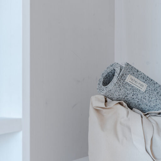 • die Wellness-Tasche steht bereits fertig gepackt in den Wohnungen: mit Bademantel und Saunahandtuch, Yogamatte und -Gurt von hejhej. Der Umwelt zuliebe wird auf Badeschlappen verzichtet