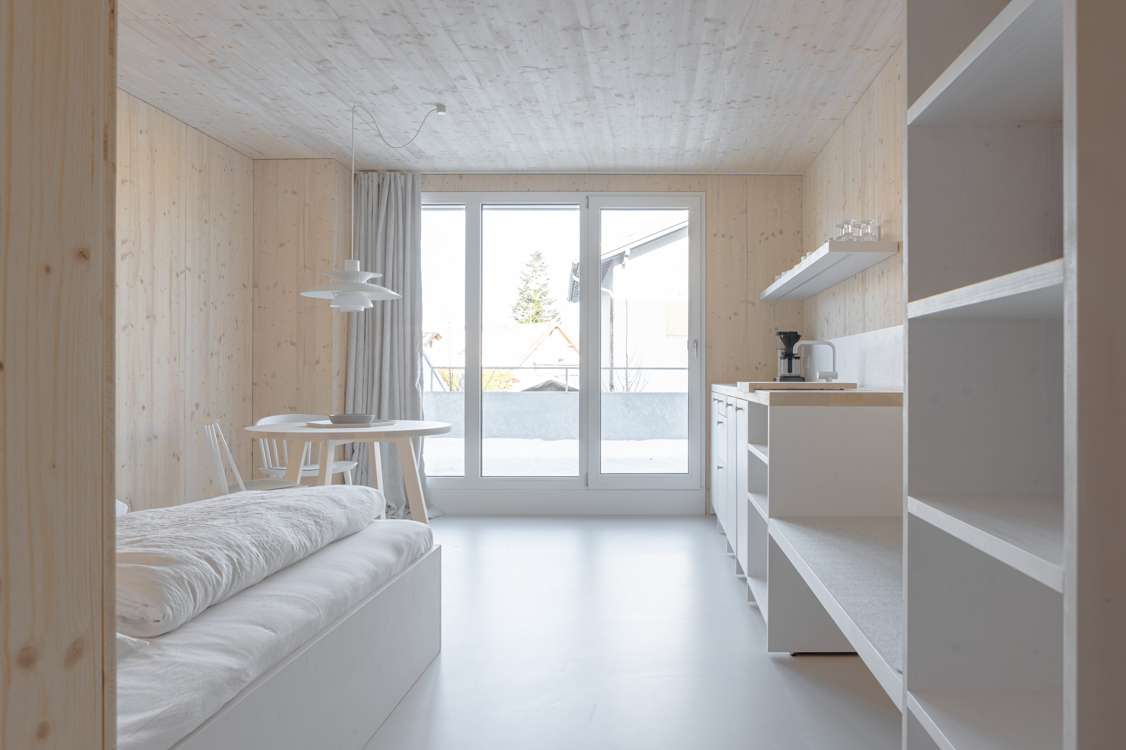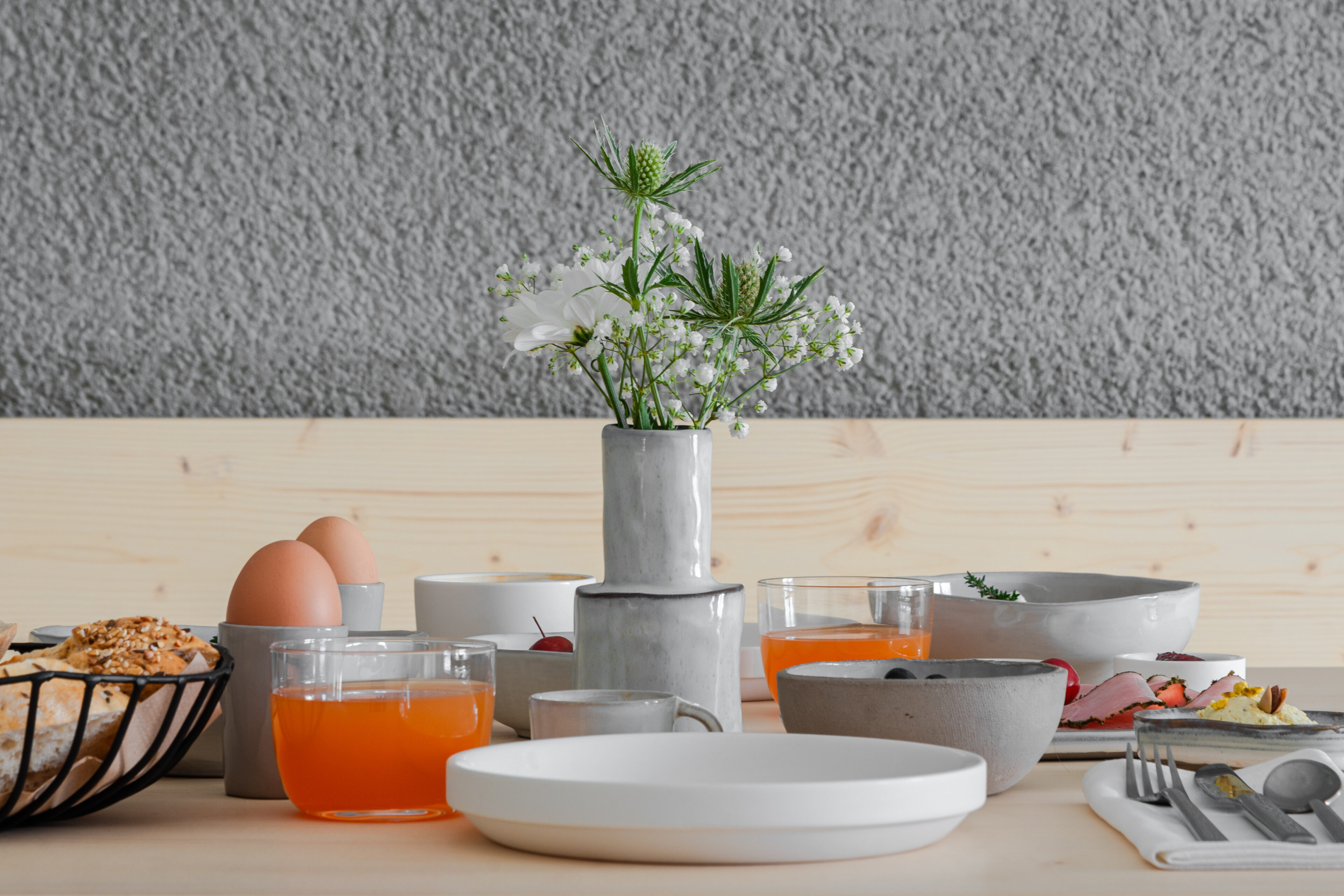 Altes mit neuem Leben füllen. Das war die Idee von Julia und Michael Staudinger, als sie den Hof am Rand von Illerbeuren im Unterallgäu, in dem Oma Anna zu Lebzeiten mit viel Herzblut schaltete und waltete, in einen Rückzugsort für ihre Gäste verwandelten. Heute beherbergen die historischen Mauern moderne Unterkünfte in zeitlosem Design: ein Ferienhaus sowie fünf Apartments im Stil eines Aparthotels. Bei der Neugestaltung wurde die typische Baukultur von Bauernhaus, Stall und Heuboden bewahrt, die Innenräume erhielten ein minimalistisches Design im skandinavischen Stil. Designklassiker, schlichte Einbauten aus hellem Fichtenholz und eine Farbpalette aus Weiß- und Grautönen plus einige spannende Farbakzente bestimmen das reduzierte, coole Ambiente. Ein echter Lieblingsplatz für alle Erholungsuchenden, die sich für Architektur und Interior begeistern. Um ein Wochenende allein oder zu zweit in herrlicher Natur zu verbringen, mit Familie und Freunden zusammen zu kommen, sich Zeit zum Innehalten und für ausgedehnte Yoga-Sessions zu nehmen – oder, um gemeinsam kreativ zu sein. In der zweigeschossigen Tenne ist ein lichtdurchfluteter, loftartiger Raum entstanden, in dem sich im Rahmen von Workations oder Company Retreats wunderbar an neuen Projekten, Ideen und Herausforderungen arbeiten lässt. Falls mal eine Schaffenspause gefragt ist, geht es an den Tischkicker, zum Boule-Spielen oder in die finnische Sauna im Garten, um im Anschluss am Feuer-Cube im Freien auszudampfen. Ganz unabhängig davon, in welcher Konstellation man herkommt, beim Frühstück im „Kammer Kafé“, der ehemaligen Milchküche, treffen sich alle: Ganz in der Slow Food-Tradition werden hier selbstgemachte Marmeladen aufgetischt, Bircher Müsli aus Eigenproduktion und individuelle Kreationen wie der Ei-Muffin mit Allgäuer Bergschinken – so köstlich, dass man schon abends vom nächsten Morgen träumt.
