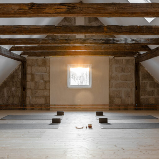 • im wunderschönen Speicher werden Atemkurse, QiGong, Gesundheits-Workshops und Yoga-Retreats angeboten – unter alten Balken mit Licht von oben und Blick in den Garten. Im Sommer kommt man auf der großen Sonnenterrasse besonders gut in den Flow