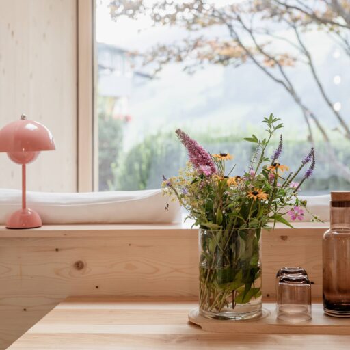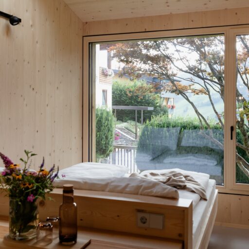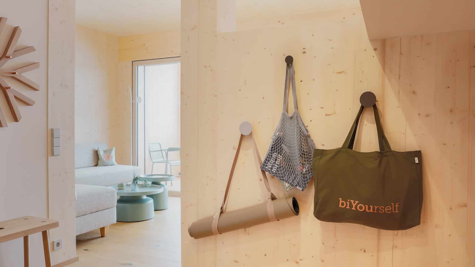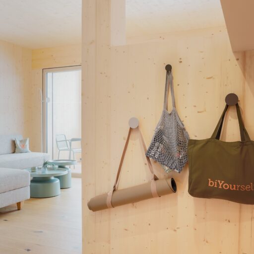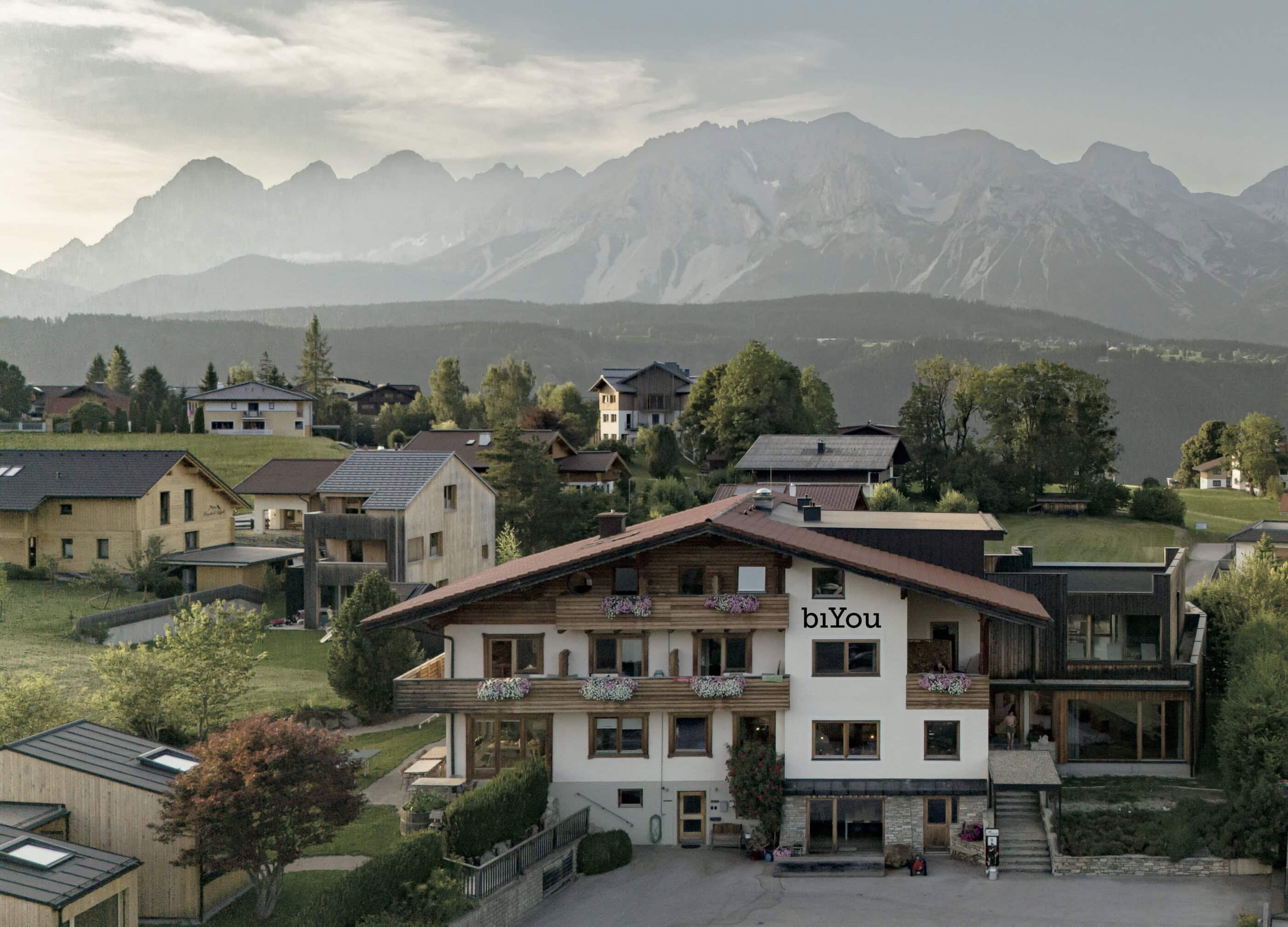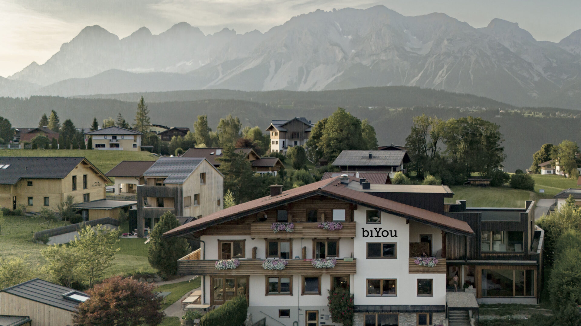 „Genieße Bio. Erlebe Yoga. Sei du selbst.“ So setzt sich der Name des Ecoquartiers biYou in Schladming-Rohrmoos in der Steiermark zusammen. Ein Ort, um Geist und Körper ganz viel Gutes zu tun, und zwar in schönster Alpenkulisse auf knapp 1000 Höhenmetern. Dafür haben Gastgeberin Karin Seebacher, Yogalehrerin und Kräuterpädagogin, und ihr Mann Franz, Architekt und Imker, das einstige Familiendomizil mit viel Herzblut zu einem Biohotel mit Fokus auf Yoga und Nachhaltigkeit weiterentwickelt. Schon wenn man das in traditioneller Bauweise errichtete Haus mit seinen bunt bepflanzten Blumenkästen und dem modernen Schriftzug betrachtet, wird klar, dass hier die Liebe zur Region tief verwurzelt ist, aber auch ein frischer Wind weht. Was sich am cleanen Design der fünfzehn Zimmer und Studios sowie den drei Cabins im Garten zeigt: alle sind mit klaren Formen und viel hellem Holz gestaltet, große Glasfronten bieten Ausblicke in die Natur. Gedeckte Naturtöne werden durch lebendige Akzente wie einem Lounge-Sessel in Rot und Türkis oder pastelligen Couch-Tischen durchbrochen. Von hier aus startet man nach erholsamem Schlaf in einen Tag voller Naturabenteuer. Grundlage dafür bietet das Frühstück im „Bistro Bergkristall“, bestehend aus frischen, regionalen, und ayurvedisch inspirierten Speisen. Wem der Sinn nach aktiver Entspannung steht, findet sich bald auf der Yoga-Plattform mit Rundumblick auf die Schladminger Tauern und frischer Bergluft wieder, um sich genüsslich zu dehnen und zu stretchen. Je nach Jahreszeit und Geschmack geht es auf die Piste oder zum Eisbaden, zum Mountainbiken, Wandern und Waldbaden, oder man erfrischt sich im Badesee oder unterm Wasserfall. Durchatmen, entschleunigen, Batterien aufladen. In diesem Rückzugsort ist der nachhaltige Gedanke überall spürbar – und so darf auch der Erholungsfaktor möglichst lange nachwirken.