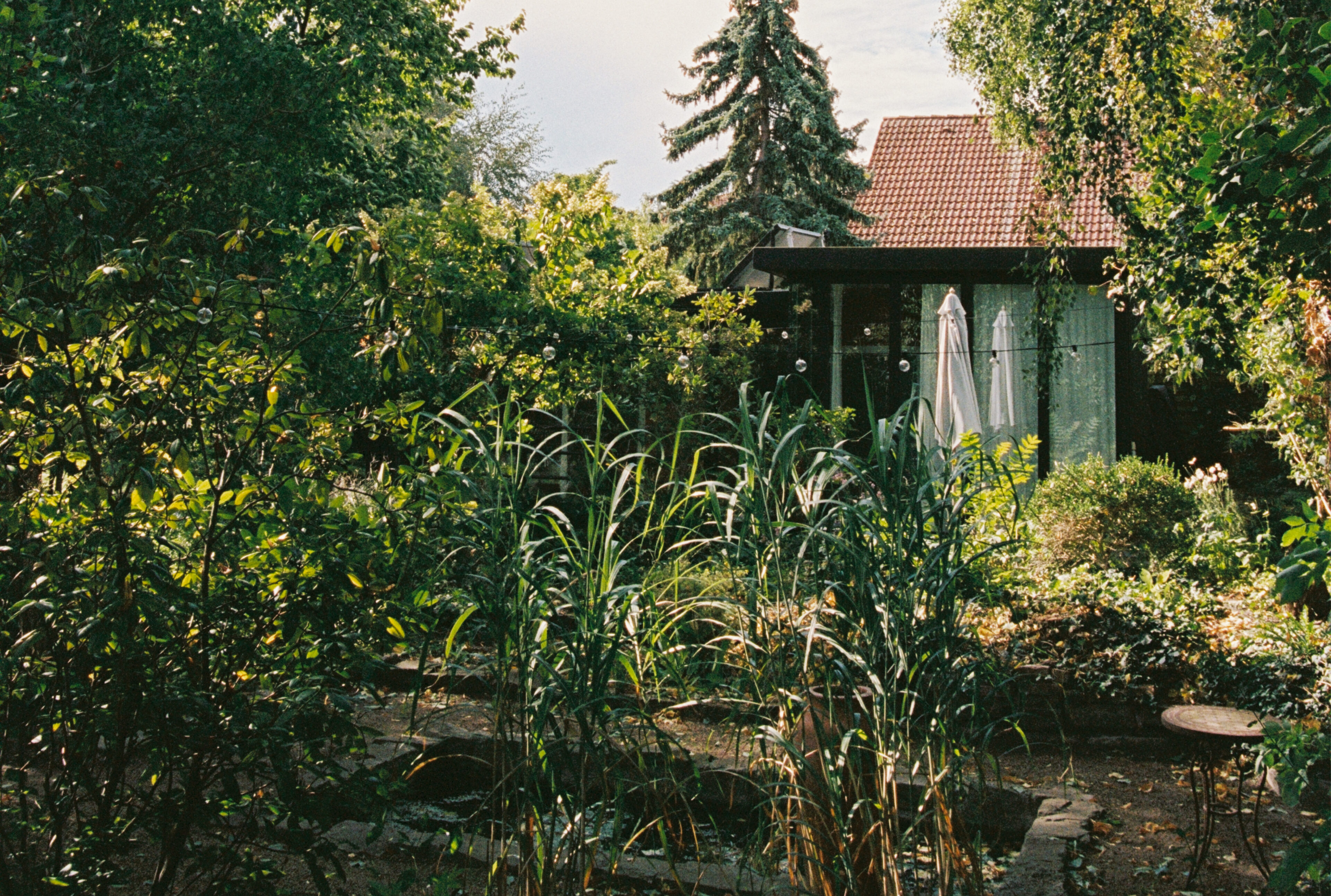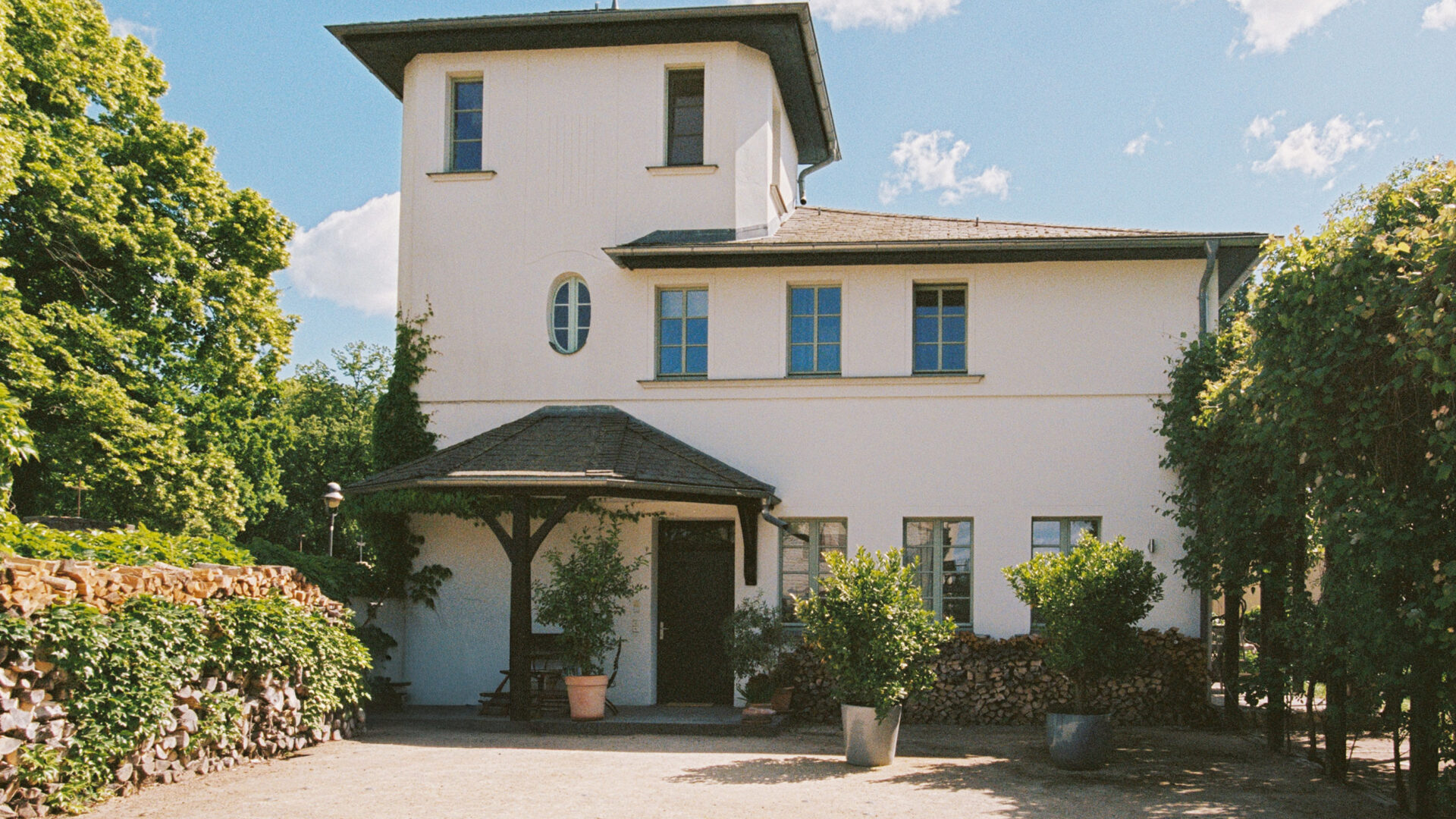 - die architektonische Vielfalt der Gebäude: Das Bauhaus mit seinen klaren Linien, das Gartenhaus, eine ehemalige Garage mit Wintergarten-Anbau, inspiriert vom Schindler House in Kalifornien, die Turmvilla aus den Zwanzigerjahren sowie die Remise: ein Landhaus mit gemauerter Giebelfassade