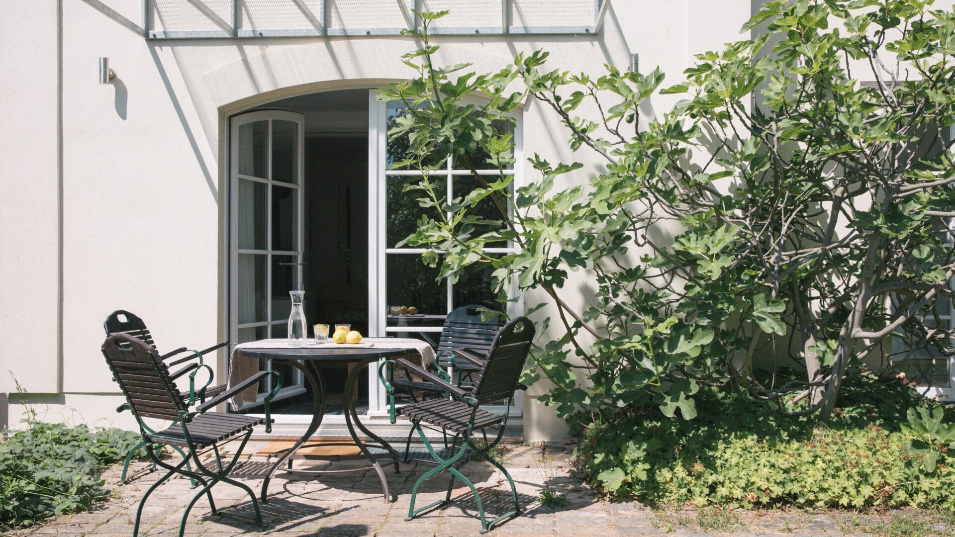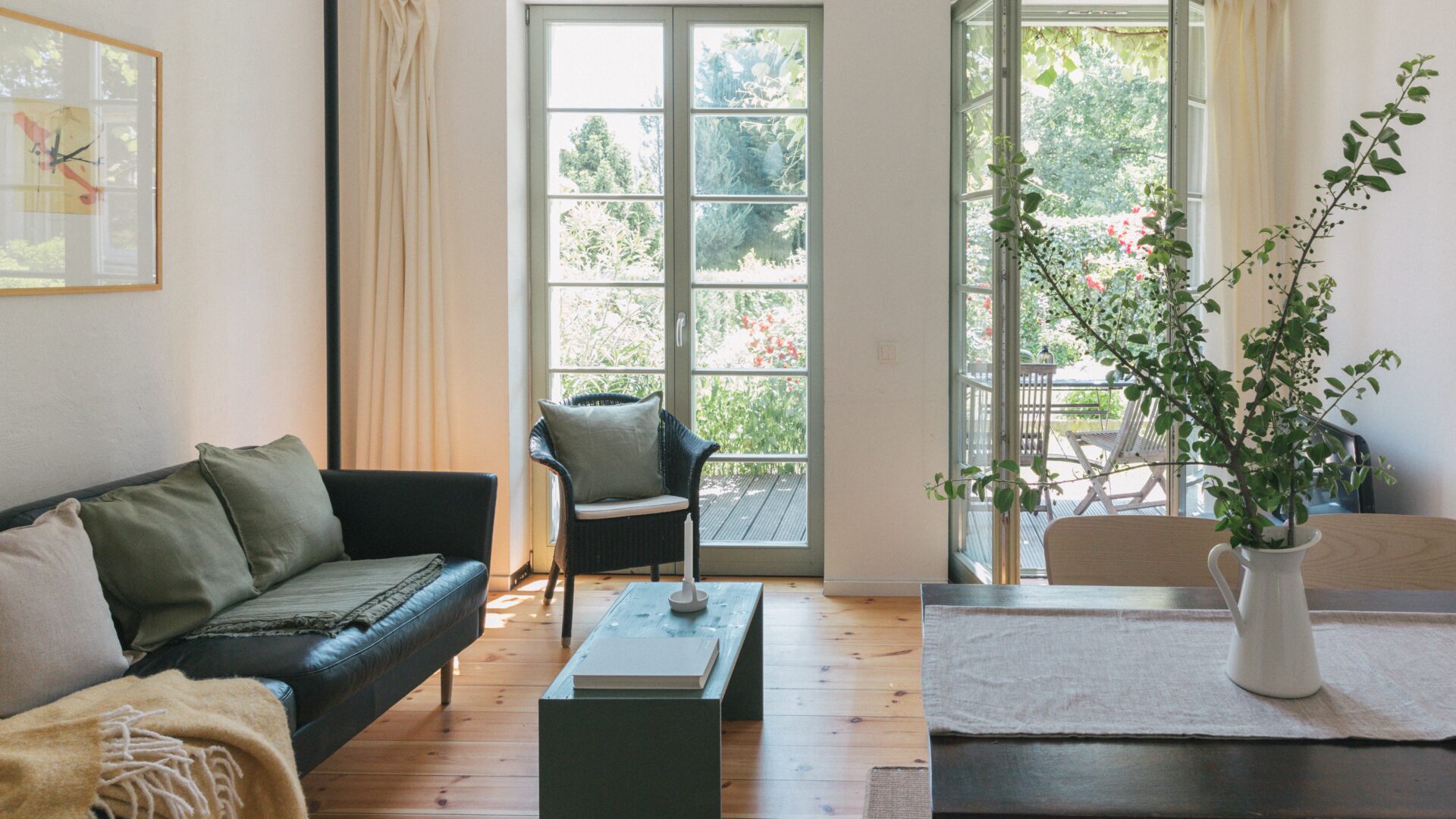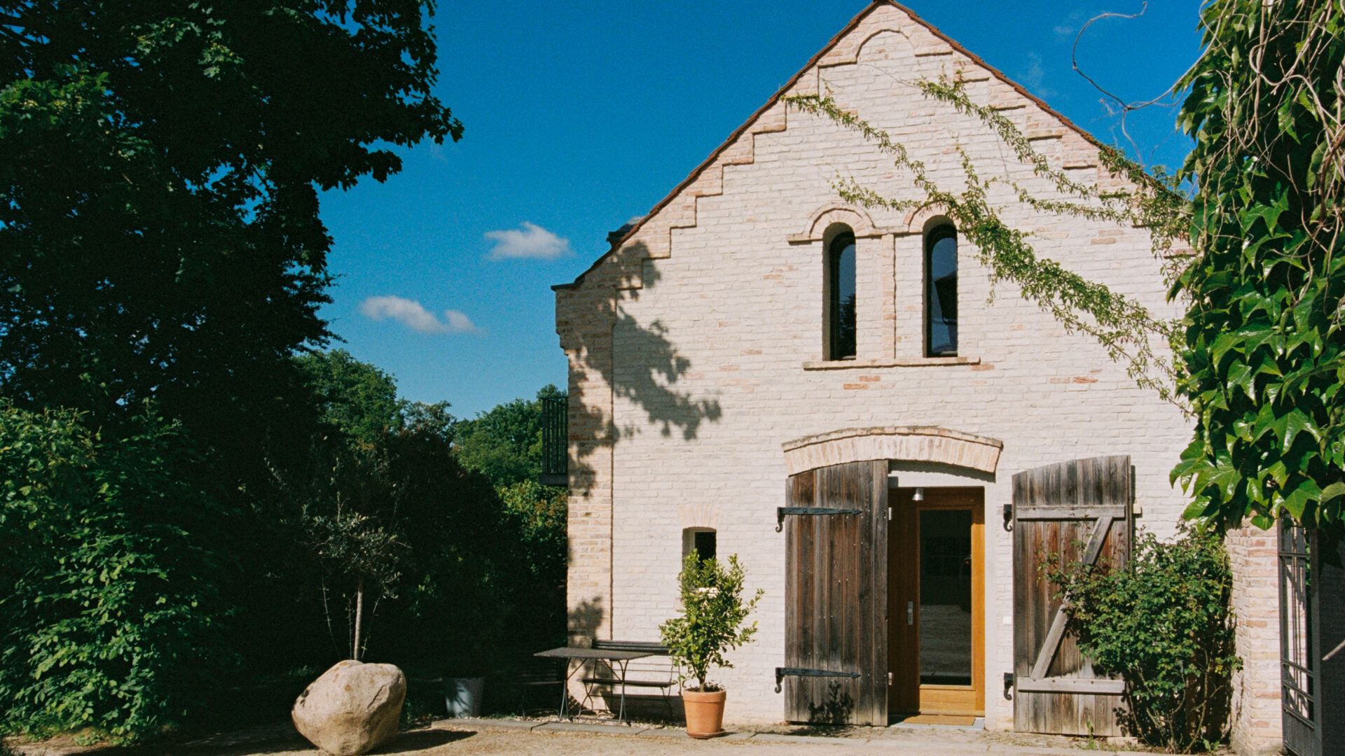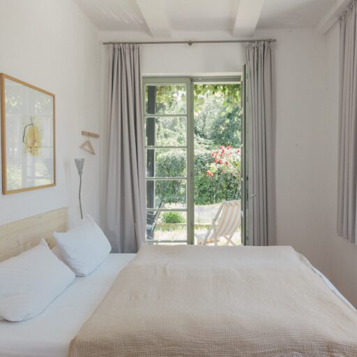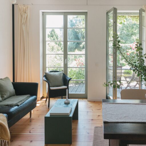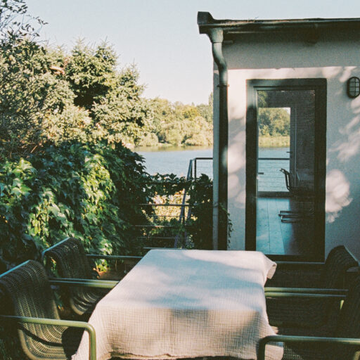 Schilfbewachsene Ufer und alte Obstbaumalleen umgeben die historische Altstadtinsel Werder im brandenburgischen Havelland. Fischerhäuser, Boote, die auf dem Wasser vorbeischippern, verwinkelte Gassen und Kopfsteinpflaster prägen das Bild: Inselidylle mit einer Portion mediterranem Flair. Wer aus Hamburg oder Berlin anreist, dem wird es besonders auffallen: Hier geht alles viel gemächlicher zu – und unaufgeregter. Inmitten der Natur lässt sich wunderbar Ruhe und Erholung finden. Das Architektenpaar Jurek Brüggen und Aimée Michelfelder hat hier an zwei verschiedenen Standorten acht Ferienwohnungen geschaffen. Am Mühlenberg befindet sich ein Ensemble historischer Gebäude, verbunden durch üppig bewachsene Gärten, mit wilden Eichen und einem Weinberg mit 800 Rebstöcken. In der Remise, einer ehemaligen Invalidenkaserne aus dem 18. Jahrhundert, sind drei individuelle Wohnungen untergebracht. Die denkmalgeschützte Turmvilla im Art-Déco-Stil beherbergt ebenfalls drei Apartments. Am gegenüberliegenden Festland, am Ende des Scheunhornwegs, liegt der zweite Standort, etwas versteckt direkt an der Havel. Eine Unterkunft befindet sich in einem Atelierhaus, 1932 von Bauhaus-Architekt Peter Bartning entworfen – dazu zählt eine Dachterrasse mit Dachgarten und frischen Kräutern –, eine zweite in einem modernisierten Bungalow mit Wintergarten. Beide sind eingebettet in einen verwunschenen, gemeinschaftlich genutzten Garten mit altem Baumbestand, Seerosen-Teich und Badesteg. Hier sitzt man im Grünen, hört dem Wasser beim Plätschern zu – oder springt direkt hinein. Und das ist überhaupt die schönste Gemeinsamkeit all dieser außergewöhnlichen Quartiere: dass sie so wunderbar nah am Wasser gebaut sind.