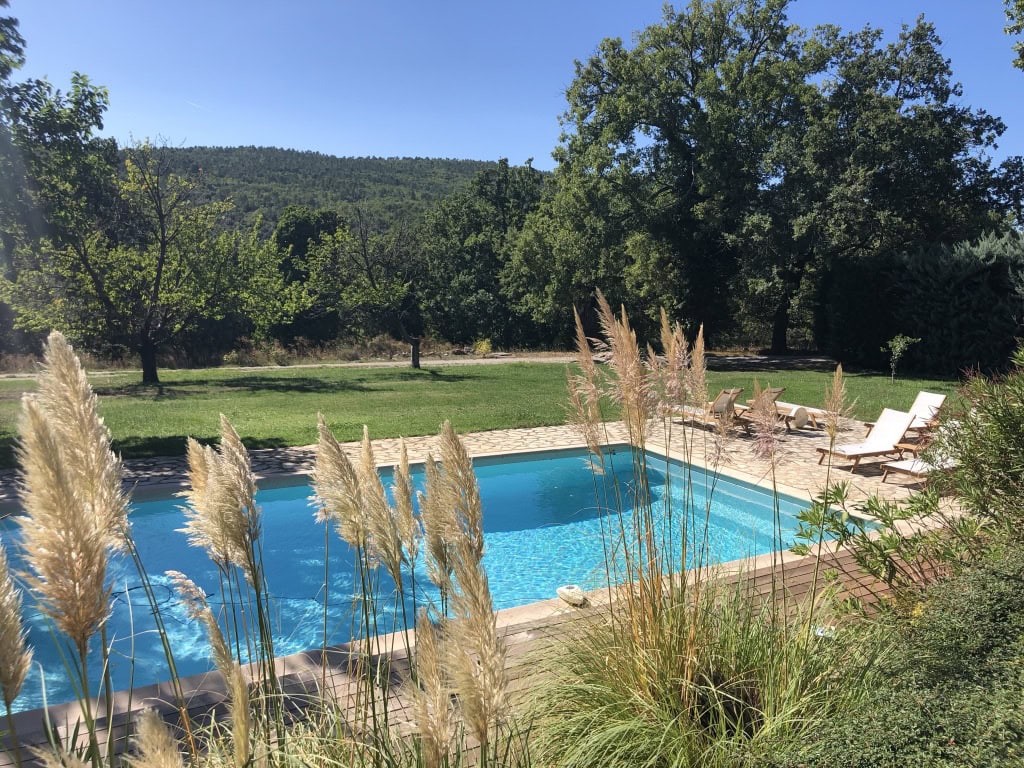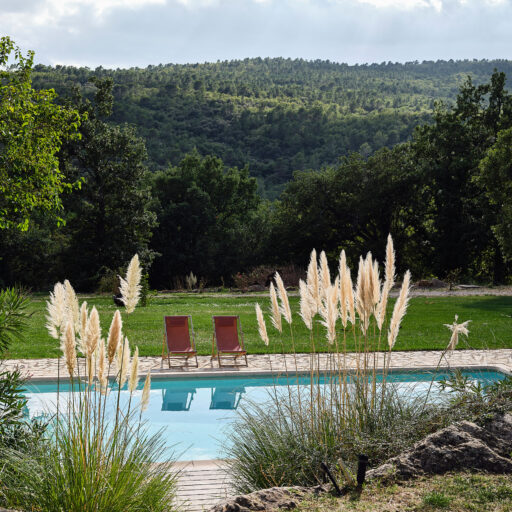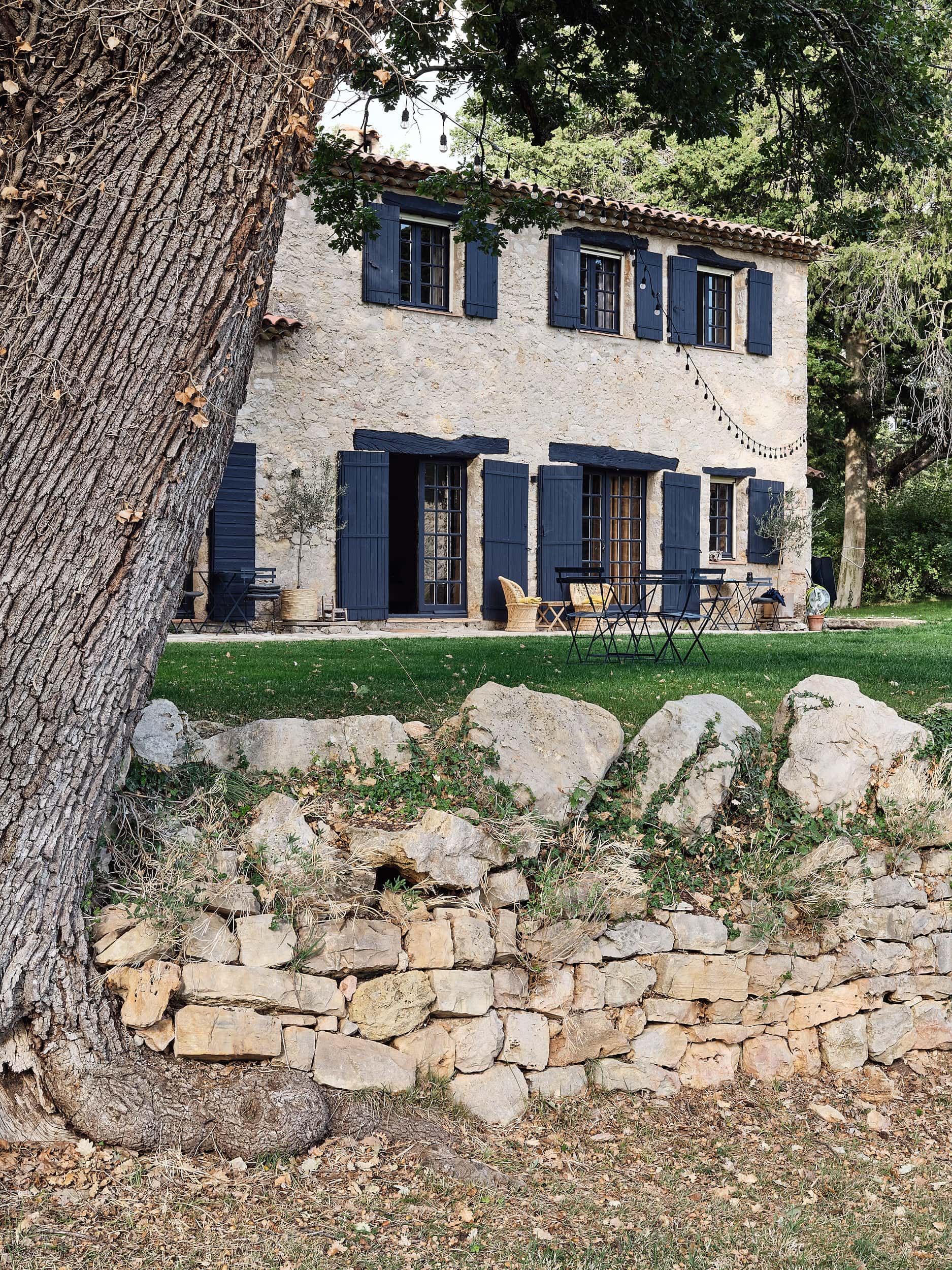 - die beiden alten Steinhäuser mit nachtblauen Fensterläden und Fenstersprossen, die gemeinsam mit dem weitläufigen Garten und dem klassizistischen Pool mit Oleanderbüschen an ein Anwesen des Landadels erinnern