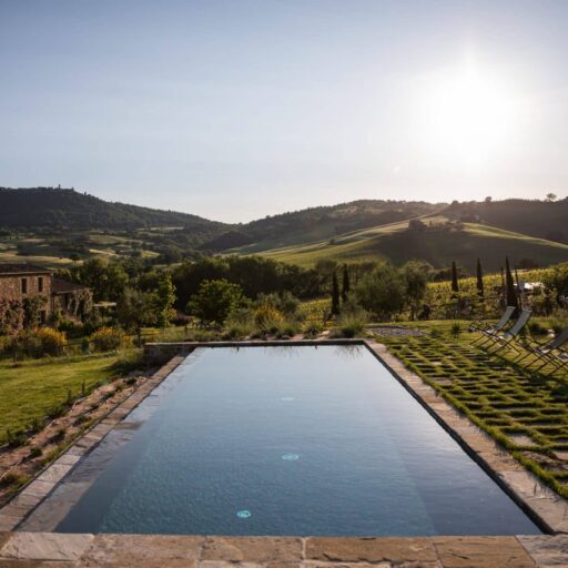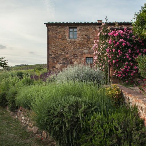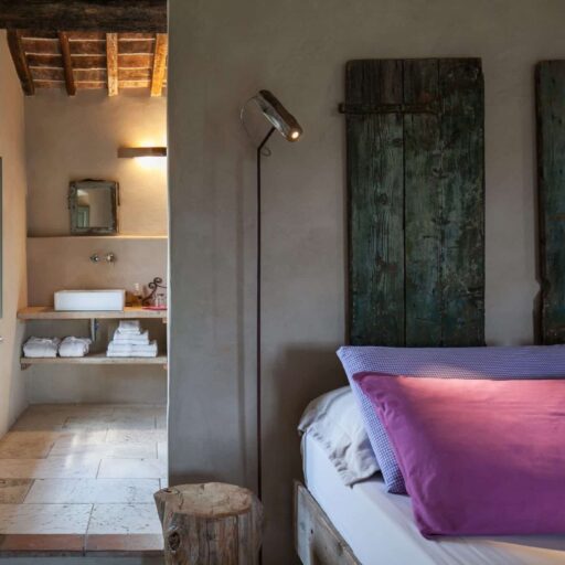 Manche Orte sind wie dafür geschaffen, die Zeit einfach mal in Ruhe zu lassen und weniger zu tun – oder besser – einfach gar nichts zu tun. Sie nehmen einen an die Hand und lassen sanft los, wenn man bereit ist, selbst loszulassen. Follonico ist so ein Ort. Ziemlich schnell erreicht man hier einen wunderbar leichten Gefühlszustand. Was wahrscheinlich auch an den Besitzern Suzanne und Fabio liegt, die das langsame Leben vorleben. Vor gut neun Jahren haben sie das alte Bauernhaus renoviert und zu ihrem Zuhause gemacht. Mit Respekt vor der Geschichte, die in dem Natursteinmauerwerk aus dem 18. Jahrhundert steckt und vor der Umgebung drumherum. Und dieses Drumherum ist mehr als das typische Bild der Toskana mit den sanften Hügeln, den Olivenhainen und den Weinbergen. Es sind auch die Tiere, die auf dem Hof leben sowie die Pflanzen, mit ihren mediterranen Farben und Düften. Die Natur hat hier ihren festen Platz und Raum sich zu entfalten. Alles ist in Balance, Rustikales wechselt sich mit Zartem ab. Auf rötliches Mauerwerk folgt ruhiges Salbeigrün. Das Zusammenspiel natürlicher Elemente findet sich auch in den 6 Zimmern wieder: natürliche Kalkfarbe an den Wänden, Bettbezug aus Leinen, glattes, schwarzes Leder der modernen Couch, antike Holztüren als Wanddeko, weiße Keramikwaschschalen im Bad. Die Einrichtung ist eine Mischung aus Vintage-Design und zeitgenössischen Elementen. Schlicht, natürlich und modern zugleich. So schafft die Inneneinrichtung Klarheit. Das rustikale Bauernhaus selbst sorgt für Geborgenheit. Und der Garten, die Natur, die Weite der Landschaft – liegen einem vor den Füßen und laden dazu ein, sich in den Tag gleiten zu lassen. Nichts leichter als das.