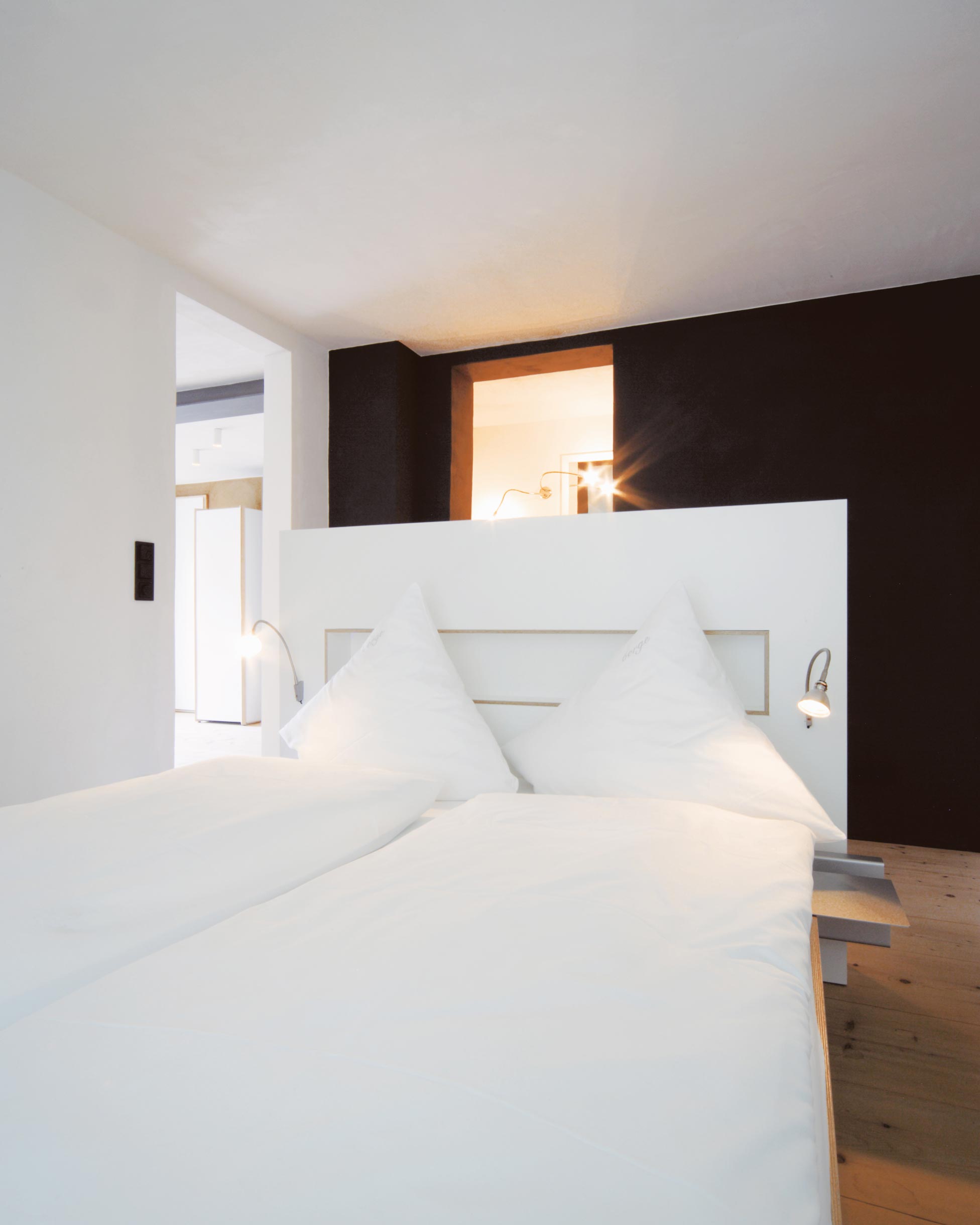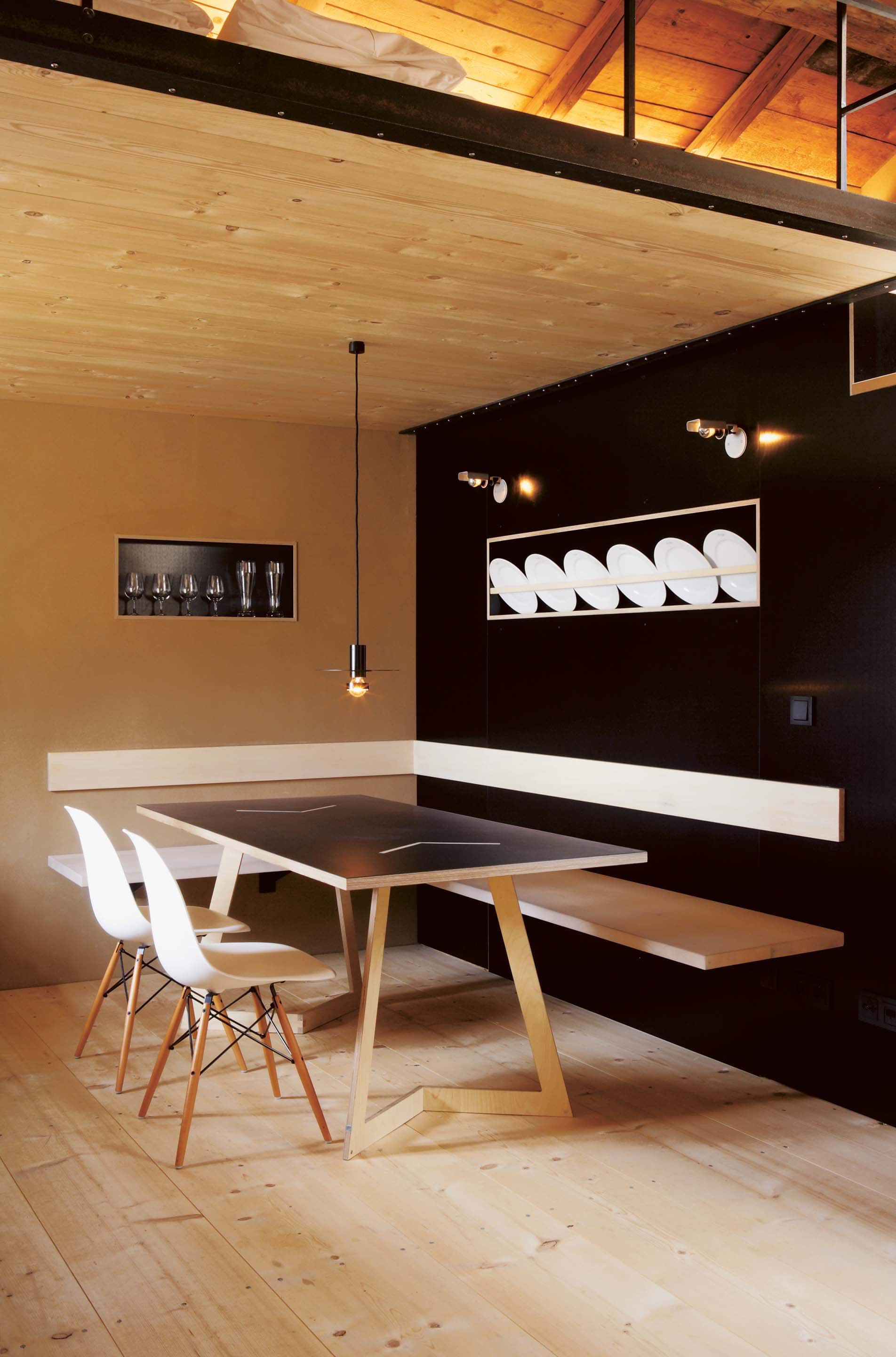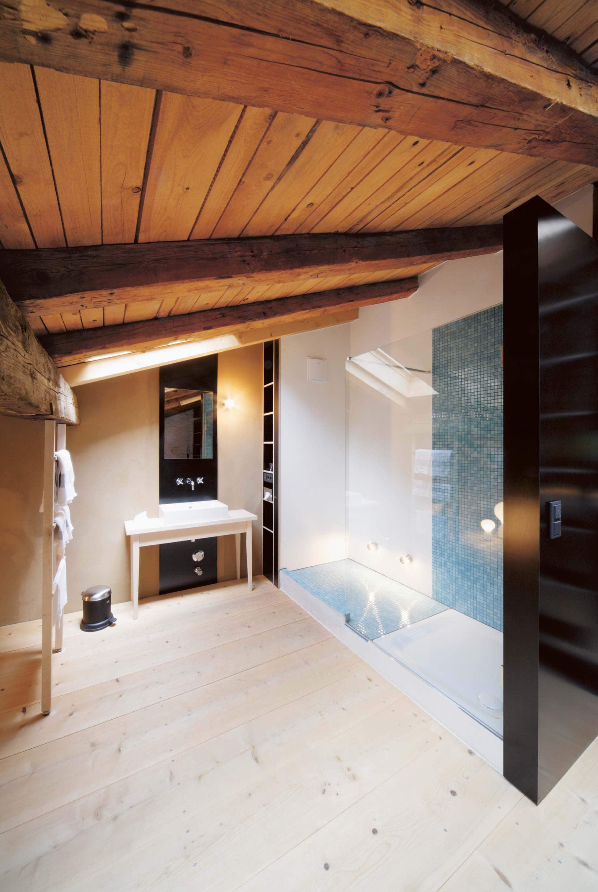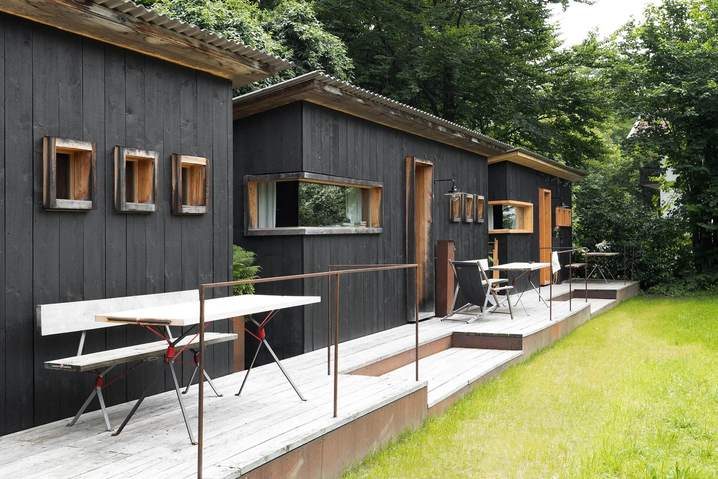 „Alles weglassen, was unnötig ist“ – so lautet die Philosophie des Gästehauses berge in Aschau im Chiemgau. Ursprünglich wurde es von dem Designer und Möbelunternehmer Nils Holger Moormann entwickelt, der für sein unkonventionelles, intelligentes und hochwertiges Möbeldesign bekannt ist. 2005 entdeckte er das rund 350 Jahre alte Gebäude und verwandelte es in eine außergewöhnliche Herberge. Seit 2025 wird das Haus von Nicole Martinsohn mit derselben Liebe zum Detail weitergeführt. 17 verschiedene Unterkünfte zählt das Quartier in Oberbayern, sie heißen Bergbude oder Zaungast und reichen vom Tiny House im Bauerngarten bis zur Galeriewohnung unterm Dach. Alle sind individuell gestaltet, sprechen aber die gleiche Formensprache – und am liebsten würde man in jedem einzelnen (mindestens!) eine Nacht verbringen. Die historische Substanz wurde in dem alten Bauernhaus erhalten und in einen spannenden Kontrast zu reduziertem Design gesetzt. So treffen knarzende Dielenböden und freiliegende Deckenbalken auf Stahl, offengelegte Steinwände auf Glasflächen. Wo alte Strukturen vorhanden waren, werden diese auch gezeigt: ungestrichene Lehmputzwände, Böden aus unbehandelter Hochgebirgsfichte und im Entrée ein Deckengewölbe, das erst beim Umbau des Hauses wieder freigelegt wurde. Die Einbauten bestehen größtenteils aus schwarzem Furniersperrholz, sind funktional und geradlinig. Neben Stücken aus der Moormann-Kollektion finden sich Klassiker wie der Plastic Side Chair von Charles und Ray Eames oder Maßanfertigungen wie die Bettnischen, in denen man so gemütlich schlummert wie in einem Nest. Und weil das alles so sensationell gut zusammen passt, gab es dafür bereits zahlreiche Designpreise. Absolut preisverdächtig ist übrigens auch der Blick auf die Kampenwand, den Aschauer Hausberg, der beim Aufwachen genauso glücklich macht wie am Abend, wenn man bei einem Glas Wein beobachtet, wie die Sonne hinter den Bergen verschwindet. Dafür, dass der größte Luxus in der Einfachheit der Dinge liegt, ist diese Unterkunft der allerschönste Beweis.