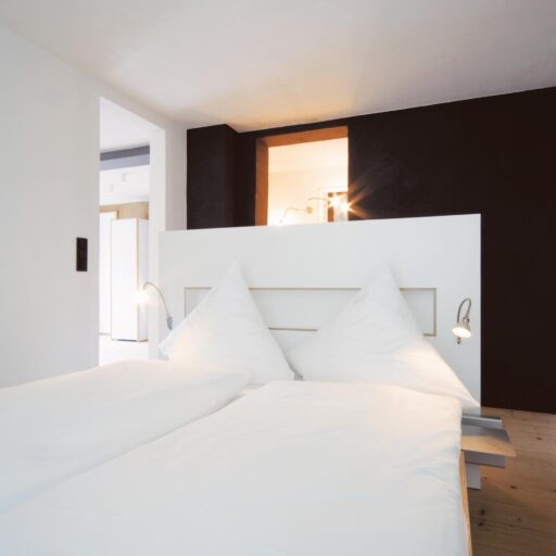 • hier wird besonderer Wert auf hochwertige Naturmaterialien gelegt: die Bettwäsche aus Zwirnhalbleinen stammt aus einer Manufaktur von der Schwäbischen Alb, in jedem Quartier finden sich kuschelige Decken aus Alpaka- und Merinowolle