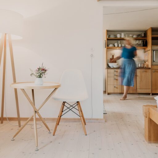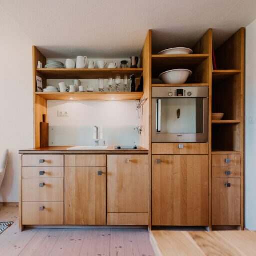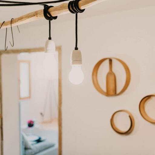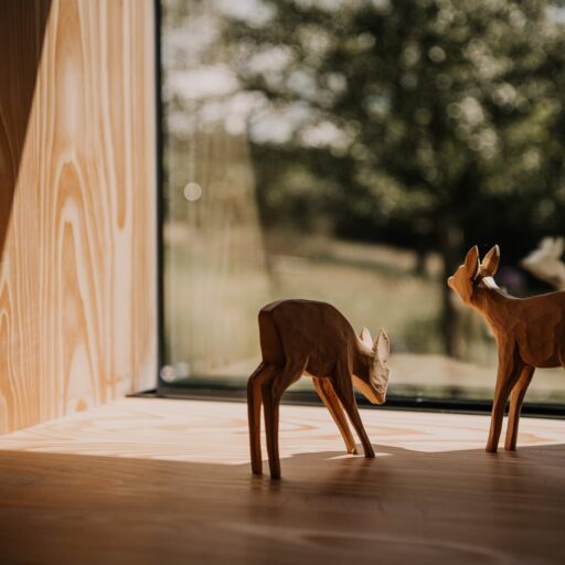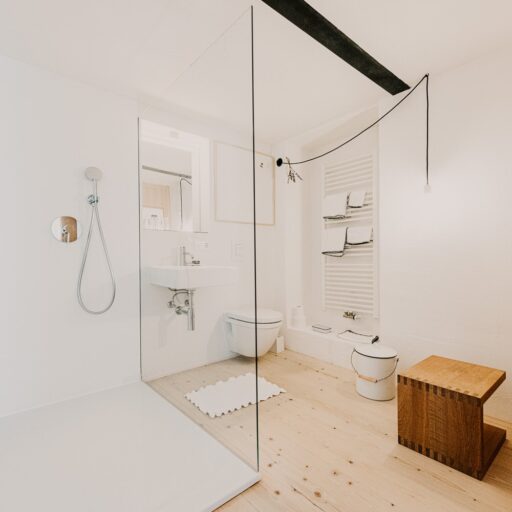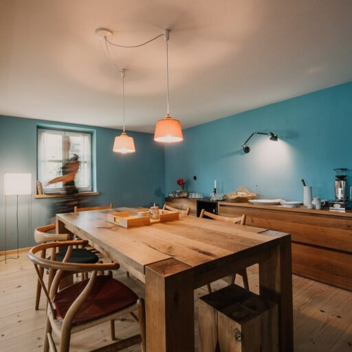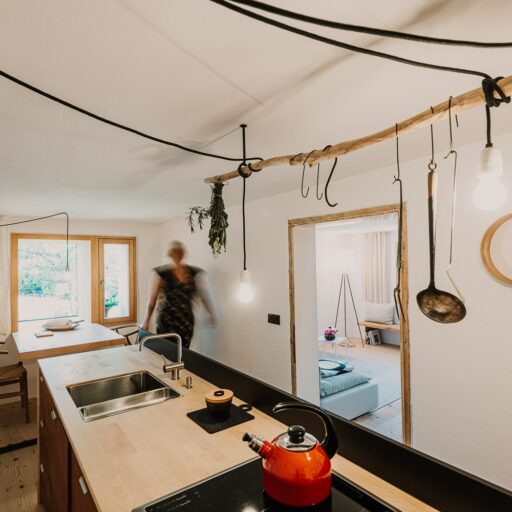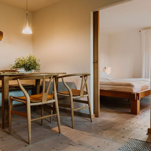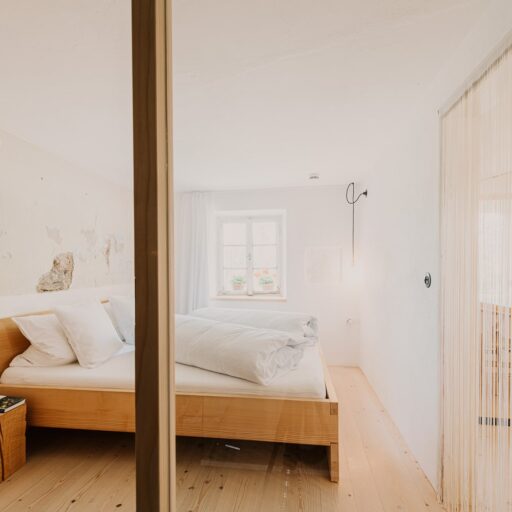 - die drei Unterkünfte das „Nest“, die Wohnung „Hermann Lenz“* und die „Alte Liebe“, erzählen jede ihre eigene Geschichte, sie sind mit heimischen Hölzern ausgebaut, viele hochwertige und zum Teil immer wieder neue Designmöbel stehen in den Zimmern, einiges davon kann im angeschlossenen Laden erworben werden