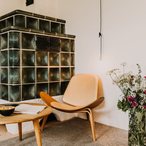 - Details wie der Kachelofen, eine alte Truhe oder der Blick auf frei gelegtes Gemäuer geben wohl dosierte Einblicke in die 300 Jahre alte Geschichte des Hauses