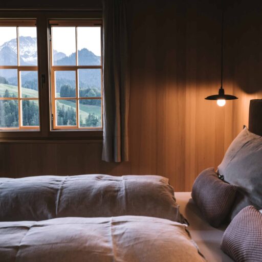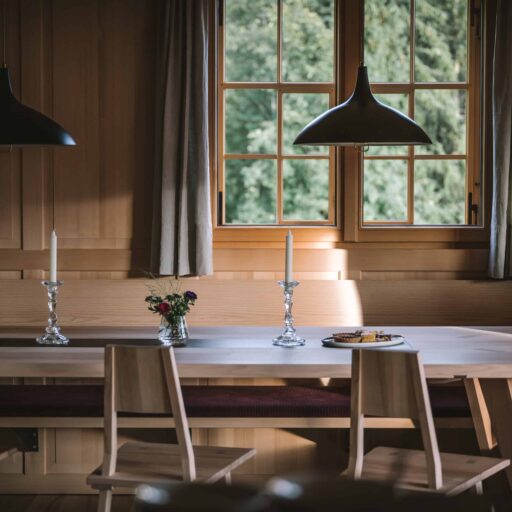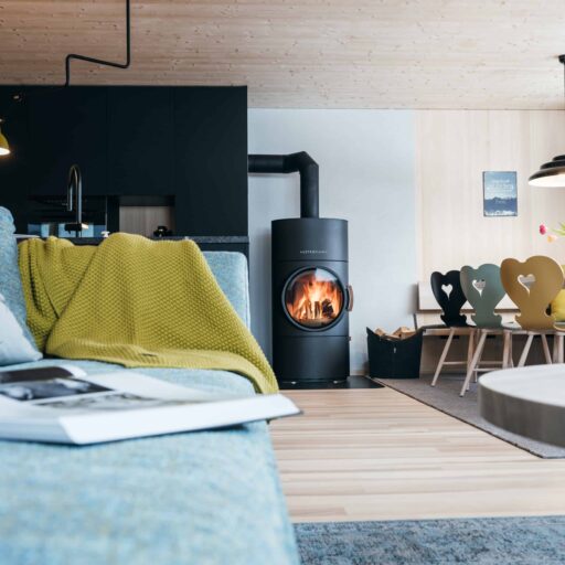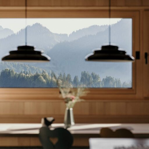 Wie lässt sich in einem Neubau die urige Atmosphäre eines traditionellen Bauernhauses einfangen? Architekt Jürgen Haller hat diese Herausforderung angenommen. An der Stelle des HALWINA Hideaways stand früher das Haus der Großeltern von Bauherrin Edith. Die bauliche Substanz des historischen Hauses in der kleinen Gemeinde Sibratsgfäll im Bregenzerwald hätte einer Sanierung nicht standgehalten. Deshalb entschieden Edith und ihr Mann Peter schweren Herzens, den Altbau abzureißen und durch einen dreistöckigen Neubau zu ersetzen – allerdings nicht ohne jede Menge Erinnerungen in die Planung einfließen lassen. Das beginnt schon beim Namen: HALWINA setzt sich zusammen aus Hanna und Alwin. So hießen Ediths Großeltern, und nach ihnen sind auch die beiden Ferienwohnungen benannt. Von außen fügt sich das Haus mit seinen hölzernen Schindeln in die traditionelle Bebauung des Bregenzerwaldes ein. Panoramafenster in unterschiedlichen Größen setzen moderne Akzente und den Wald in Szene. Sie bieten den Gästen einen weiten Blick über die bergige Umgebung. Gastgeberin Edith gestaltete das Interior mit einem ebenso feinen Händchen für das Besondere: So erhielten z.B. holzverkleidete Decken und Wände, die ebenfalls an die ursprüngliche Bauweise erinnern, einen modernen Twist, indem mal glatte Oberflächen, mal Lamellen- oder Kassettendecken gewählt wurden. Ein schöner Kontrast zu der natürlichen Farbpalette in den Wohnräumen, sind die farbigen Tapeten in den Schlafzimmern. In den Bädern setzt sich der Mix aus Tradition und Moderne weiter fort: Antiquitäten wurden zu Waschtischen umgearbeitet, hübsch gemusterte Fliesen und schwarze Armaturen geben einen zeitgenössischen Look. Treffpunkt für die Gäste sind die gemütlichen Küchen der Ferienwohnungen mit freistehender Kochinsel und großzügiger Essecke. Beim prasselnden Kaminfeuer könnte der Blick ins Tal nicht stimmungsvoller sein. Hier hätten sich bestimmt auch Hanna und Alwin wohlgefühlt.