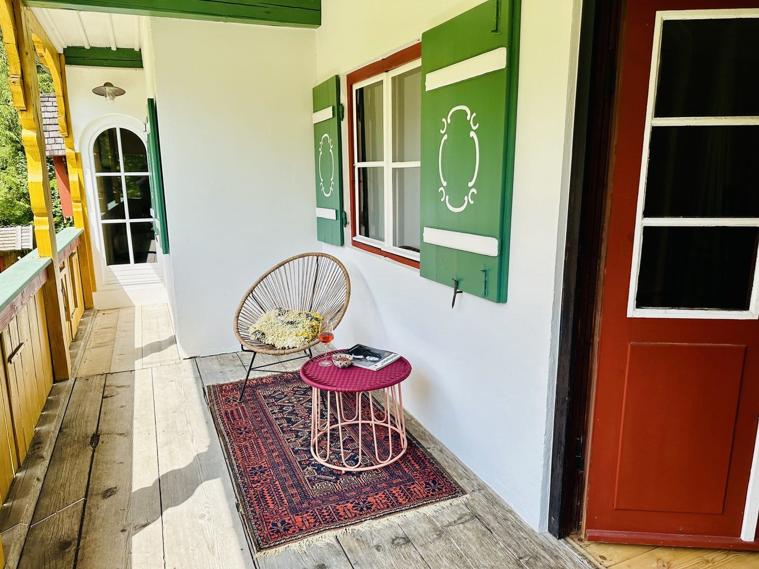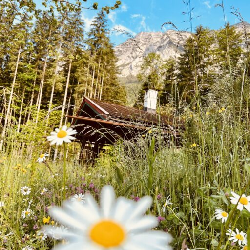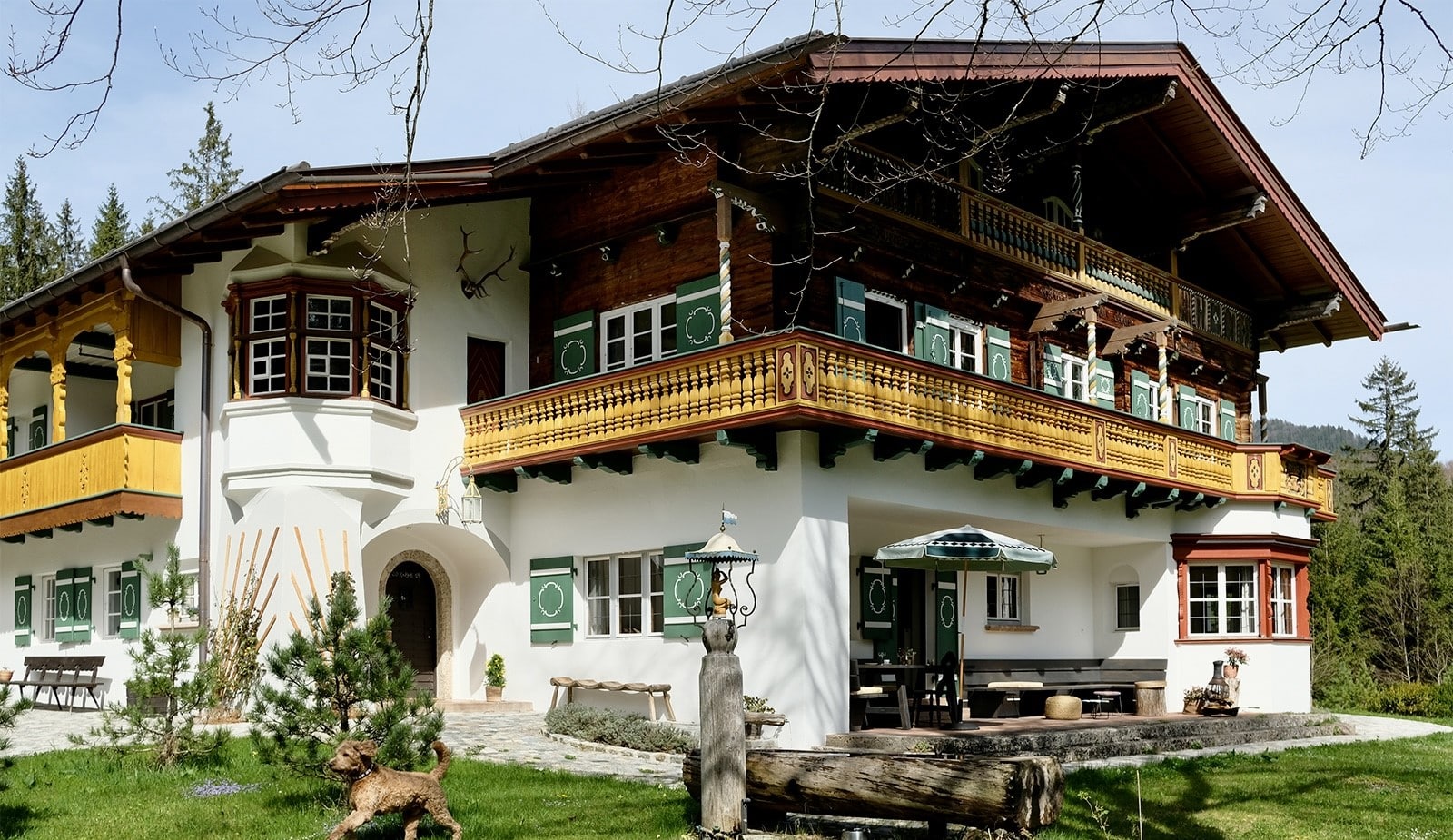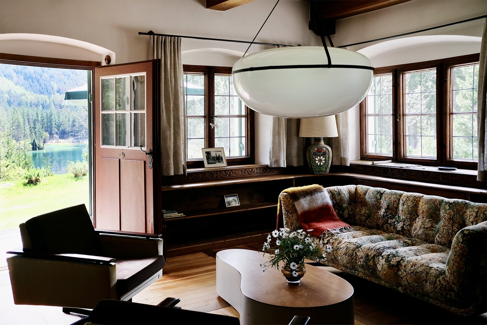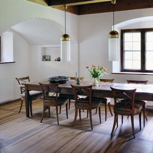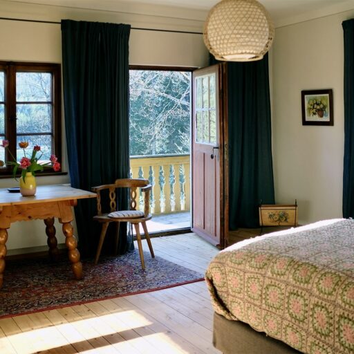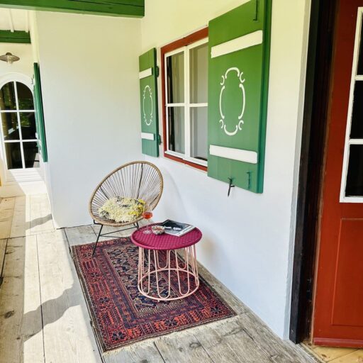 Wer nicht an die Liebe auf den ersten Blick glaubt, der sollte sich mal mit Petra Glinski und Karl Ulrich unterhalten. Als die Medienleute auf der Suche nach einem Haus auf dem Land, nach Veränderung und nach dem „ganz anderen“ auf das zwischen 1915 und 1917 errichtete Gebäude im oberbayerischen Ramsau stießen, war es um die beiden geschehen. Zwischen blühenden Wiesen und direkt am Waldrand gelegen, war das Haus am Hintersee genau das, wovon sie geträumt hatten. Begeistert erkundeten sie das 370 Quadratmeter große, damals noch recht baufällige Haus, bestaunten Lauben und Erker, entdeckten Stilelemente aus Neobarock und Jugendstil, schauten vom Garten auf den in allen Grün- und Blautönen schillernden See – und dachten: That’s it! Zu groß, zu weit ab vom Schuss, zu kitschig, zu kaputt? Das zählte alles nicht! Zweifel waren schließlich nur dazu da, um aus dem Weg geräumt zu werden. Unter strengen Auflagen des Denkmalschutzes und in Zusammenarbeit mit dem Münchner Architekten Florian Nagler starteten sie mit der Sanierung, die fast drei Jahre dauern sollte. Seit Frühling 2024 heißt dieser besondere Ort nun Gäste willkommen, die sich für Architektur, Design und Kunst interessieren, gern Zeit in der Natur verbringen, eine Foto- und Filmlocation oder einen Ort zum Feiern suchen, für eine Auszeit, ein Coaching oder zur Neuorientierung. Die alpenländische Architektur mit modernem Design, Möbeln und Leuchten aus unterschiedlichen Epochen und klassischem Handwerk zu kombinieren – damit ist den beiden ein echtes Meisterstück gelungen. Das Quartier steckt voller spannender Ecken, die entdeckt werden wollen. Originale Holzvertäfelungen, antike Öfen, Vintage-Stücke. Und immer wieder eröffnet sich der grandiose Blick auf den imposanten Blaueisgletscher, den dichten Wald und den See. Und ist das wirklich ein Tretbootschwan, der in der Ferne über das sanfte Wasser schaukelt oder hat es uns etwa auch schon erwischt? Bei so einem Herzensprojekt nicht ganz unwahrscheinlich …