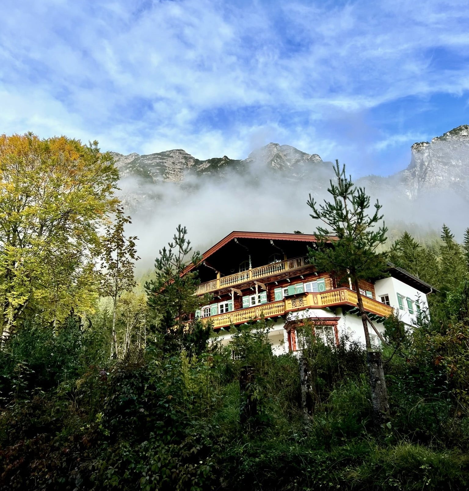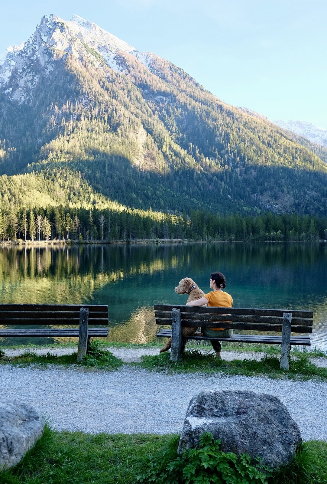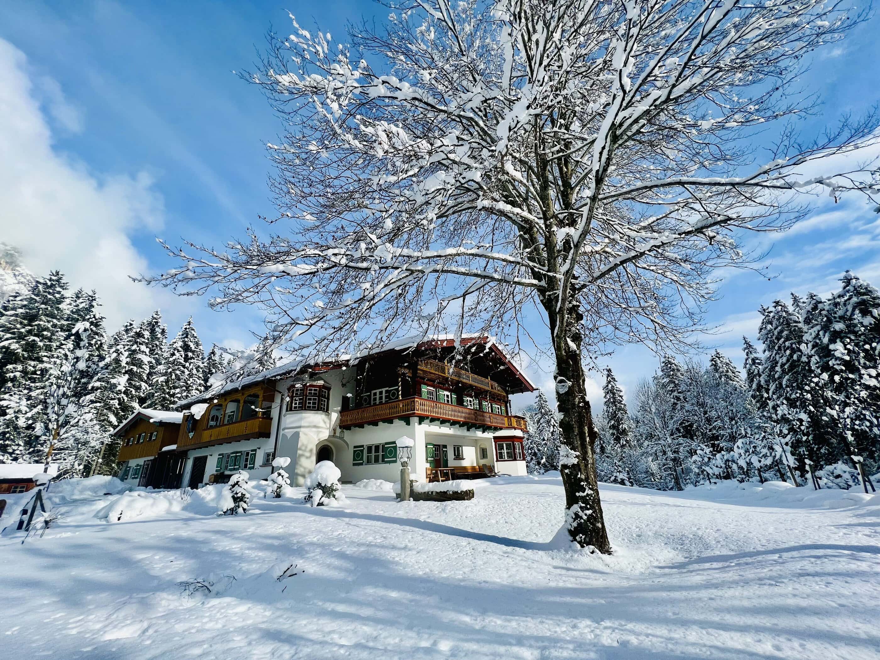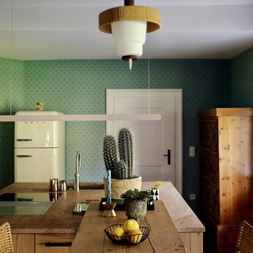 Wer nicht an die Liebe auf den ersten Blick glaubt, der sollte sich mal mit Petra Glinski und Karl Ulrich unterhalten. Als die Medienleute auf der Suche nach einem Haus auf dem Land, nach Veränderung und nach dem „ganz anderen“ auf das zwischen 1915 und 1917 errichtete Gebäude im oberbayerischen Ramsau stießen, war es um die beiden geschehen. Zwischen blühenden Wiesen und direkt am Waldrand gelegen, war das Haus am Hintersee genau das, wovon sie geträumt hatten. Begeistert erkundeten sie das 370 Quadratmeter große, damals noch recht baufällige Haus, bestaunten Lauben und Erker, entdeckten Stilelemente aus Neobarock und Jugendstil, schauten vom Garten auf den in allen Grün- und Blautönen schillernden See – und dachten: That’s it! Zu groß, zu weit ab vom Schuss, zu kitschig, zu kaputt? Das zählte alles nicht! Zweifel waren schließlich nur dazu da, um aus dem Weg geräumt zu werden. Unter strengen Auflagen des Denkmalschutzes und in Zusammenarbeit mit dem Münchner Architekten Florian Nagler starteten sie mit der Sanierung, die fast drei Jahre dauern sollte. Seit Frühling 2024 heißt dieser besondere Ort nun Gäste willkommen, die sich für Architektur, Design und Kunst interessieren, gern Zeit in der Natur verbringen, eine Foto- und Filmlocation oder einen Ort zum Feiern suchen, für eine Auszeit, ein Coaching oder zur Neuorientierung. Die alpenländische Architektur mit modernem Design, Möbeln und Leuchten aus unterschiedlichen Epochen und klassischem Handwerk zu kombinieren – damit ist den beiden ein echtes Meisterstück gelungen. Das Quartier steckt voller spannender Ecken, die entdeckt werden wollen. Originale Holzvertäfelungen, antike Öfen, Vintage-Stücke. Und immer wieder eröffnet sich der grandiose Blick auf den imposanten Blaueisgletscher, den dichten Wald und den See. Und ist das wirklich ein Tretbootschwan, der in der Ferne über das sanfte Wasser schaukelt oder hat es uns etwa auch schon erwischt? Bei so einem Herzensprojekt nicht ganz unwahrscheinlich …
