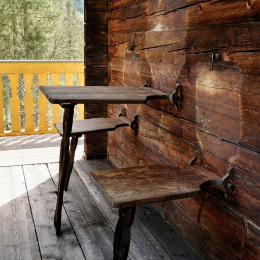 - ob von der großzügigen Outdoor-Sitzdecke, dem umlaufenden Balkon mit farbigen Drechselarbeiten oder dem Daybed am Fenster – an schönen Plätzen, um den Blick auf den See und den Blaueisgletscher zu genießen, mangelt es hier keineswegs